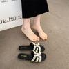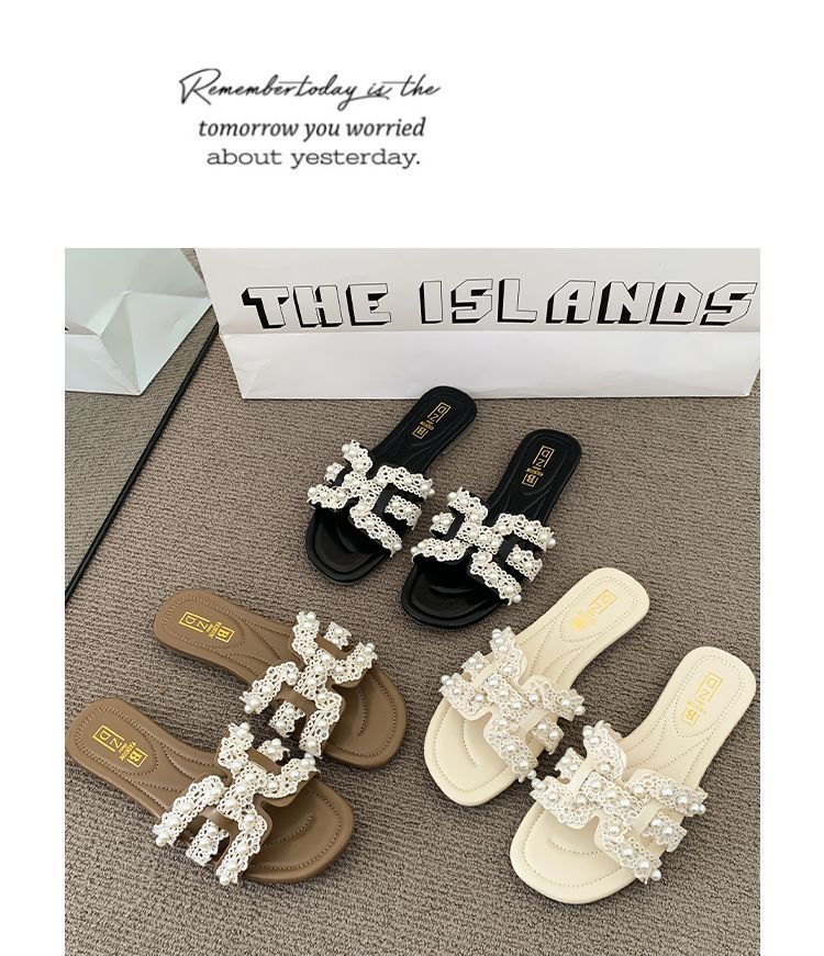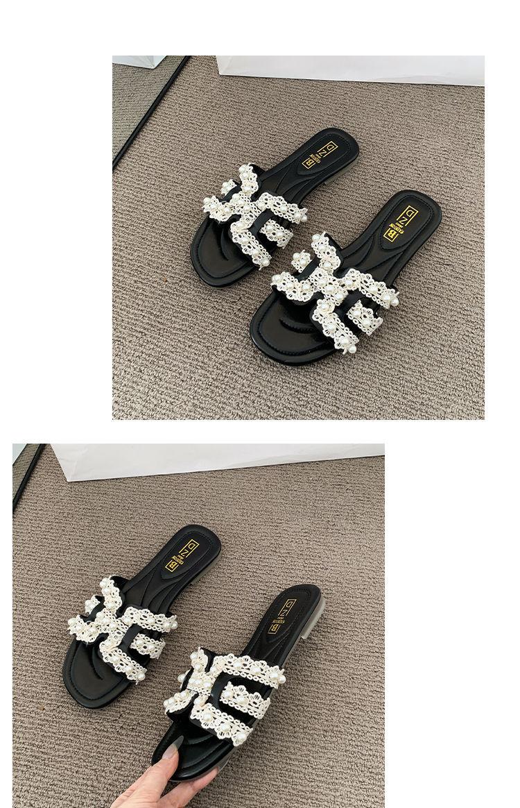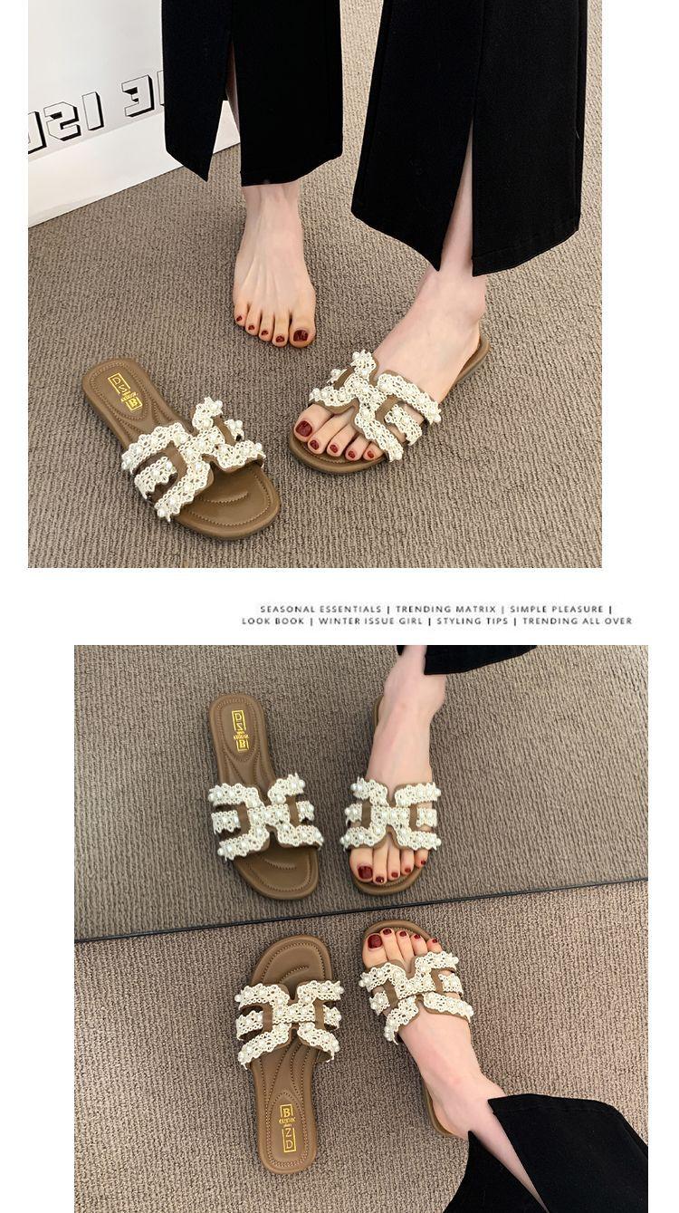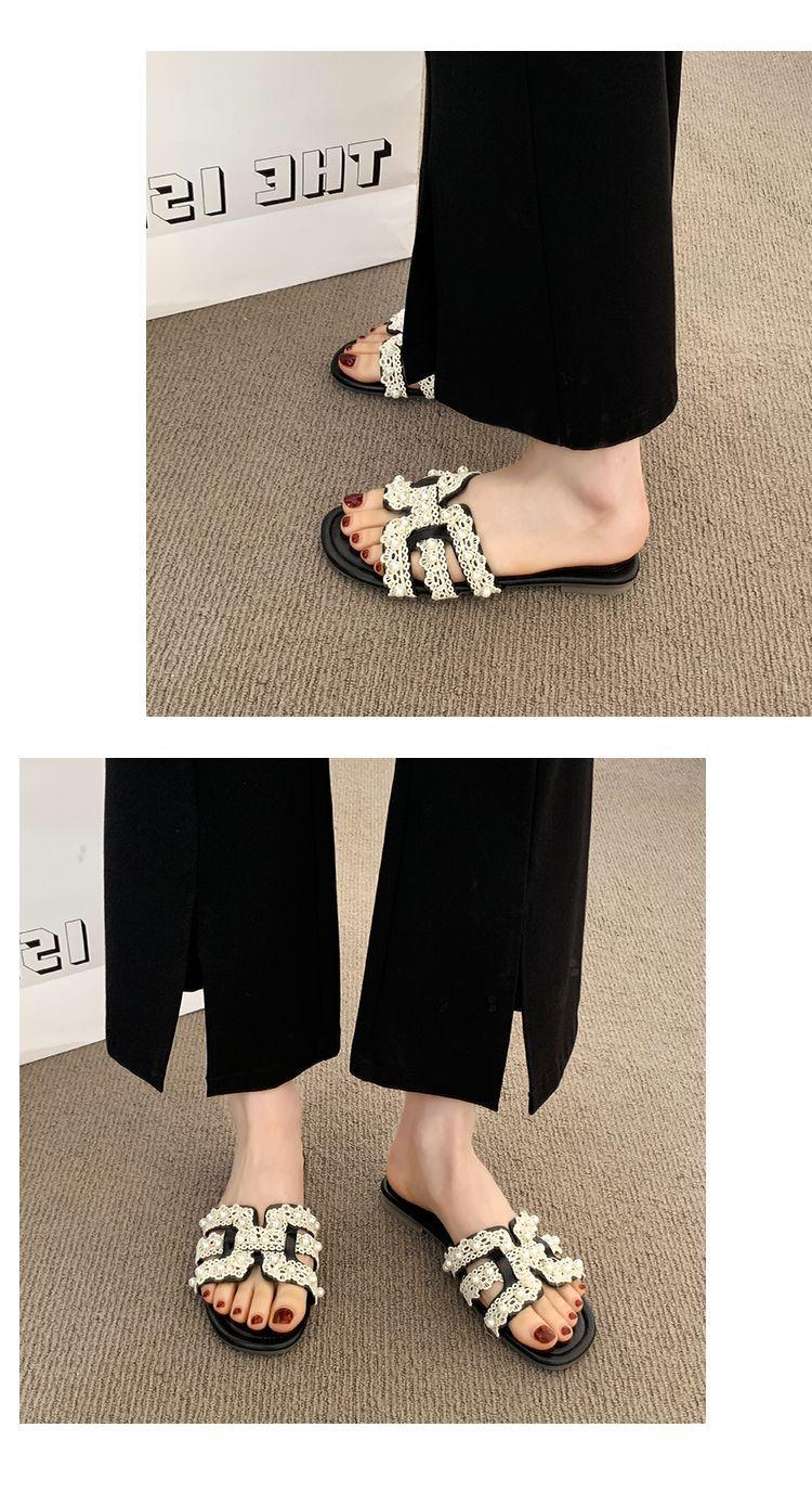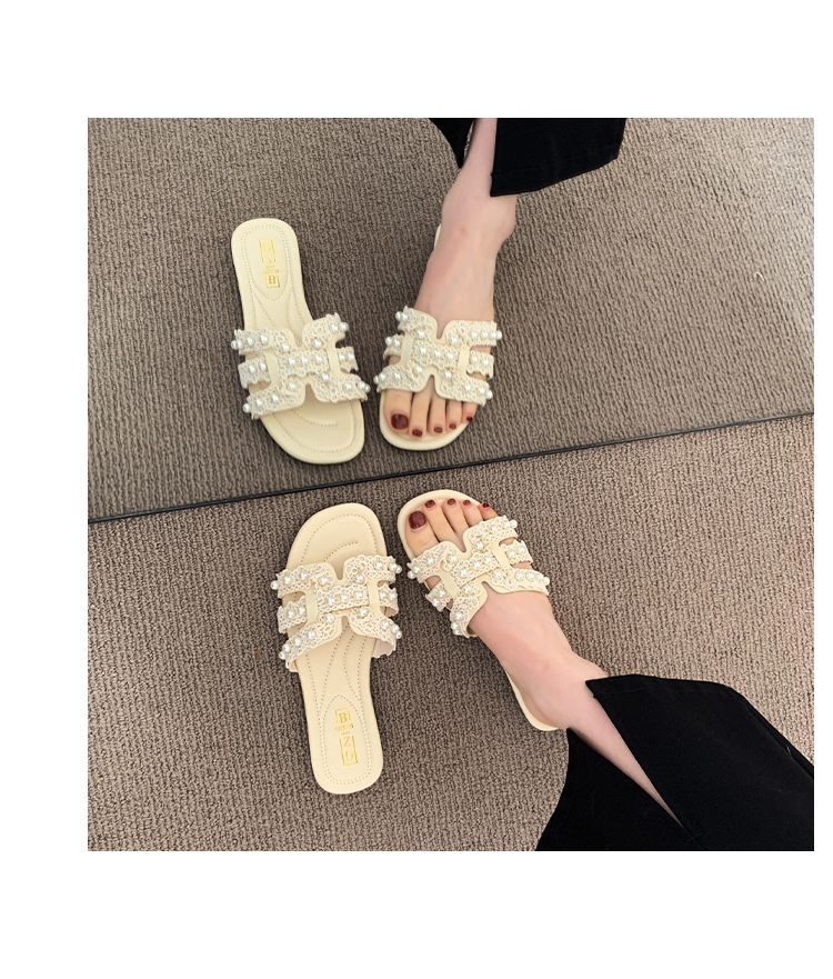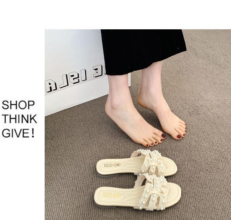 Pantuflas planas cómodas para el hogar Verano Nuevo Estilo de hada francés Elegantes Perlas Playa Una tira Pantuflas perezosas