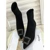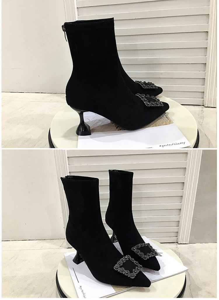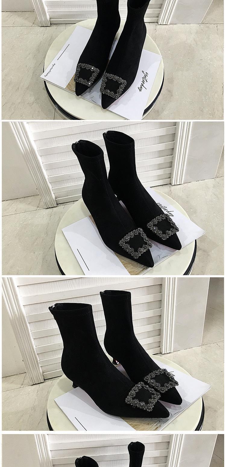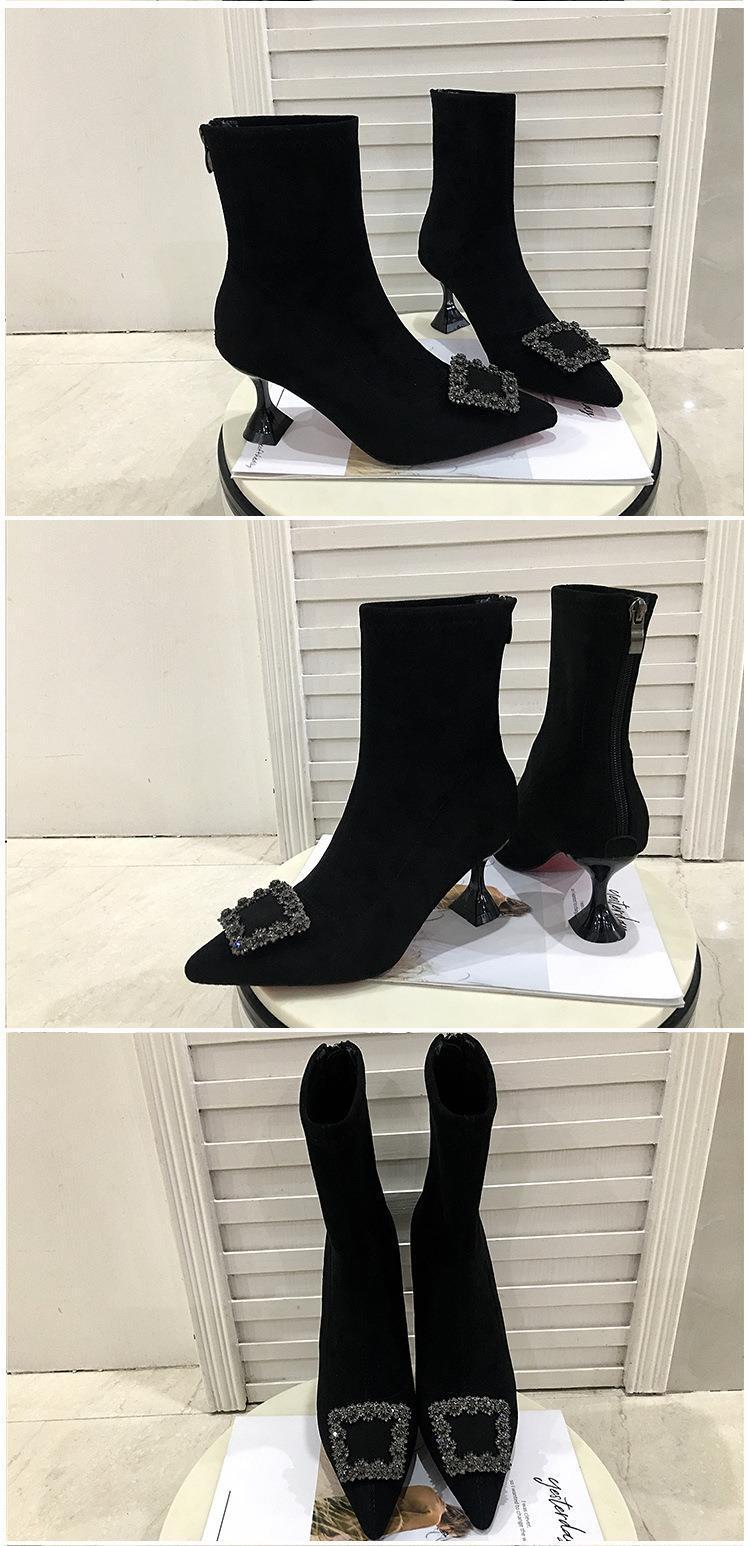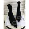 Botas negras mujer 2022 otoño pedrería puntiagudas tacones altos hebilla cuadrada botas elásticas talla grande botas cortas tacón bajo botas ajustadas