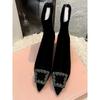 Botas Negras para Mujer Mujer 2025 Otoño Pedrería Punta Afilada Tacones Altos Hebilla Cuadrada Botines Elásticos Botines Tacón Bajo Delgado