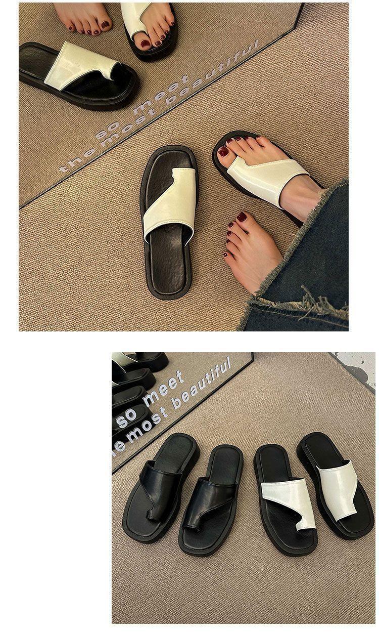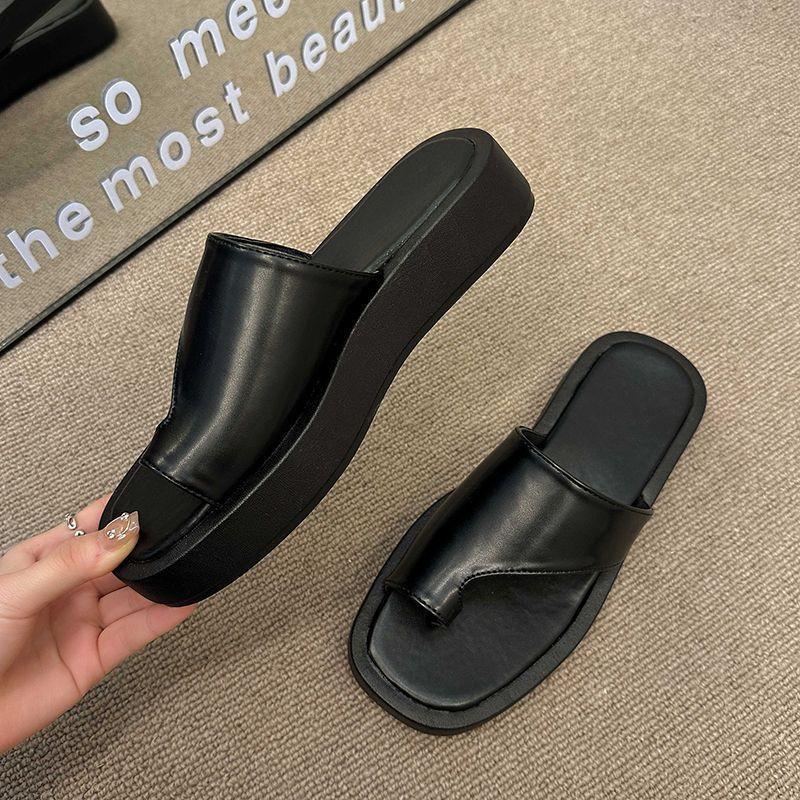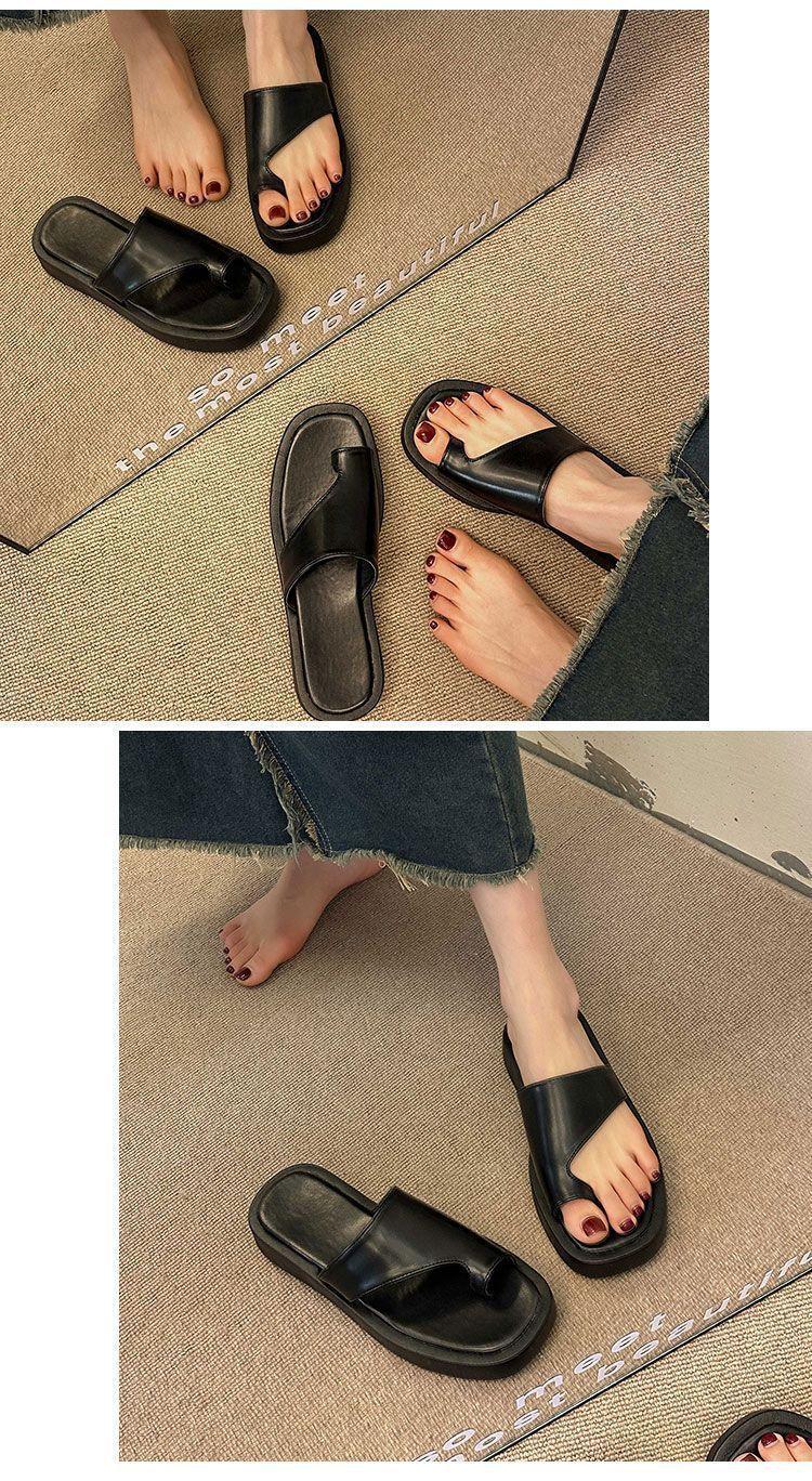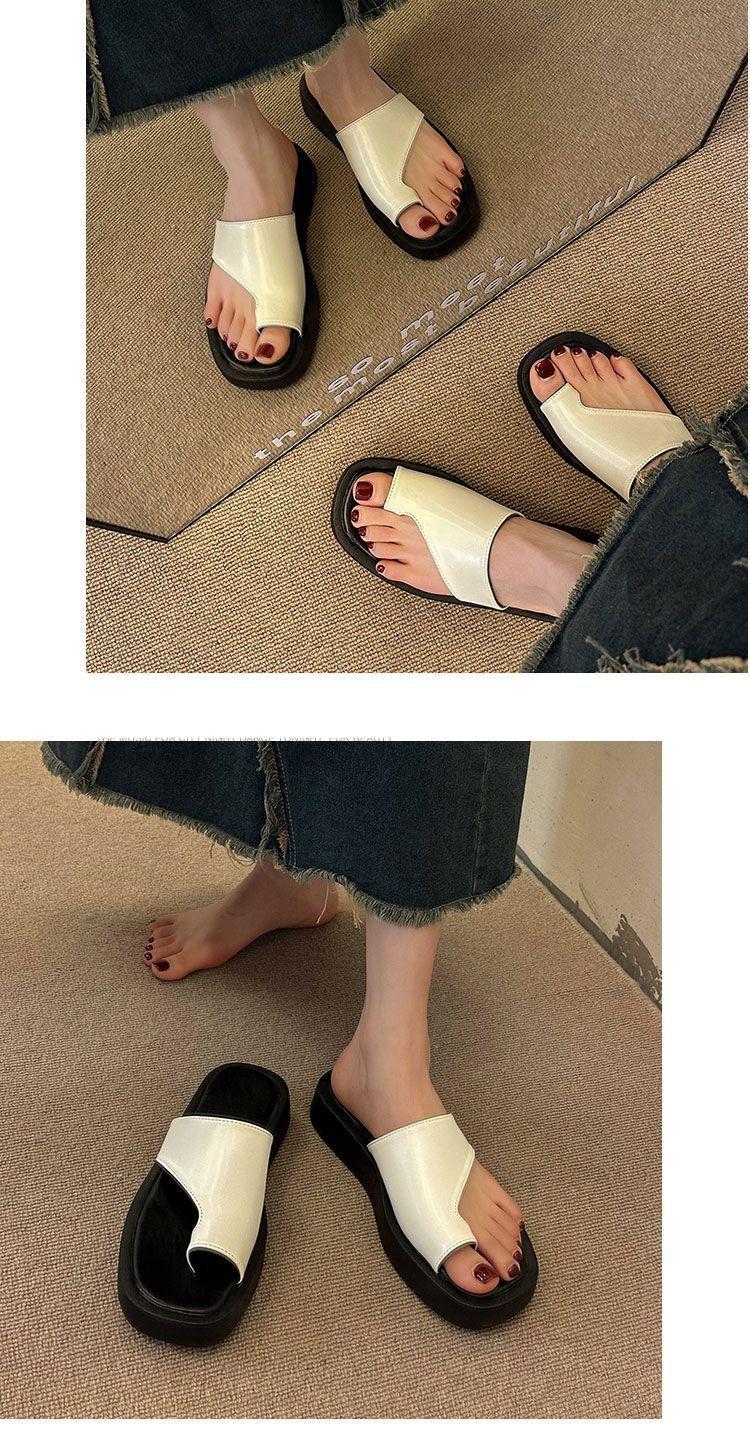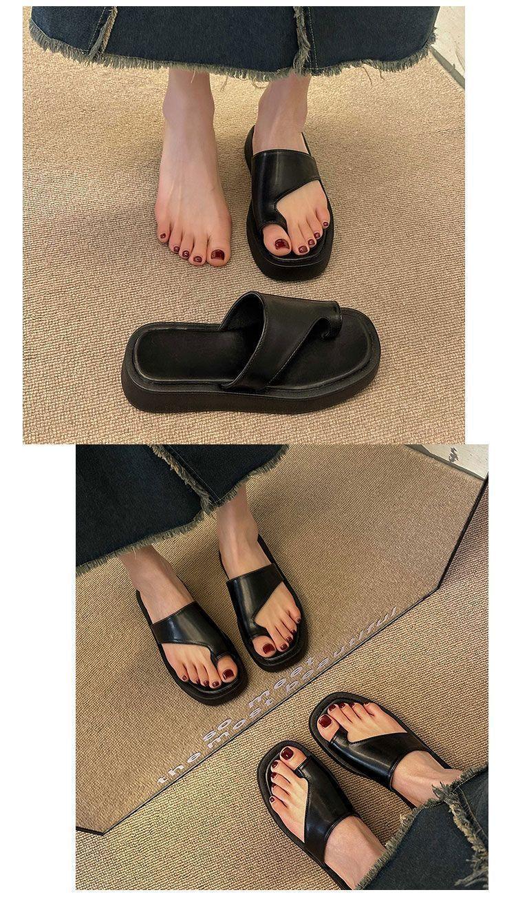 Pantuflas de Suela Gruesa de Nicho Retro Estilo Coreano para Mujer para Exterior 2025 Otoño Nueva Moda Chanclas de Playa Cómodas de Suela Suave con Lazo para el Dedo
