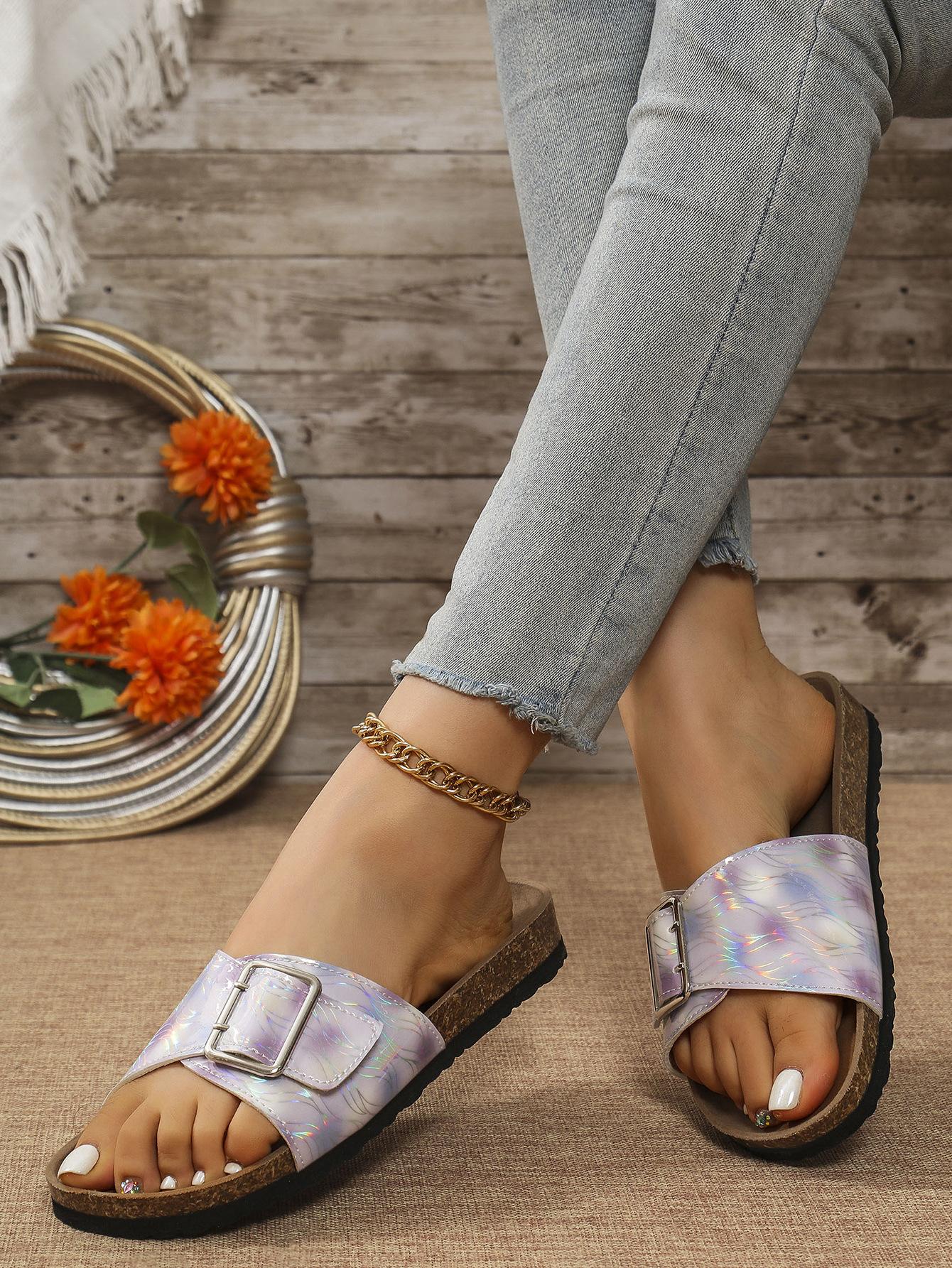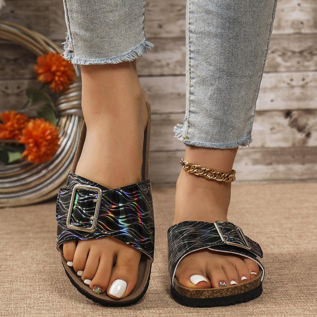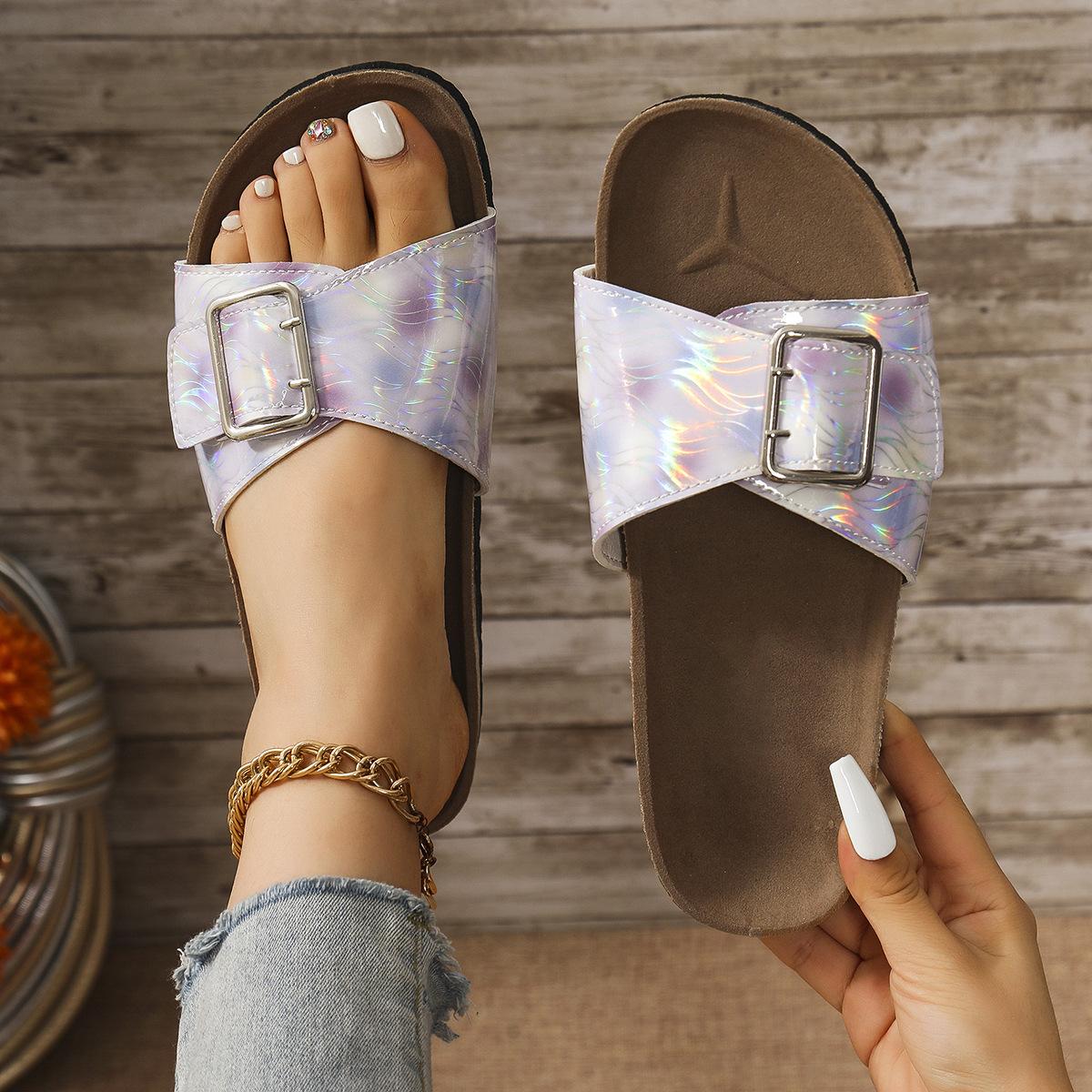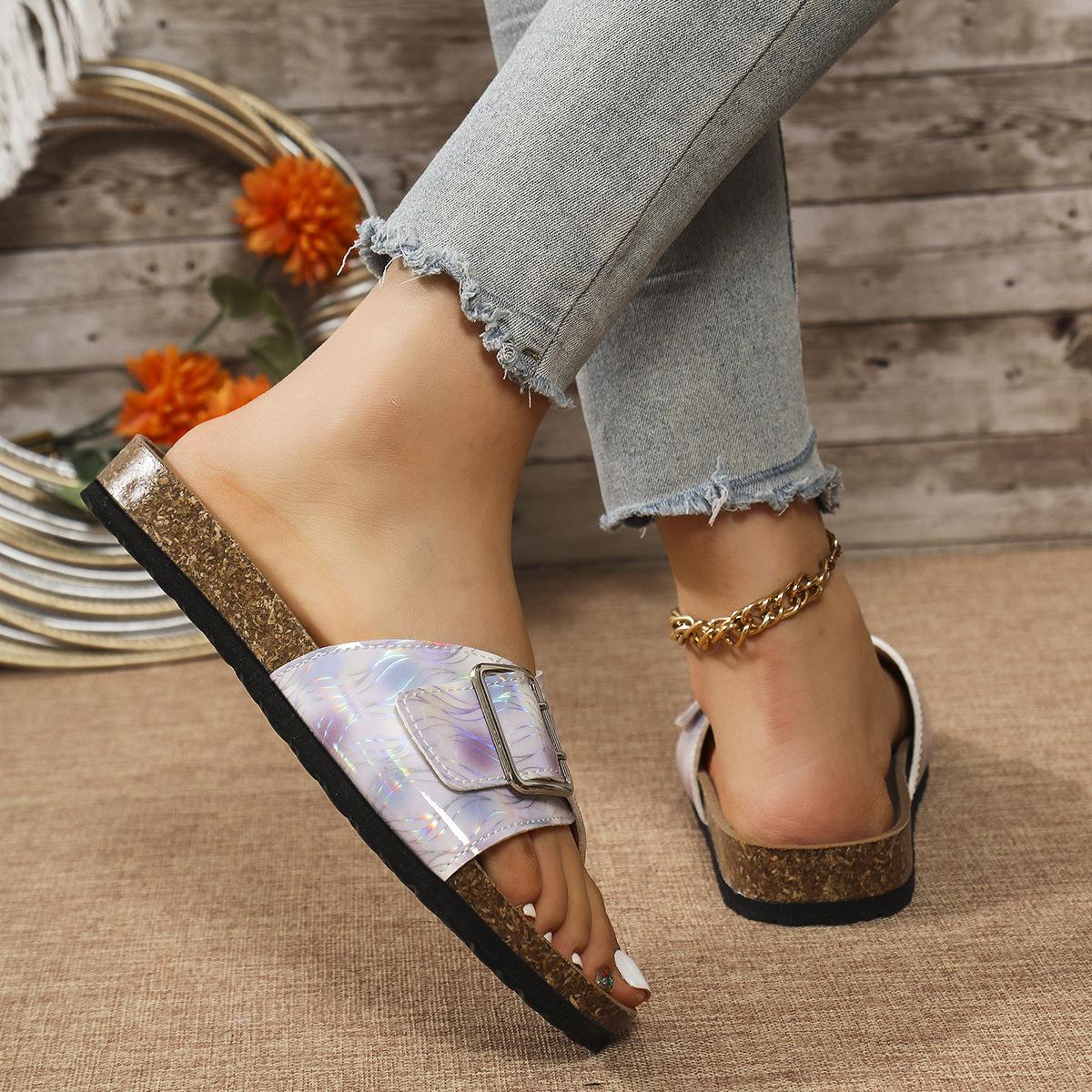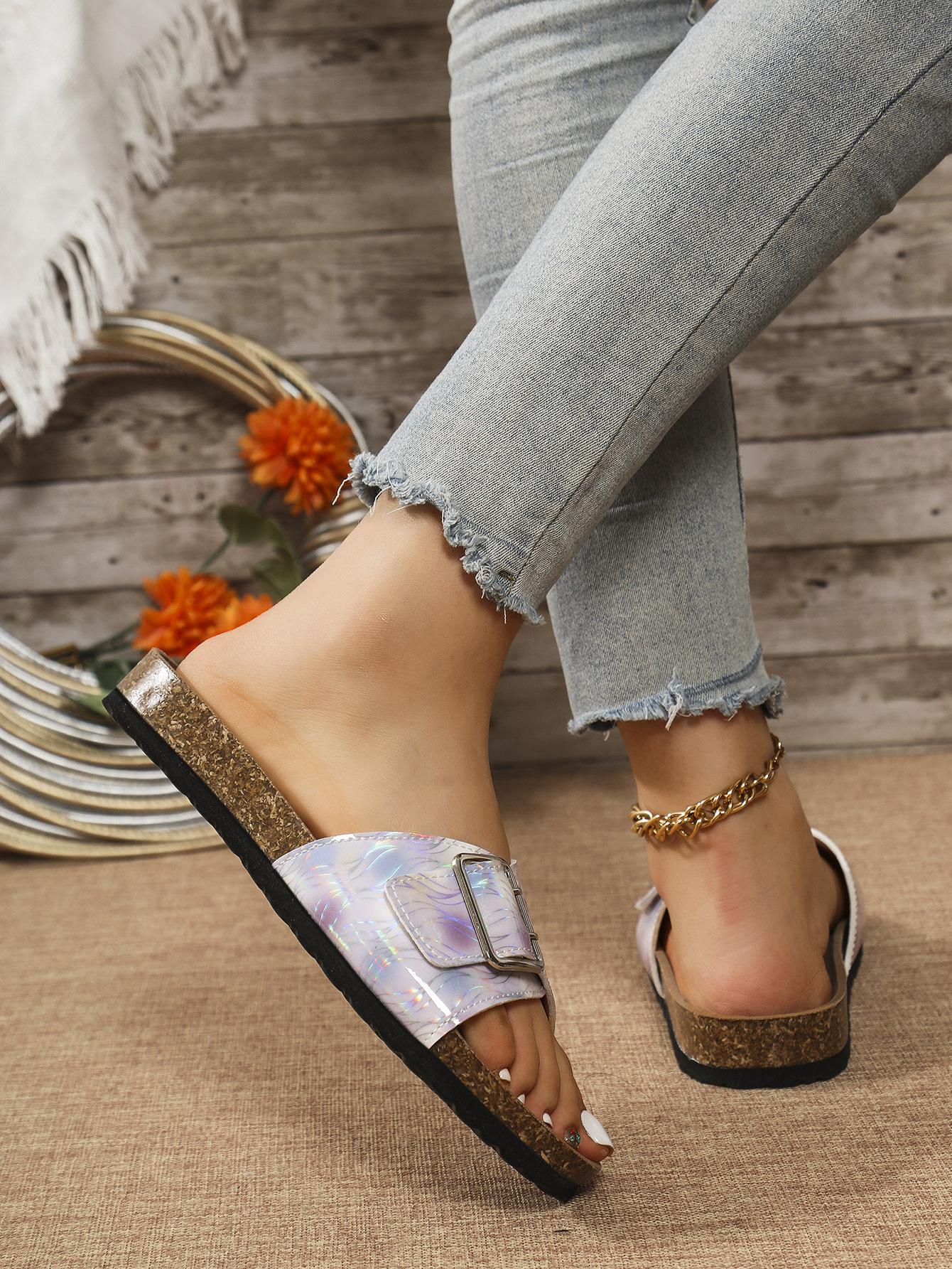 Sandalias y pantuflas de moda transfronteriza para mujer de suela blanda 2025 verano nuevo estilo pantuflas para exterior casuales versátiles playa pantuflas planas