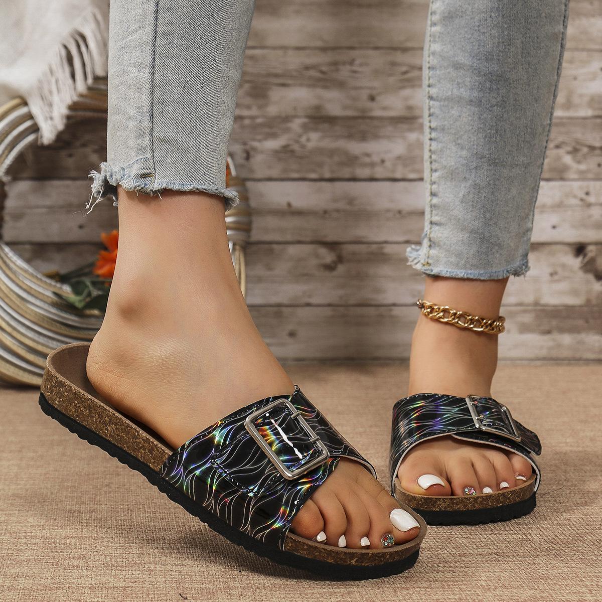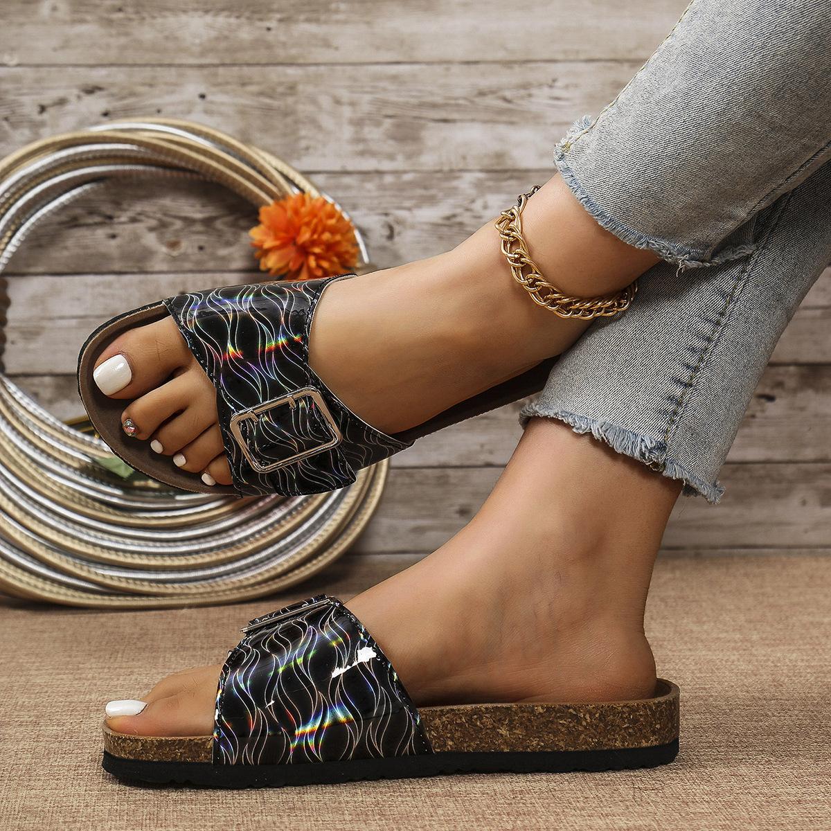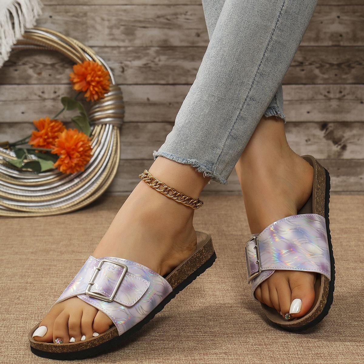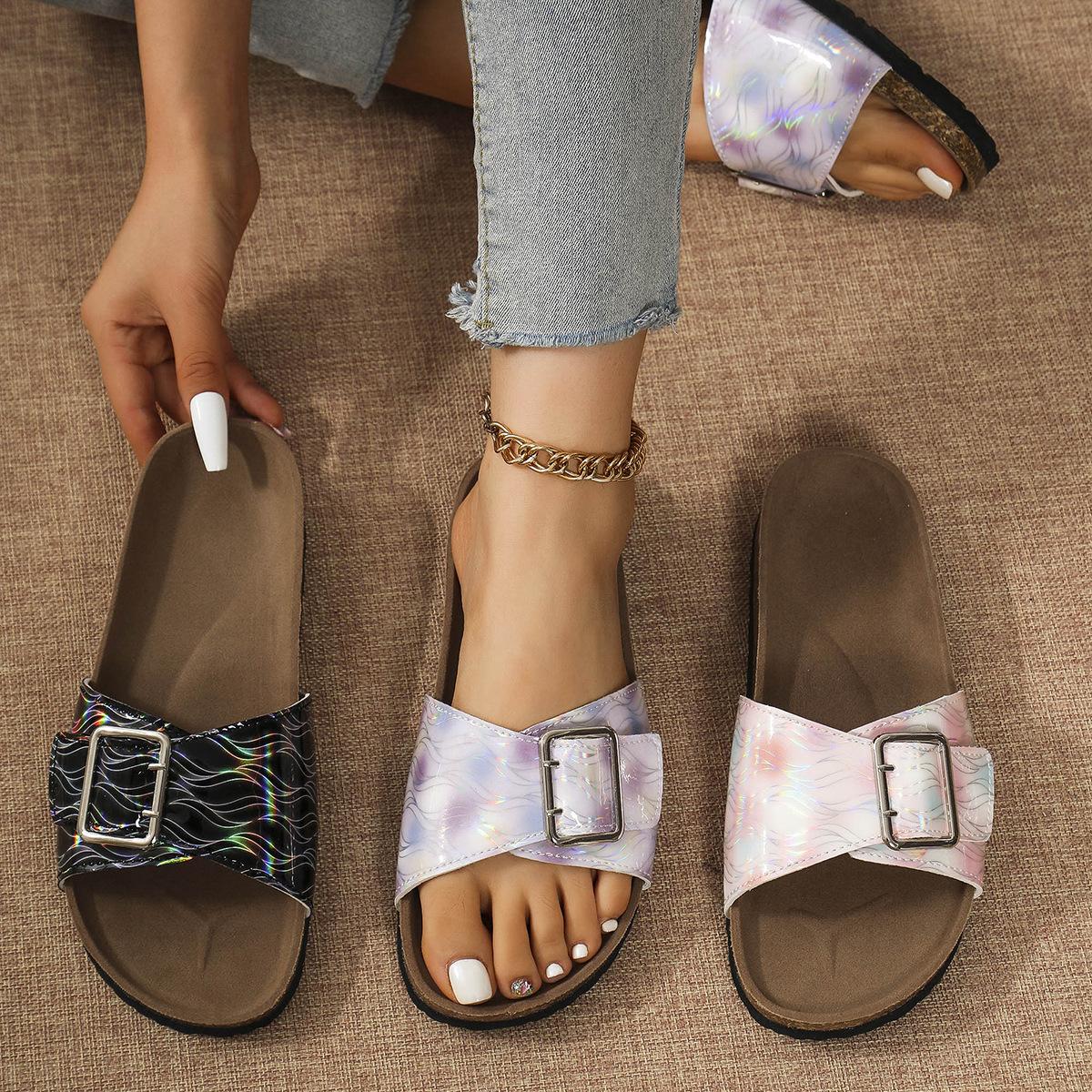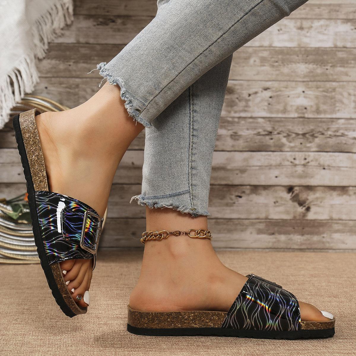 Sandalias y pantuflas de moda transfronteriza para mujer de suela blanda 2025 verano nuevo estilo pantuflas para exterior casuales versátiles playa pantuflas planas