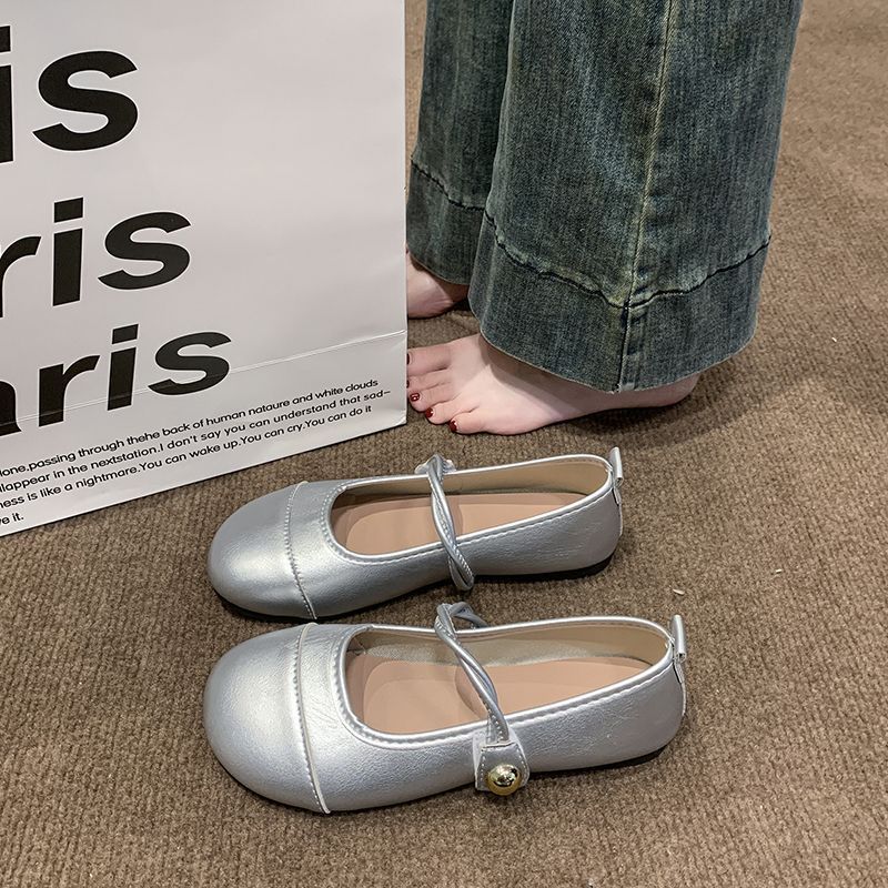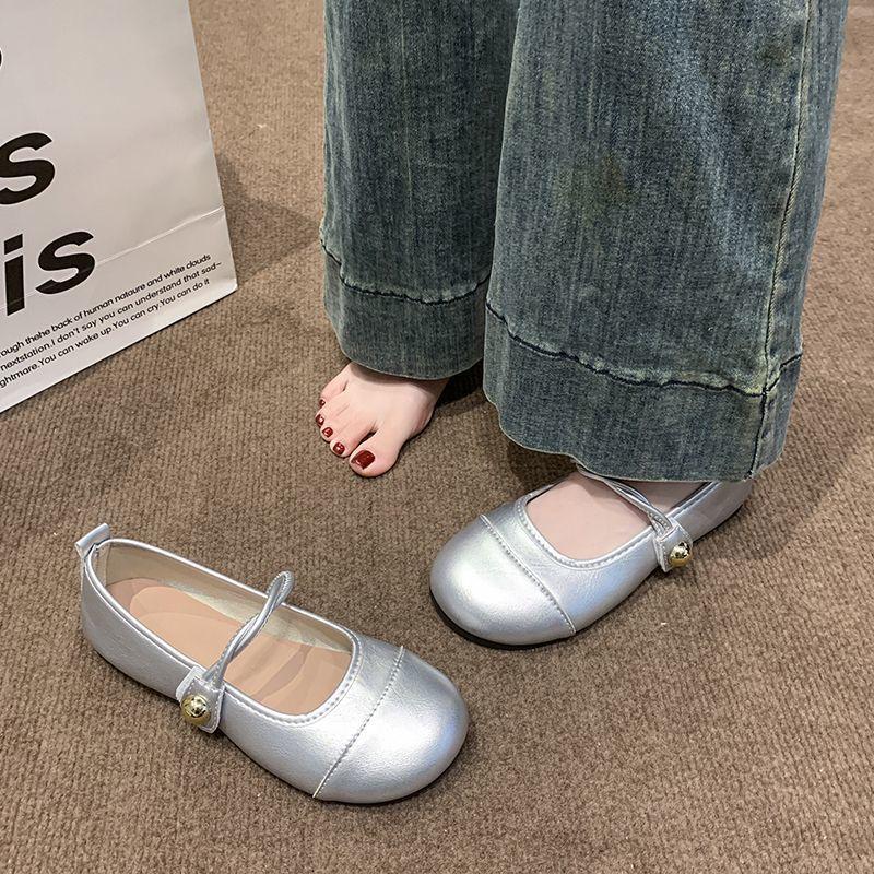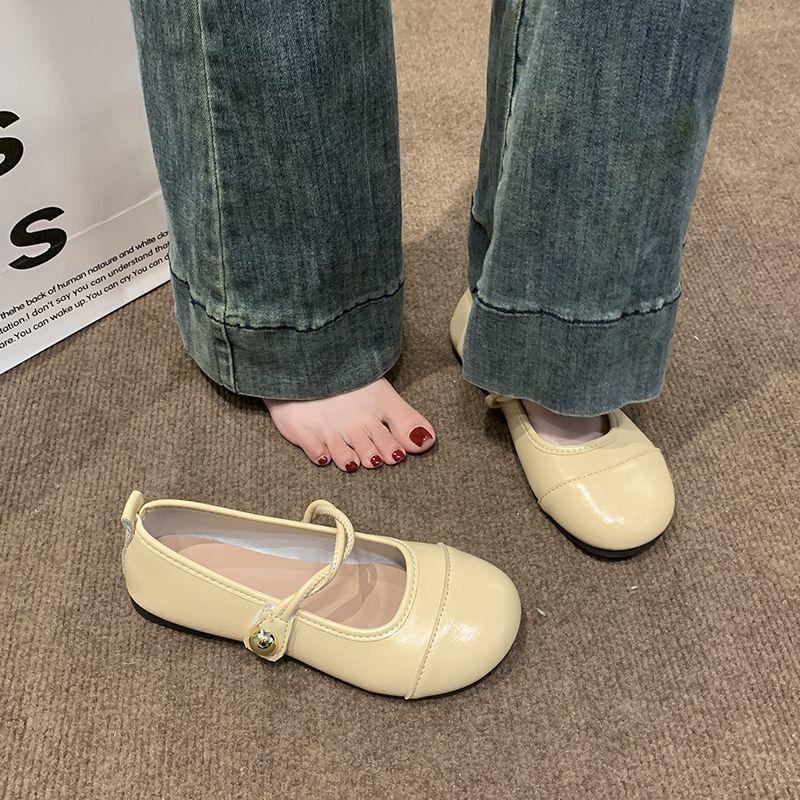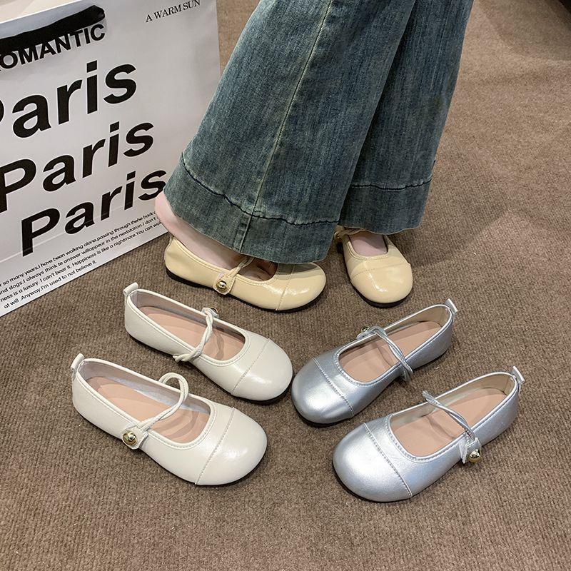 Falda a juego de influencer Zapatos Mary Jane de velcro Moda francesa versátiles mocasines de punta redonda mujeres 2025 verano y otoño nuevo
