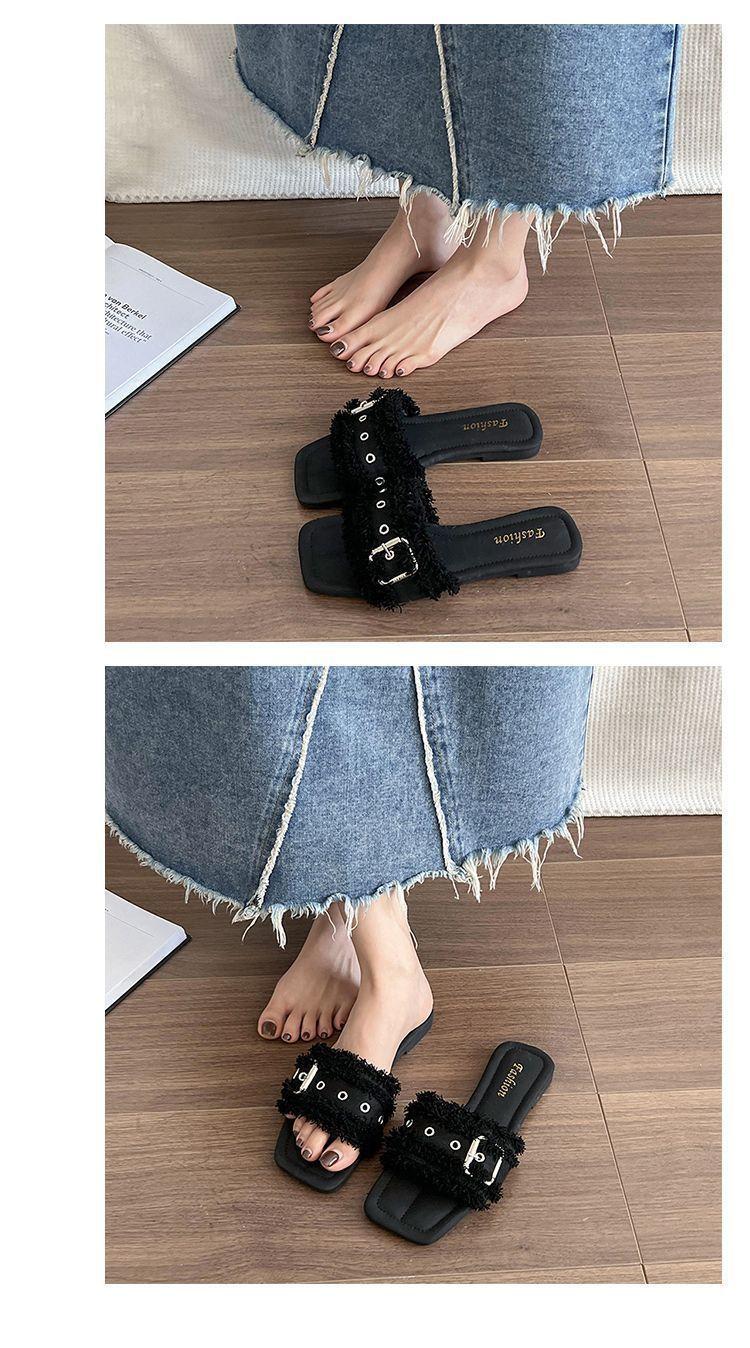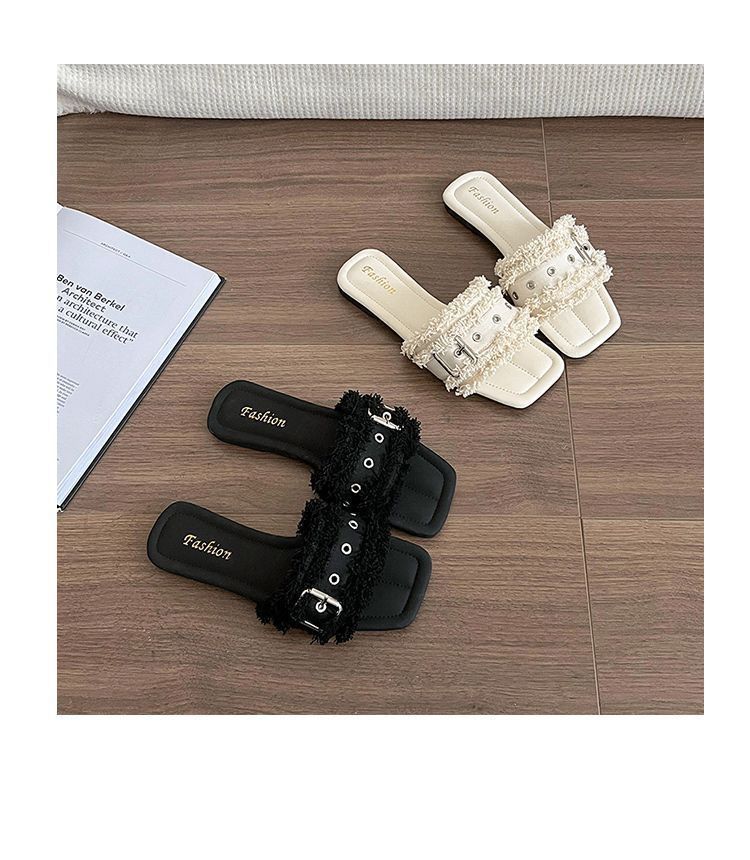 Sandalias planas de playa francesas para mujer verano 2025 verano nuevo cómodas hebilla una tira estilo pequeña fragancia zapatillas