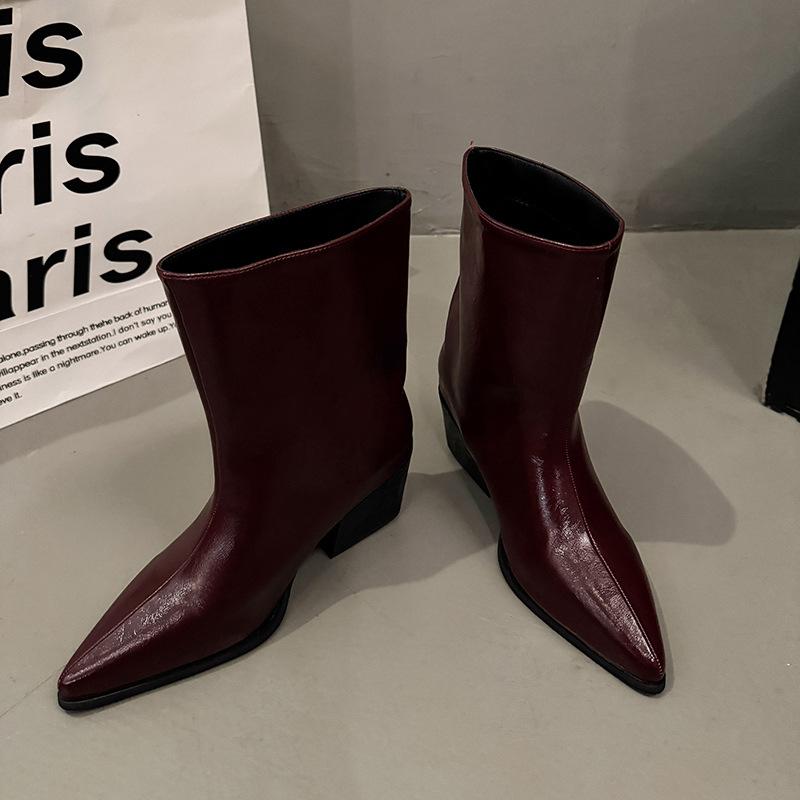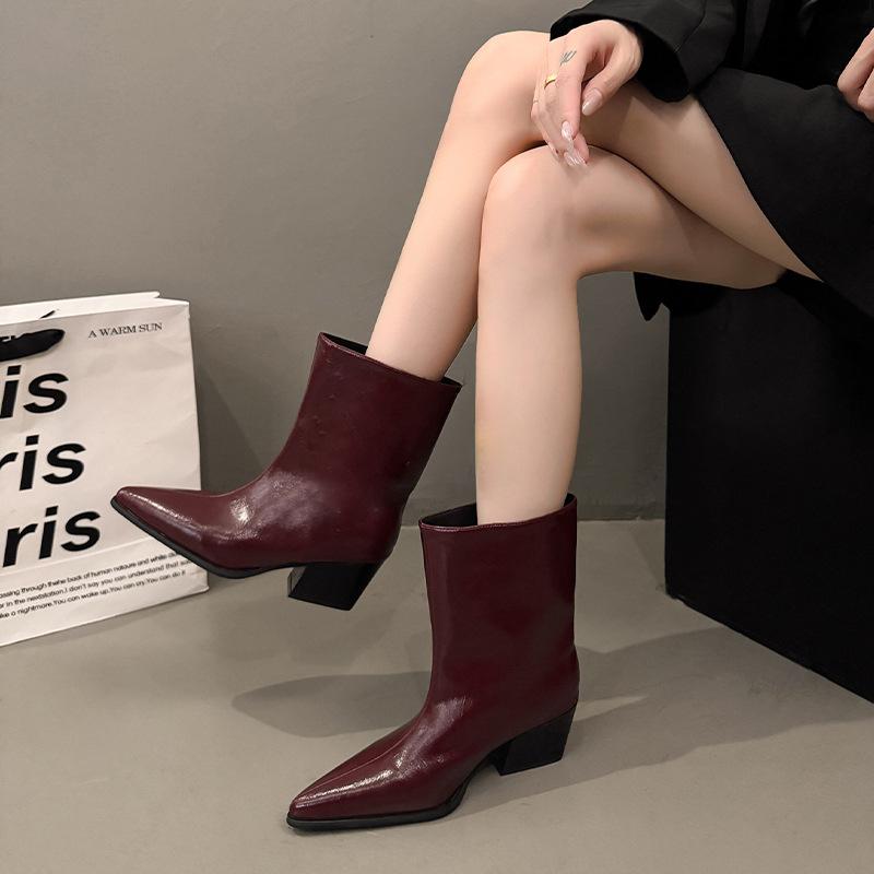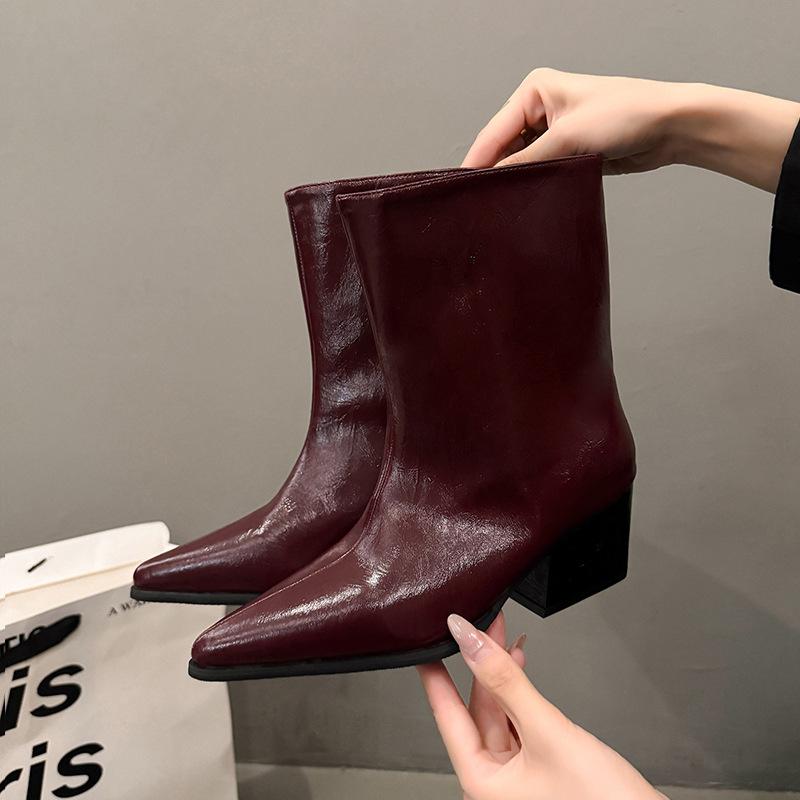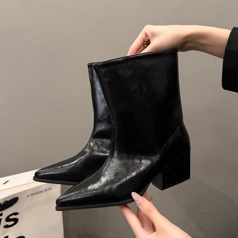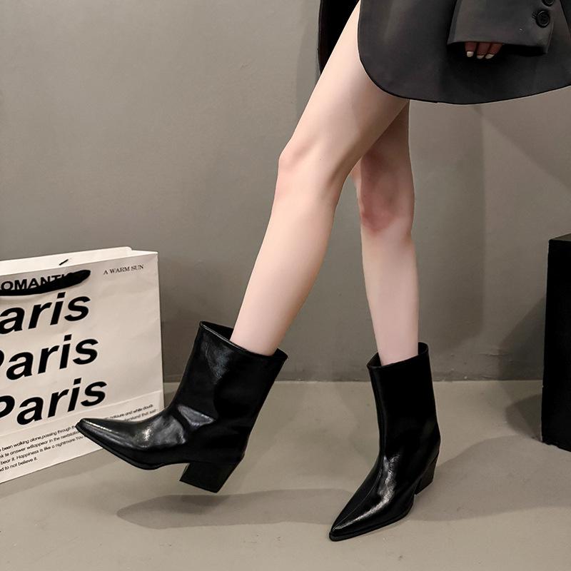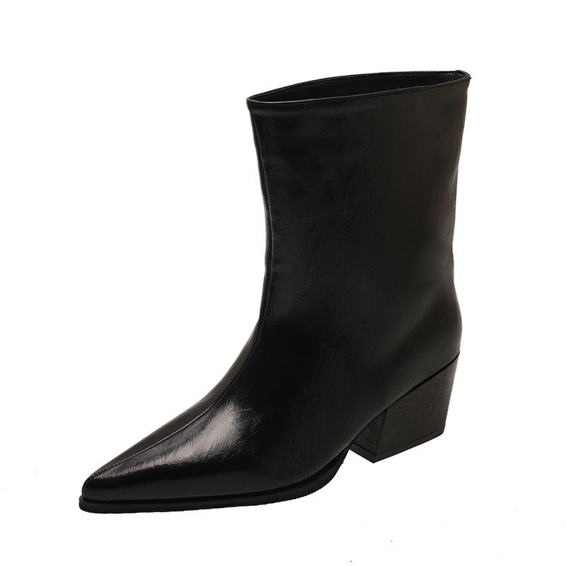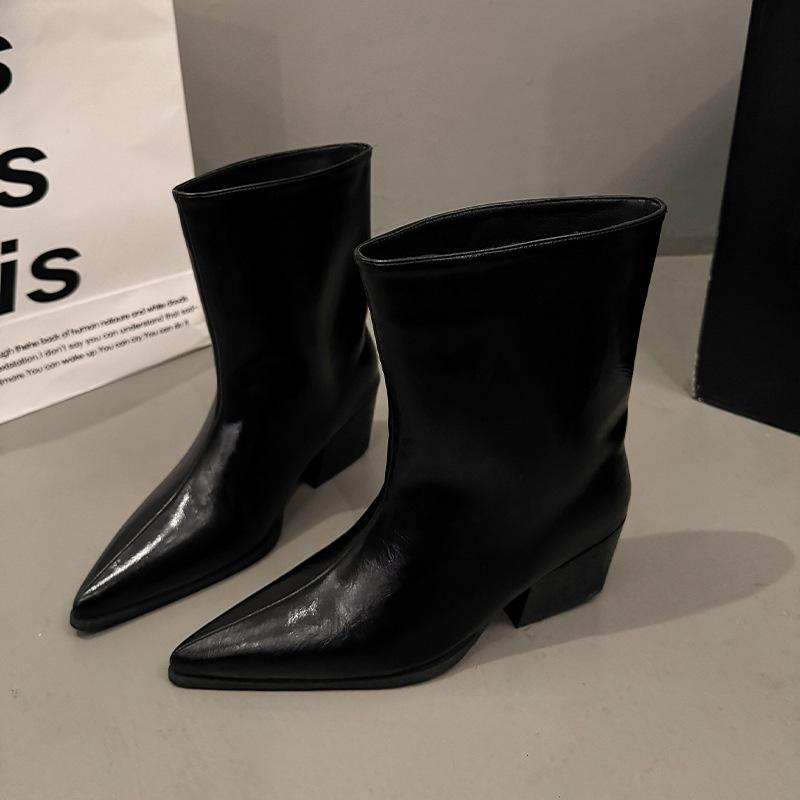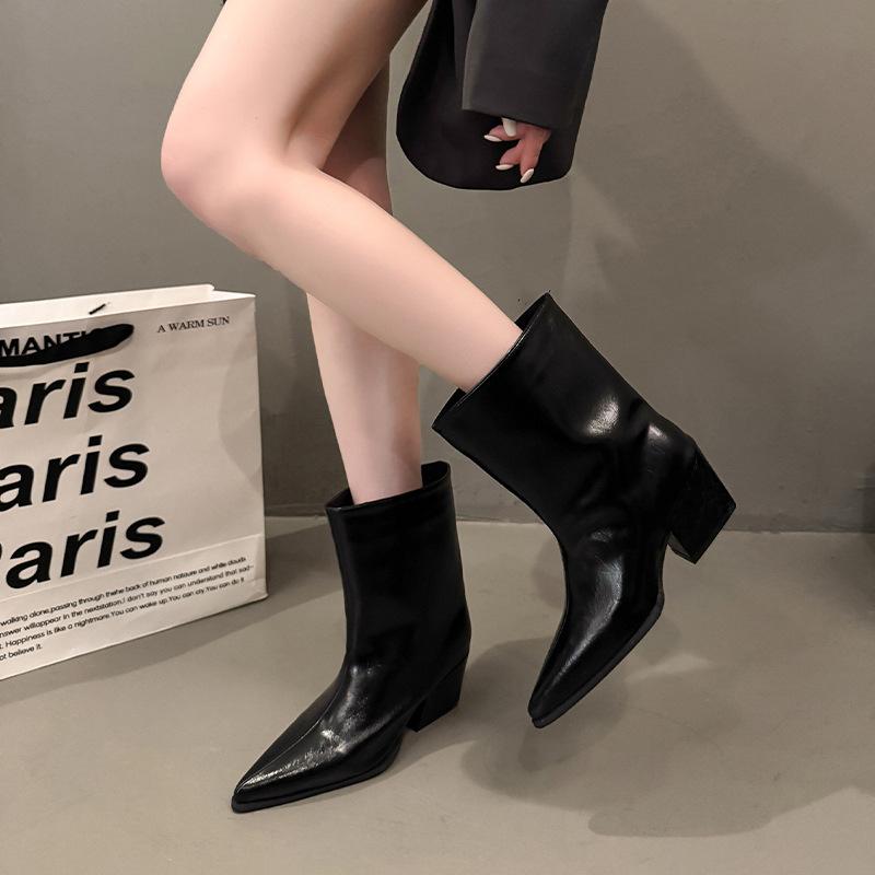 Botines de Tacón Bajo con Punta Francesa por Encima de la Rodilla Botas de Mujer Otoño 2025 Nuevos Botines de Corte Bajo