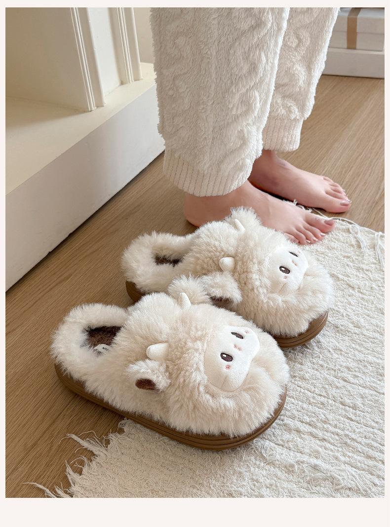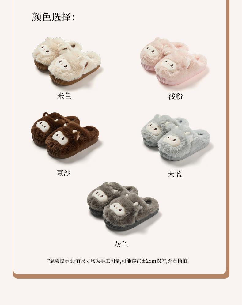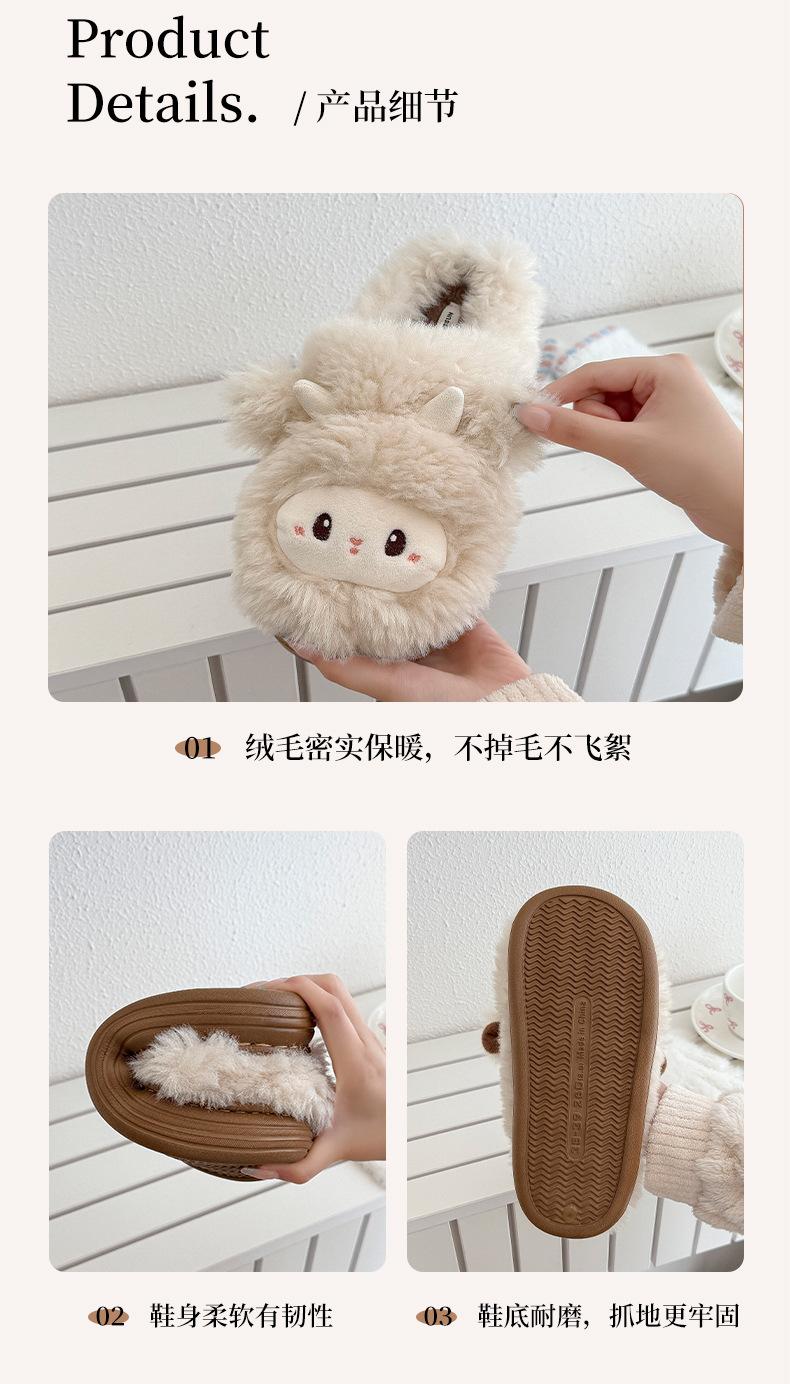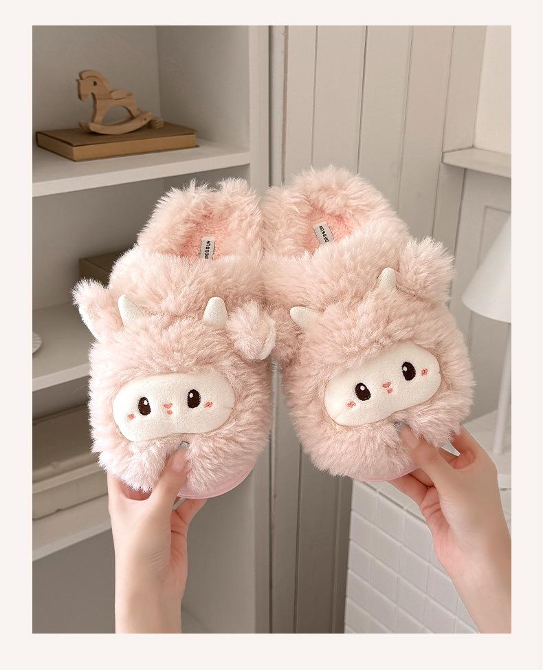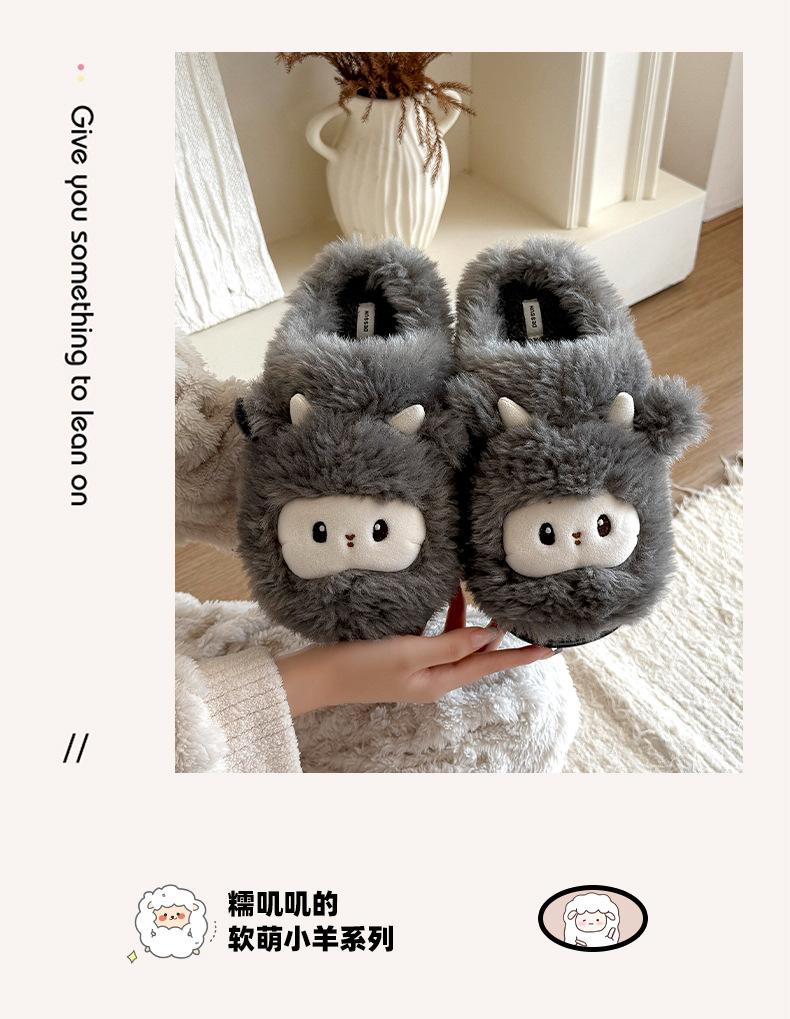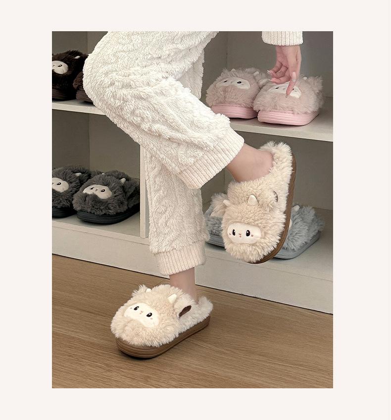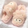 Pantuflas de Algodón Rosadas de Oveja Pequeña Linda de Dibujos Animados Invierno Felpa Cálido Antideslizante Zapatos de Mujer Hogar Suela Gruesa Sensación de Pisar Mierda Zapatos de Algodón