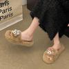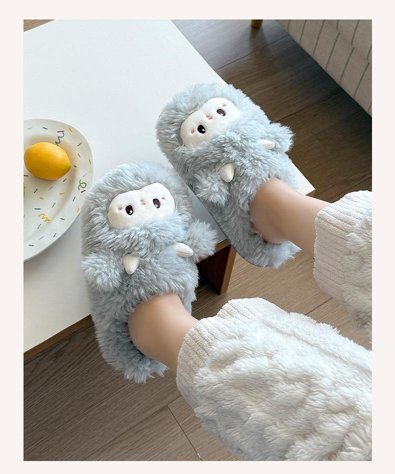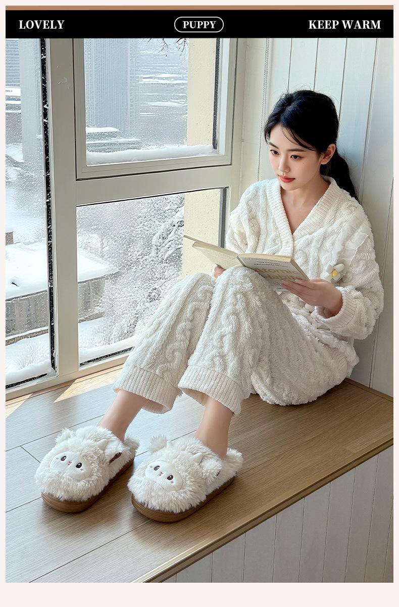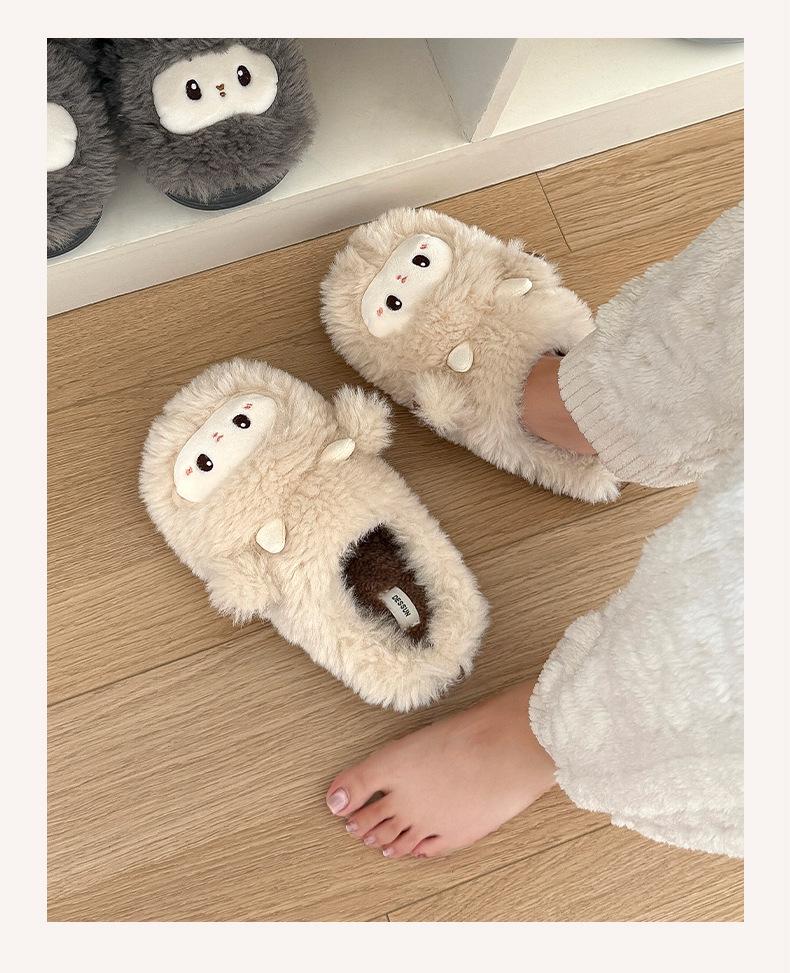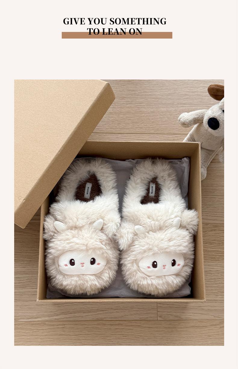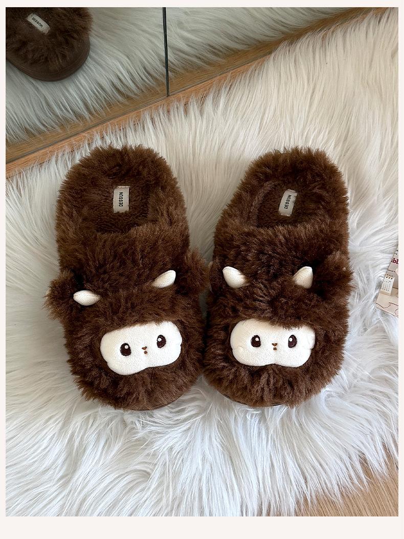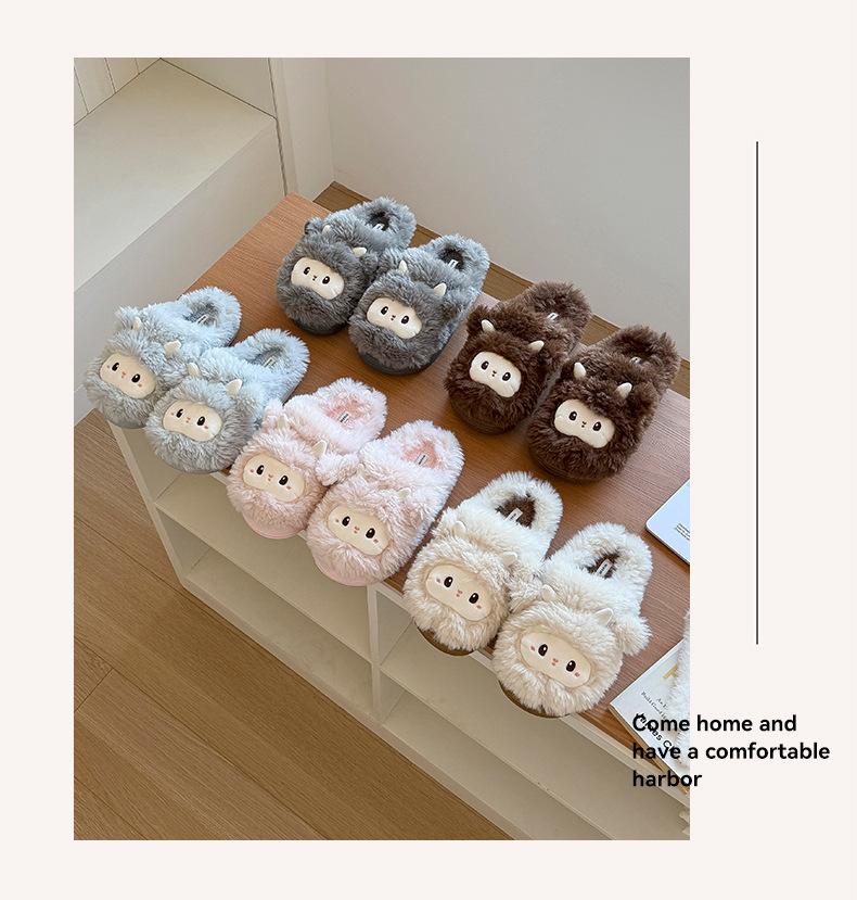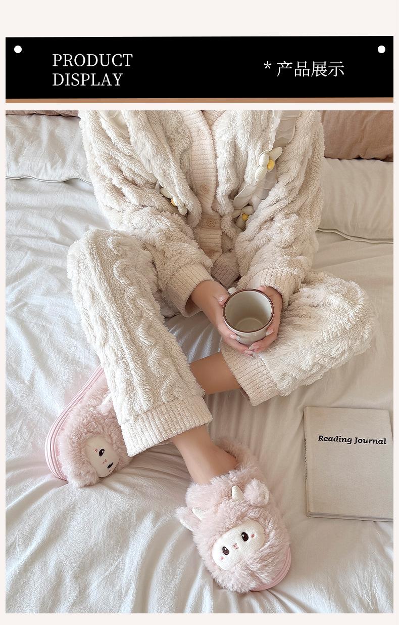 Pantuflas de Algodón Rosadas de Oveja Pequeña Linda de Dibujos Animados Invierno Felpa Cálido Antideslizante Zapatos de Mujer Hogar Suela Gruesa Sensación de Pisar Mierda Zapatos de Algodón
