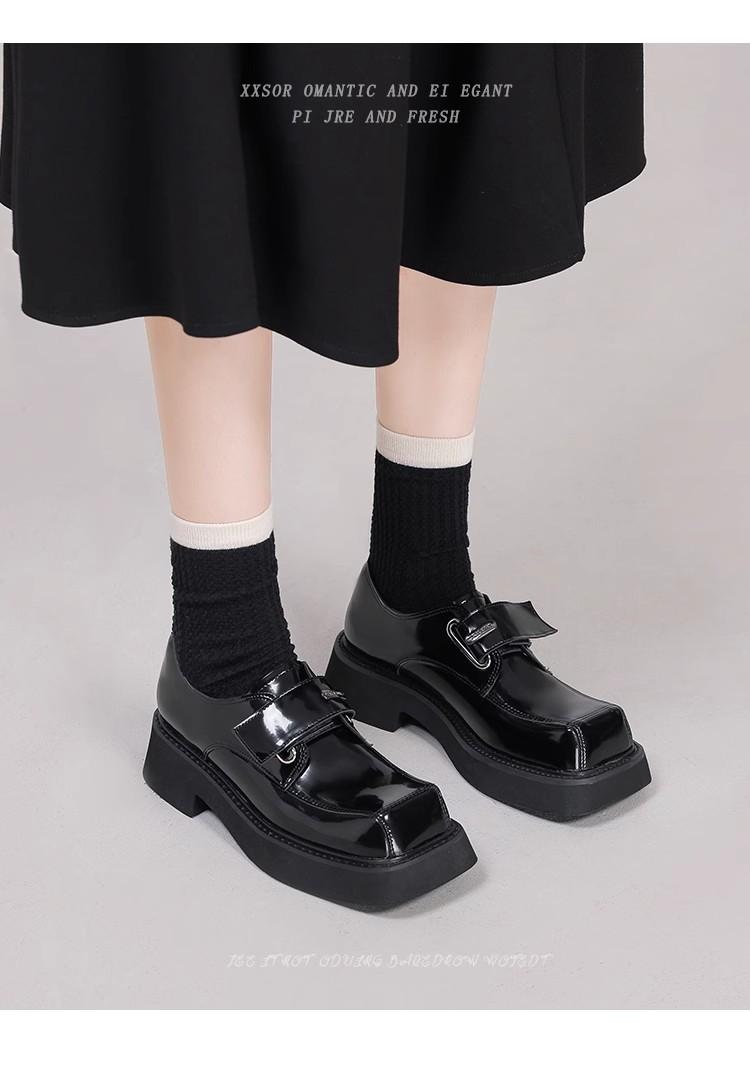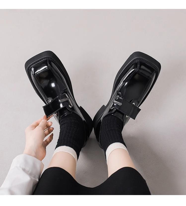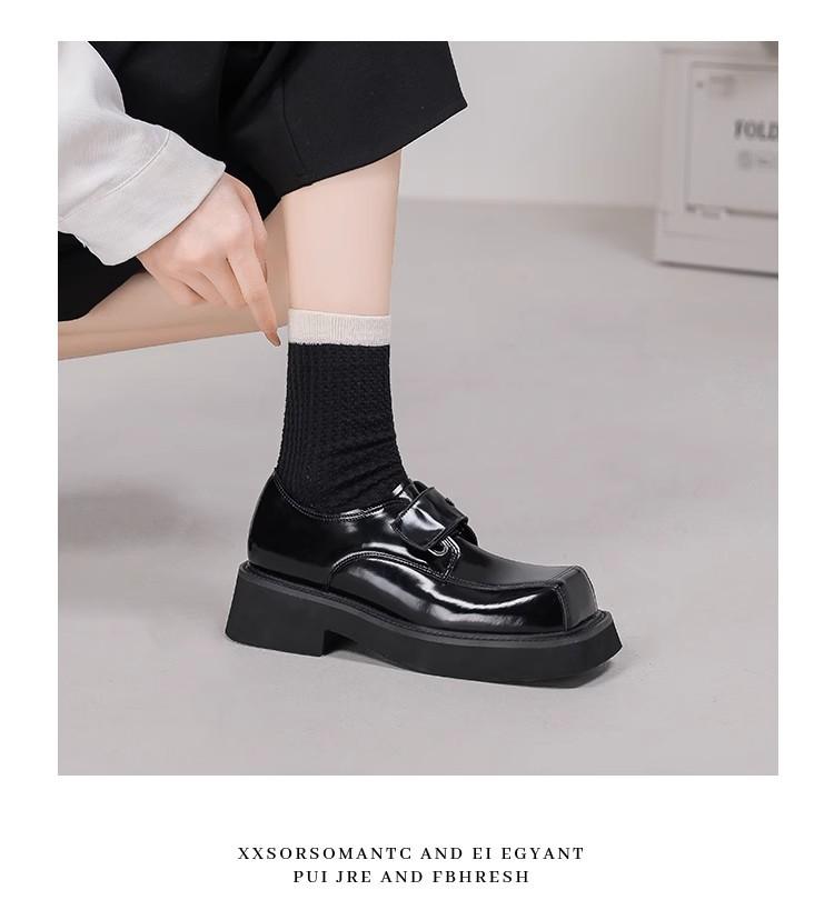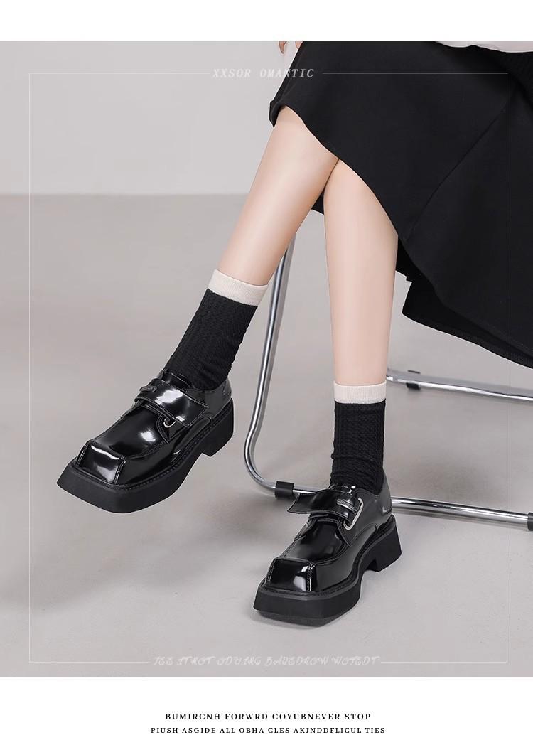 Zapatos de Cuero para Mujer Estilo Japonés 2025 Retro Tacón Grueso Punta Cuadrada Versátil Trendy Estilo Británico Zapatos Casuales Únicos Versátil