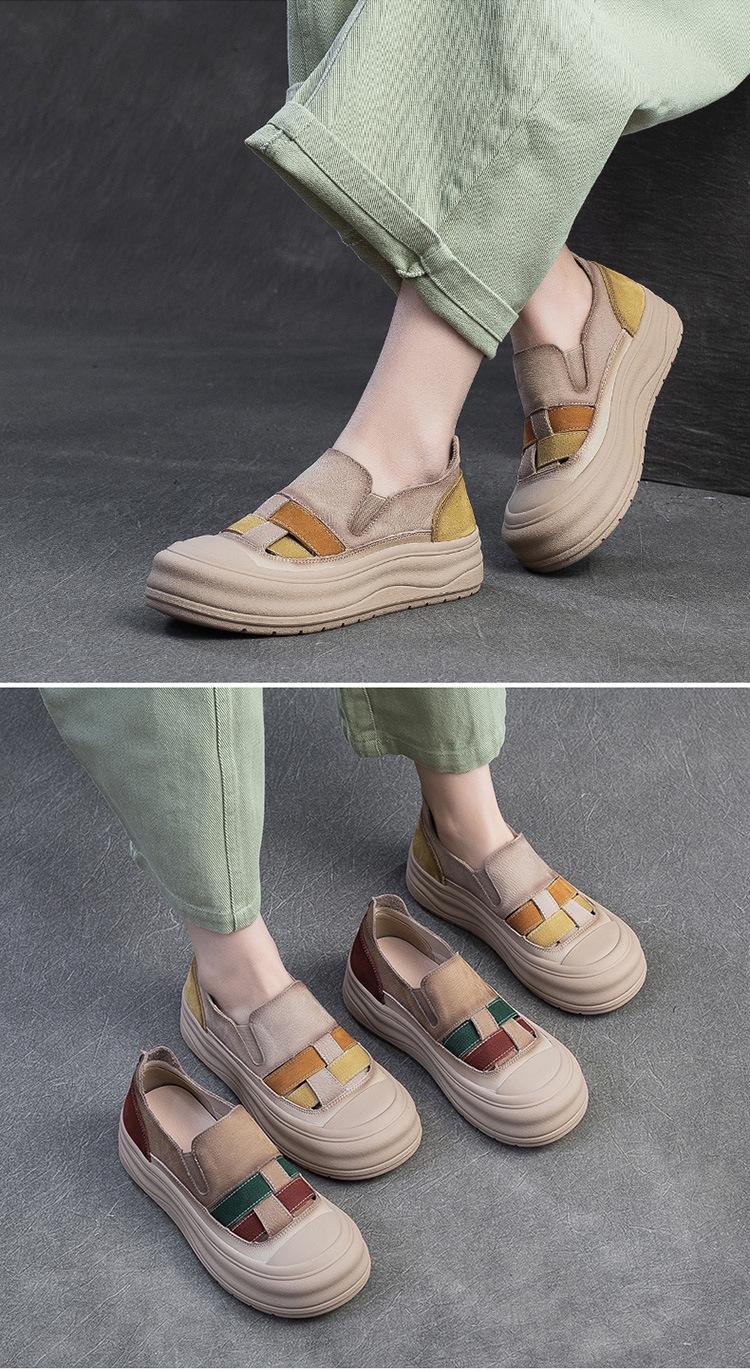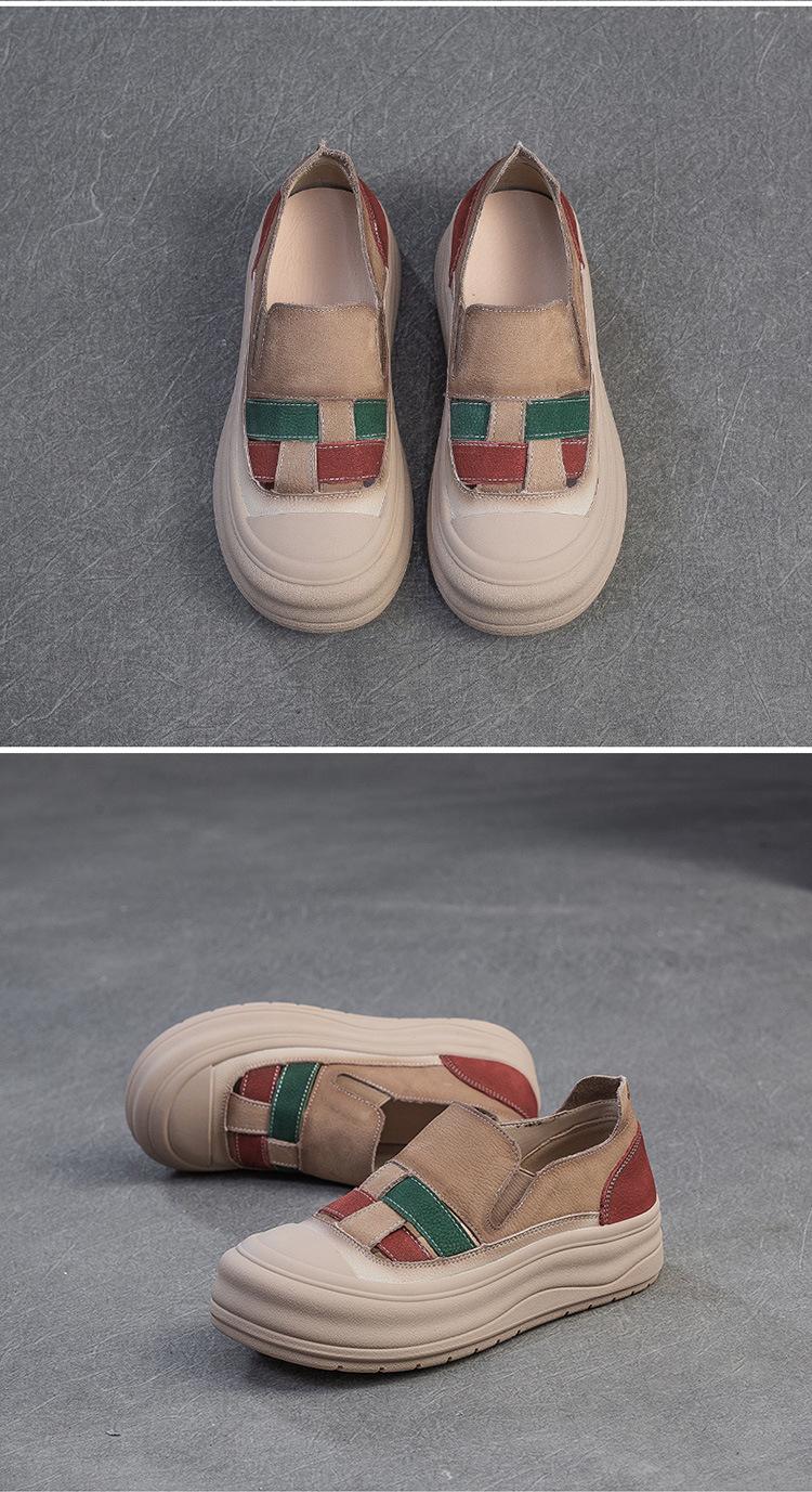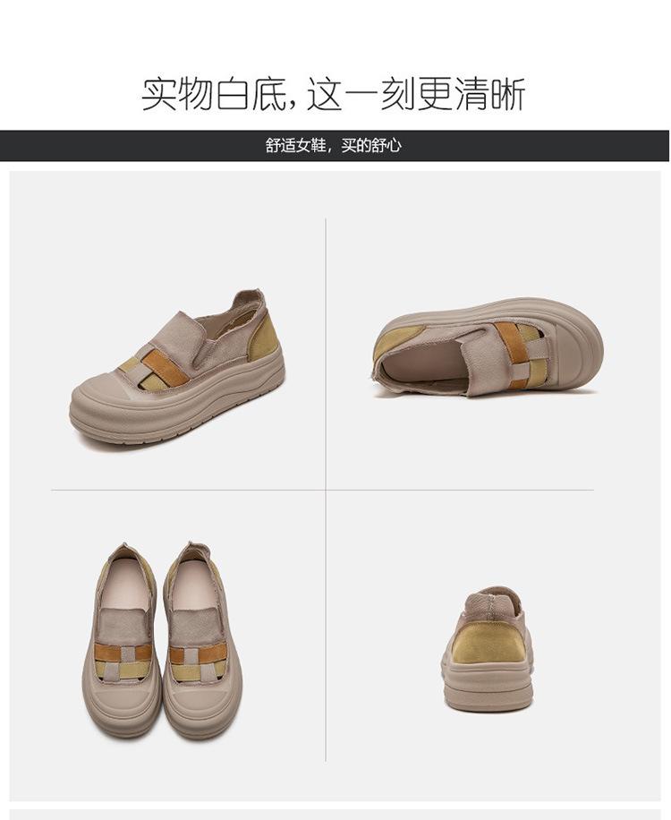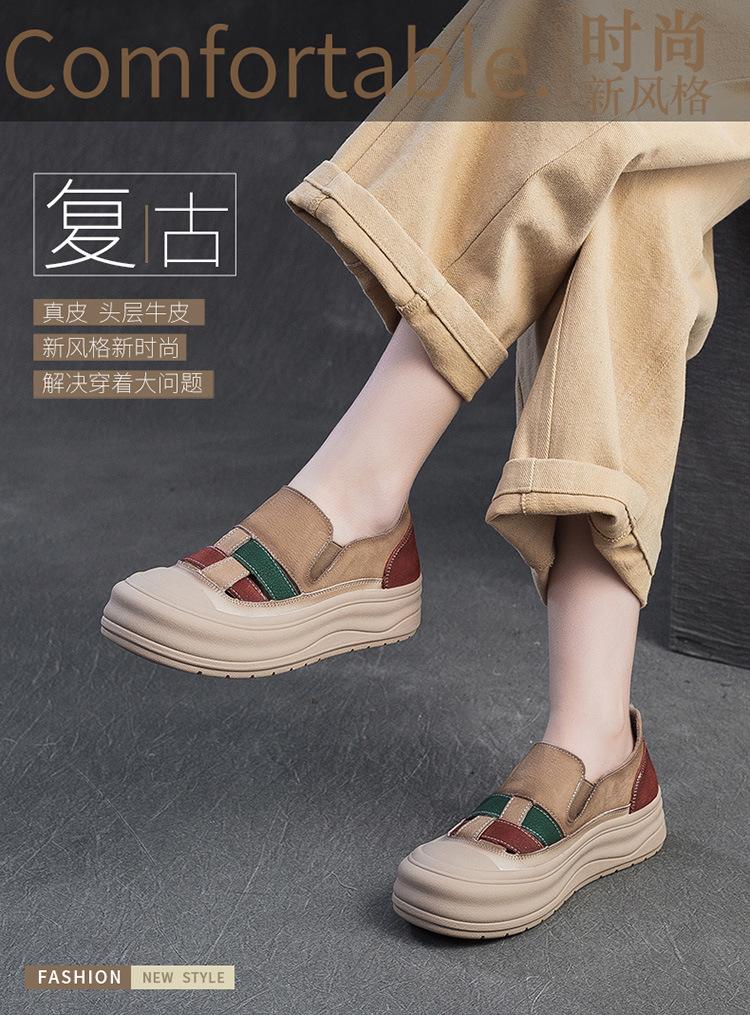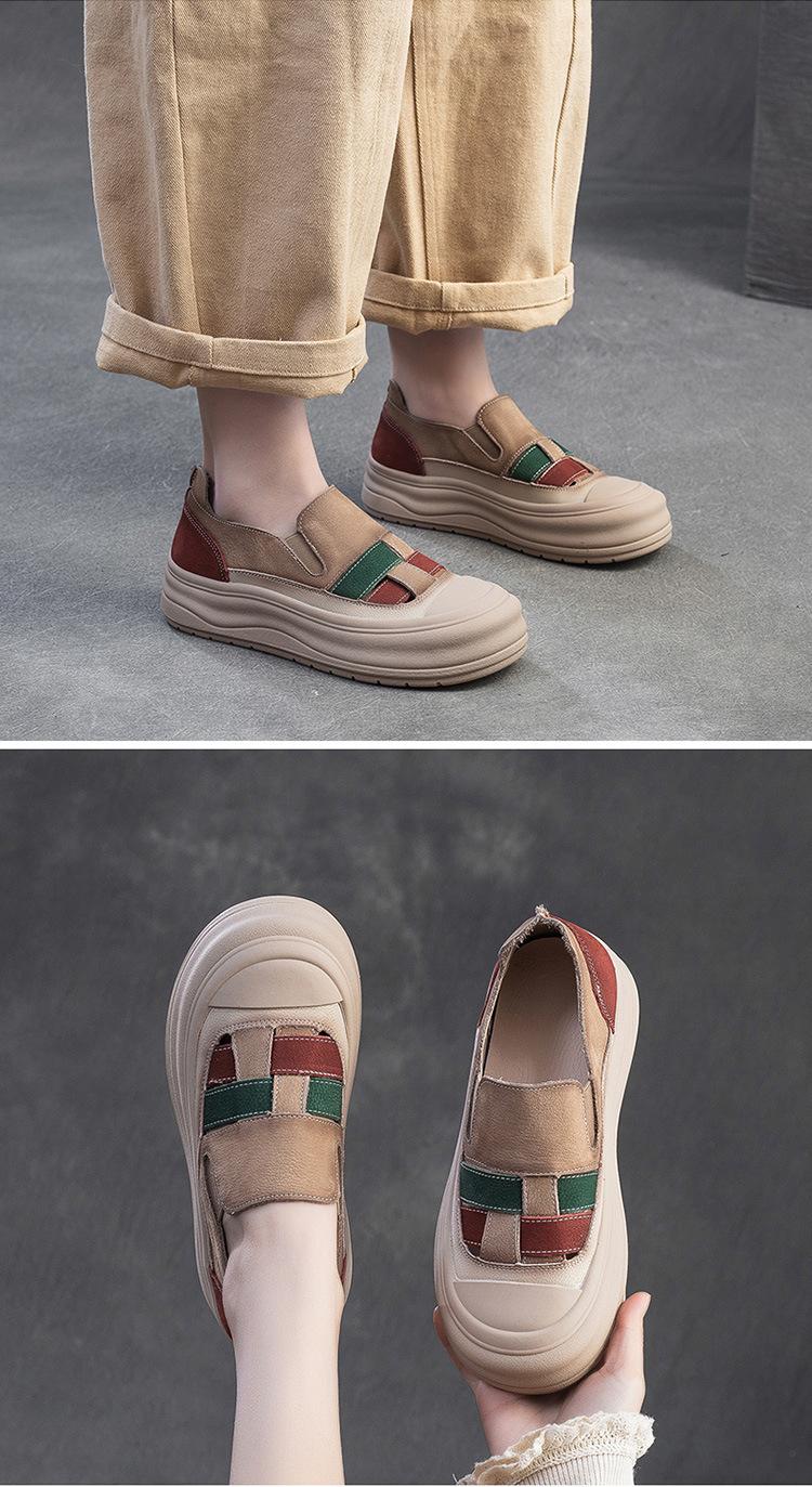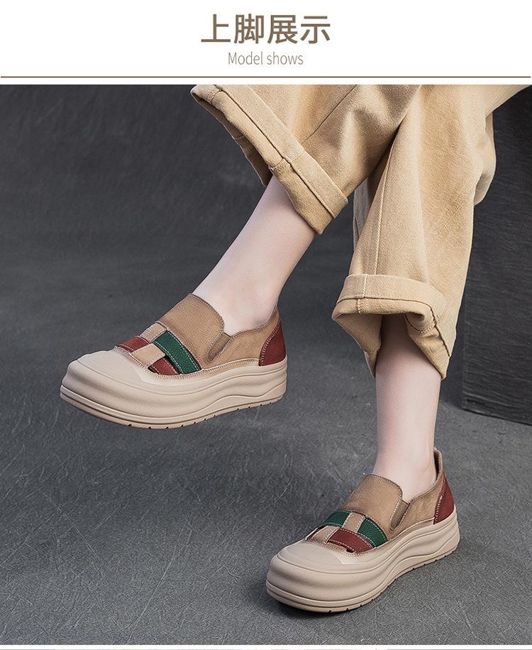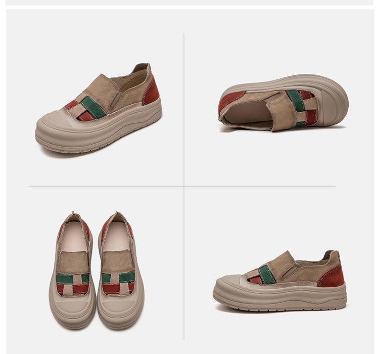 Jie Zhou Otoño 2025 Nuevo Commute Plataforma Escote Bajo Bloque de Color Estilo Étnico Zapatos Individuales de Mujer Slip-On Lazy Ligeros
