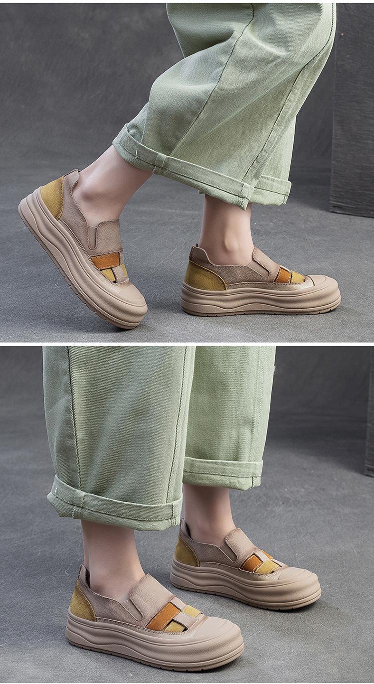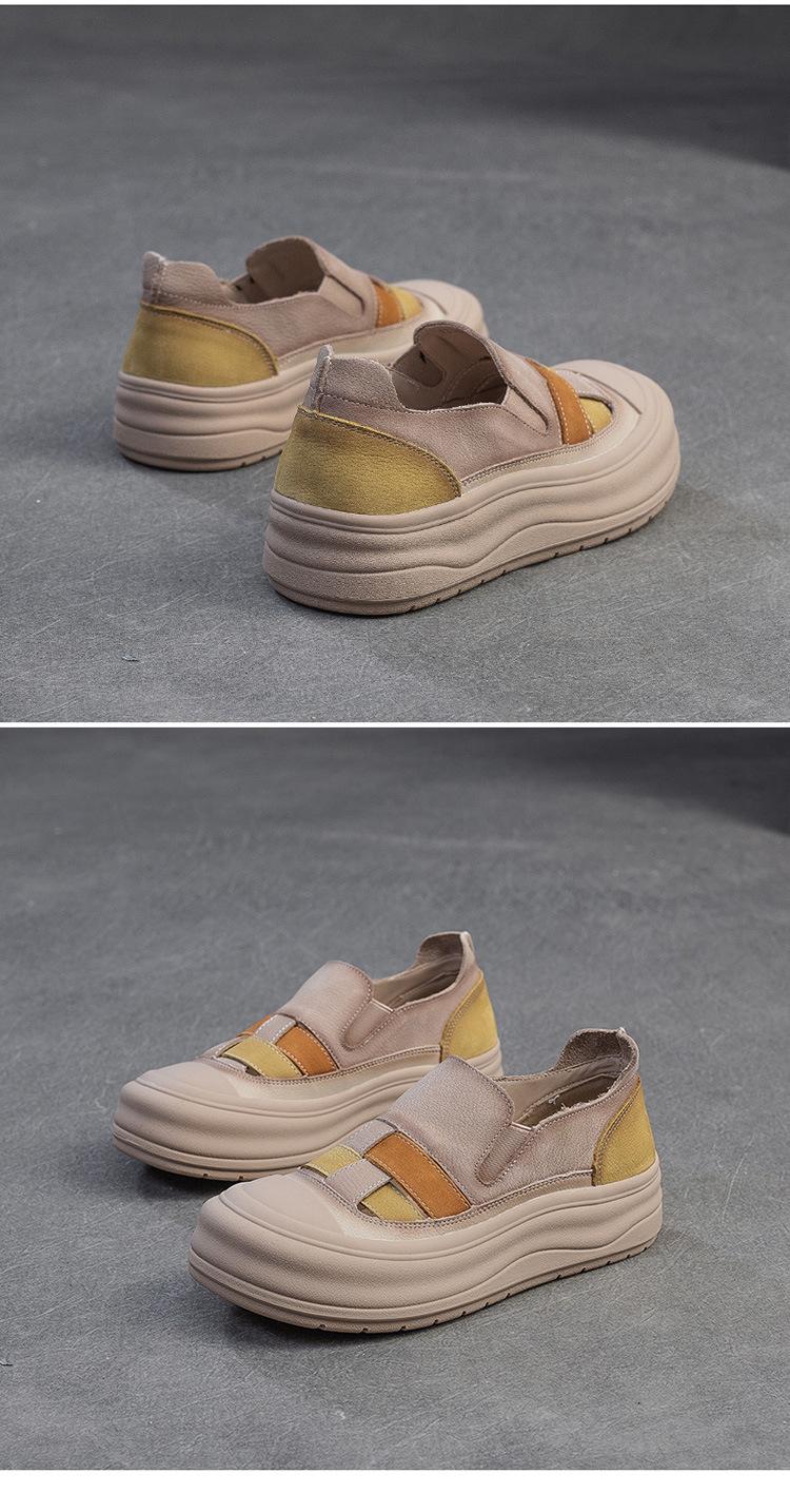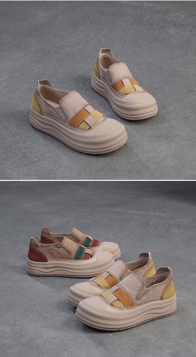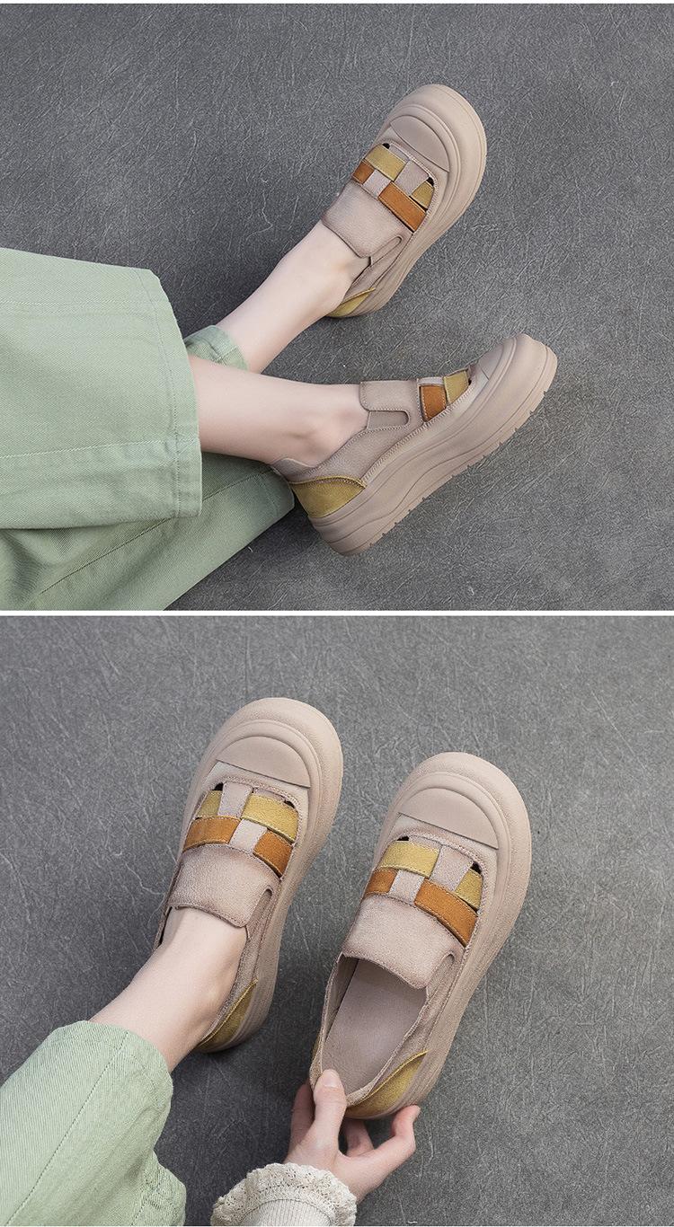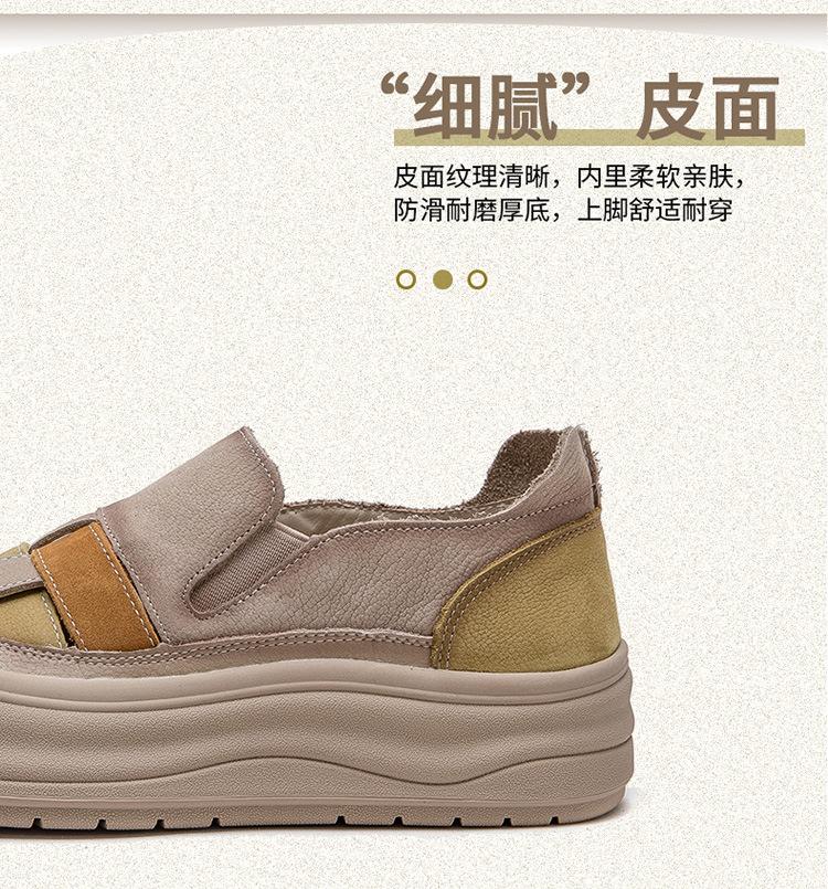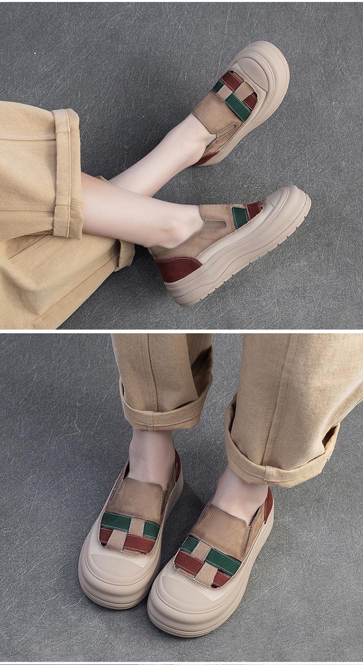 Jie Zhou Otoño 2025 Nuevo Commute Plataforma Escote Bajo Bloque de Color Estilo Étnico Zapatos Individuales de Mujer Slip-On Lazy Ligeros