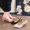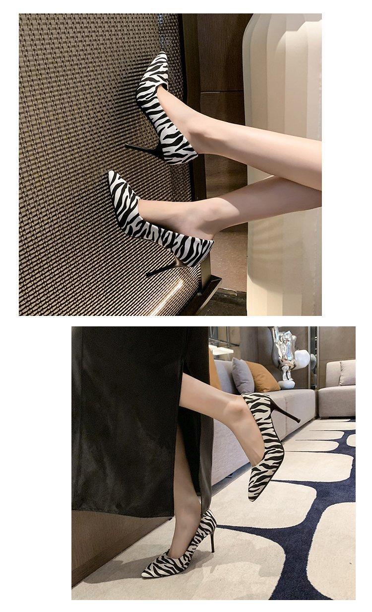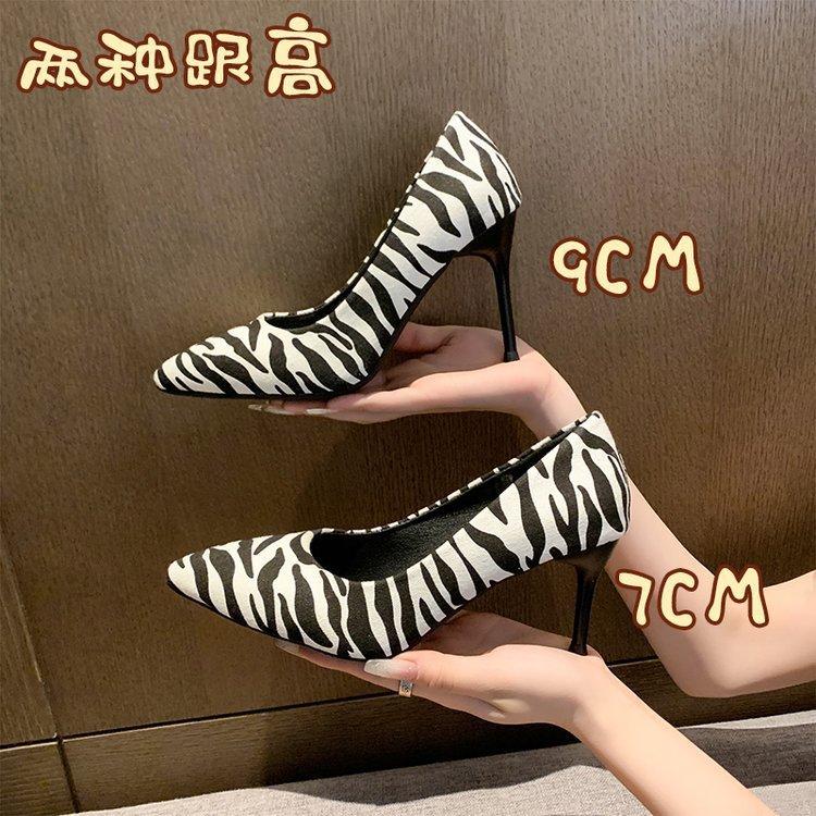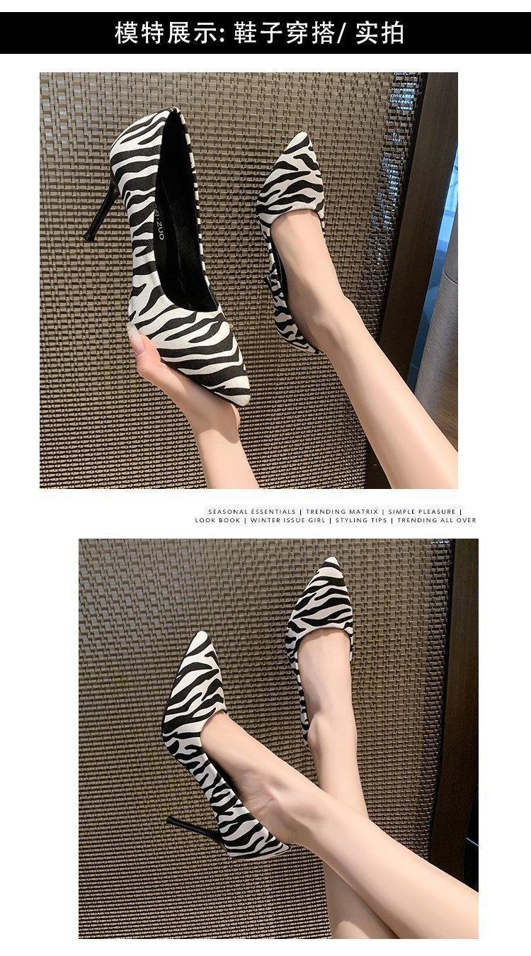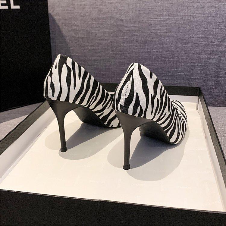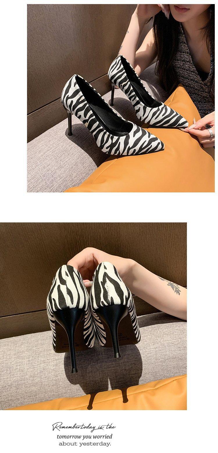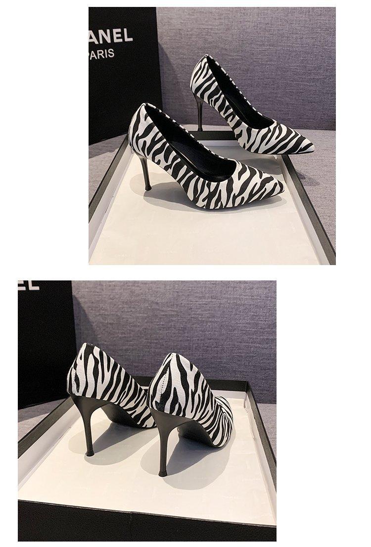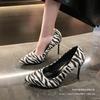 Zapatos de tacón alto transfronterizos para mujer, otoño 2024, nuevos zapatos de tacón de aguja puntiagudos a rayas, comercio exterior, talla grande 43, zapatos de moda para mujer
