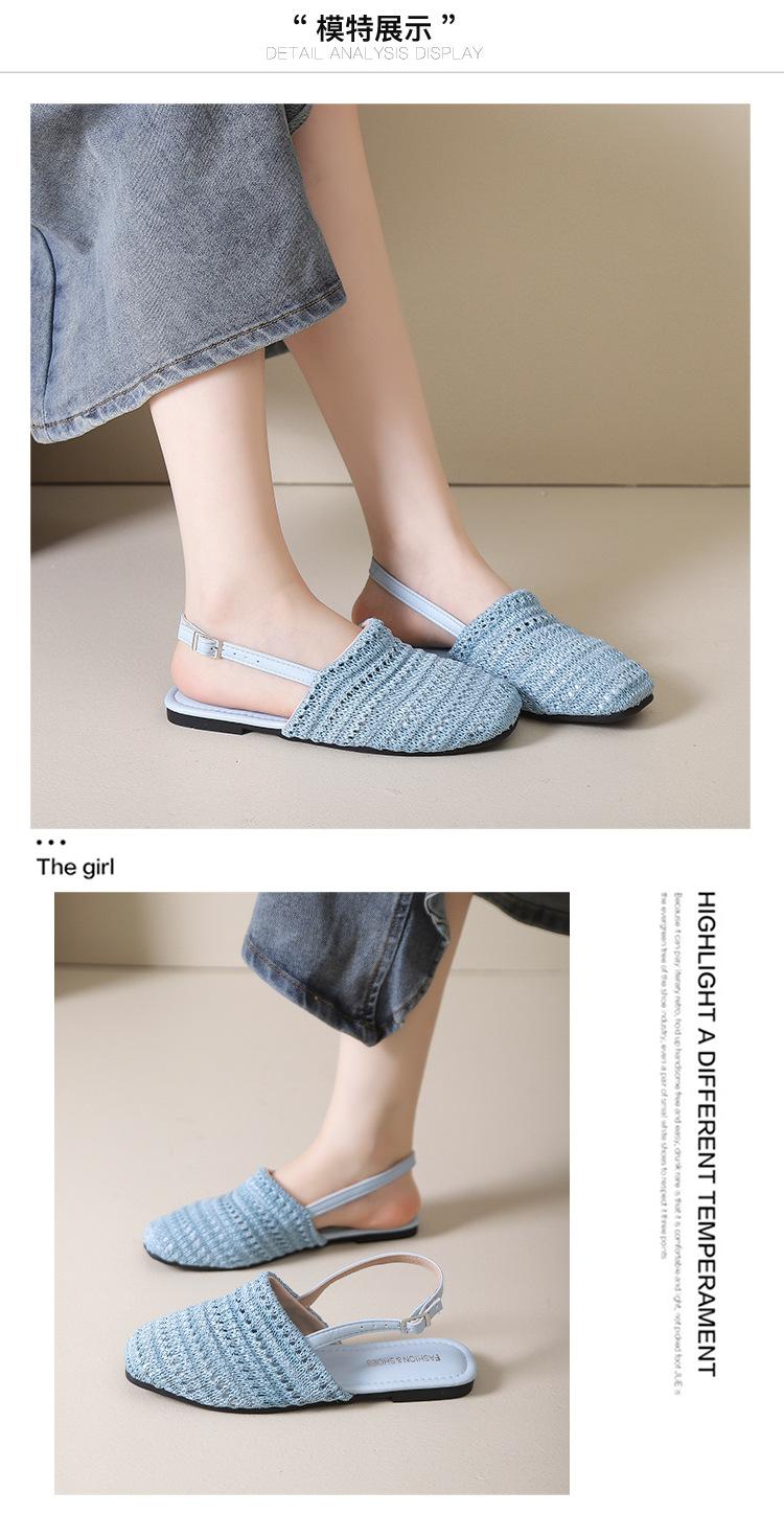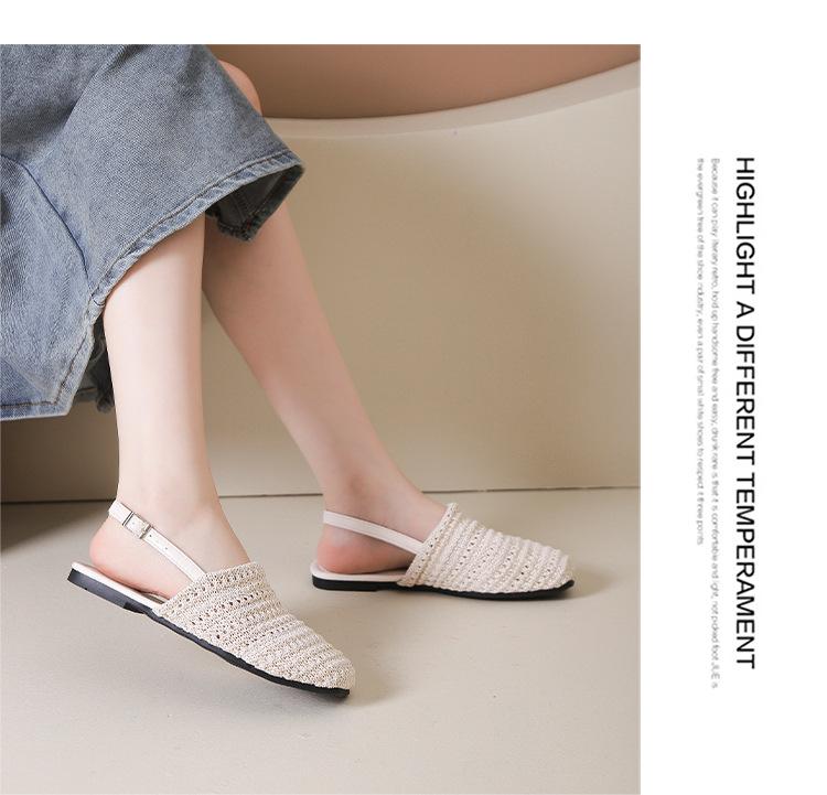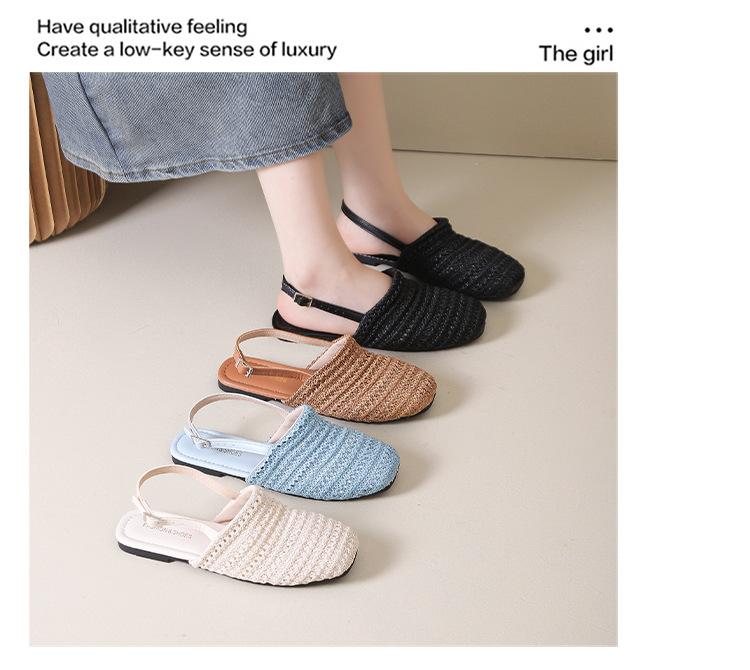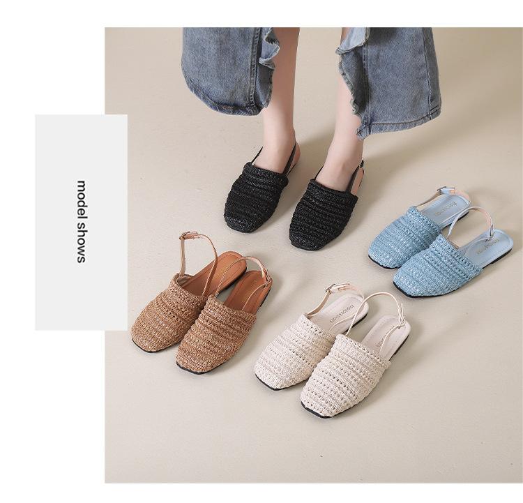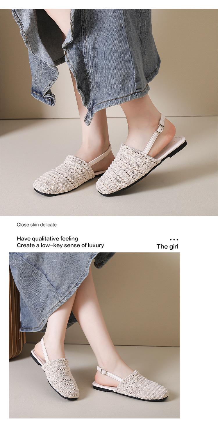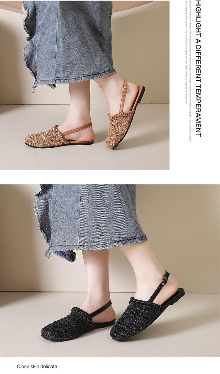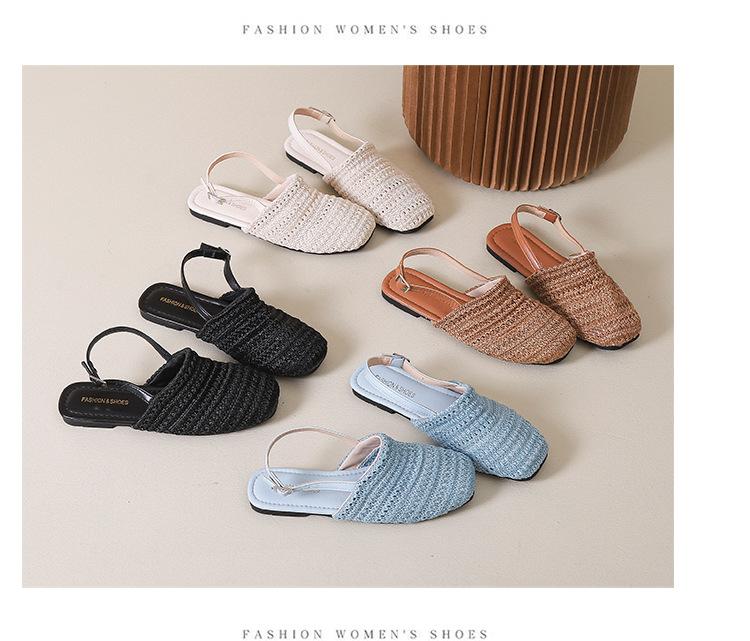 Zapatillas Mule de Lino Tejido Transpirable sin Espalda Estilo Bohemio Mujer 2025 Nuevas Sandalias Planas para Exterior