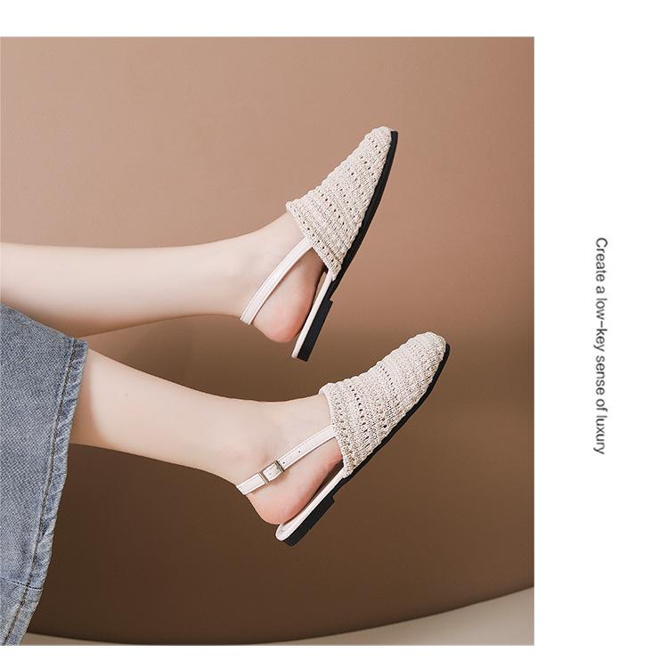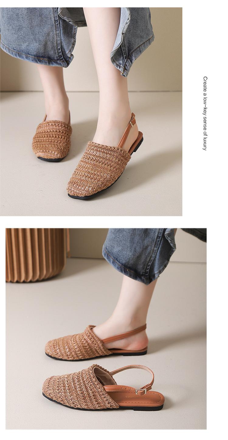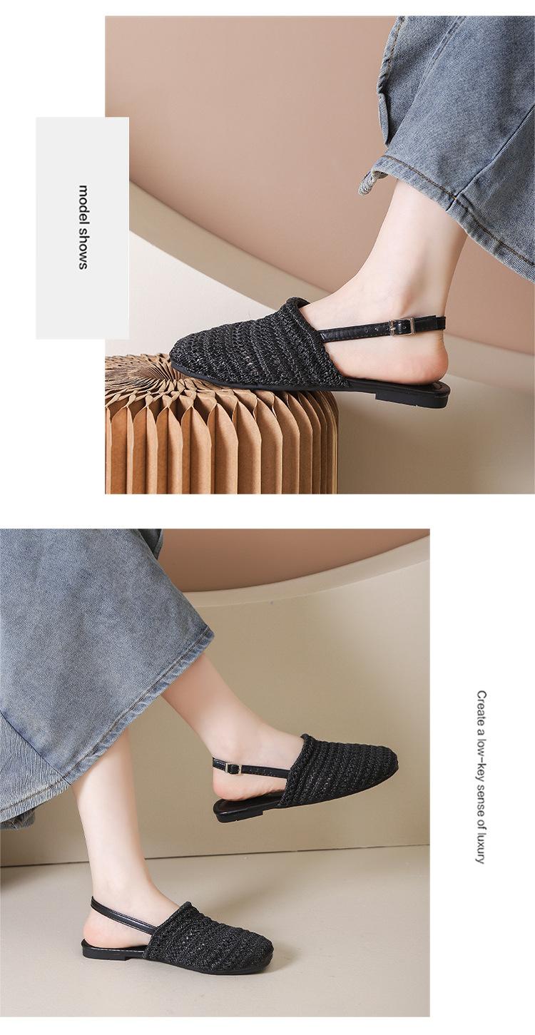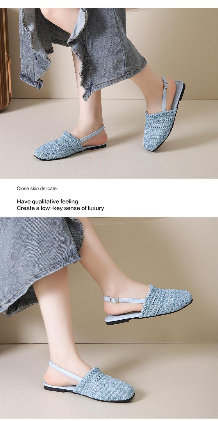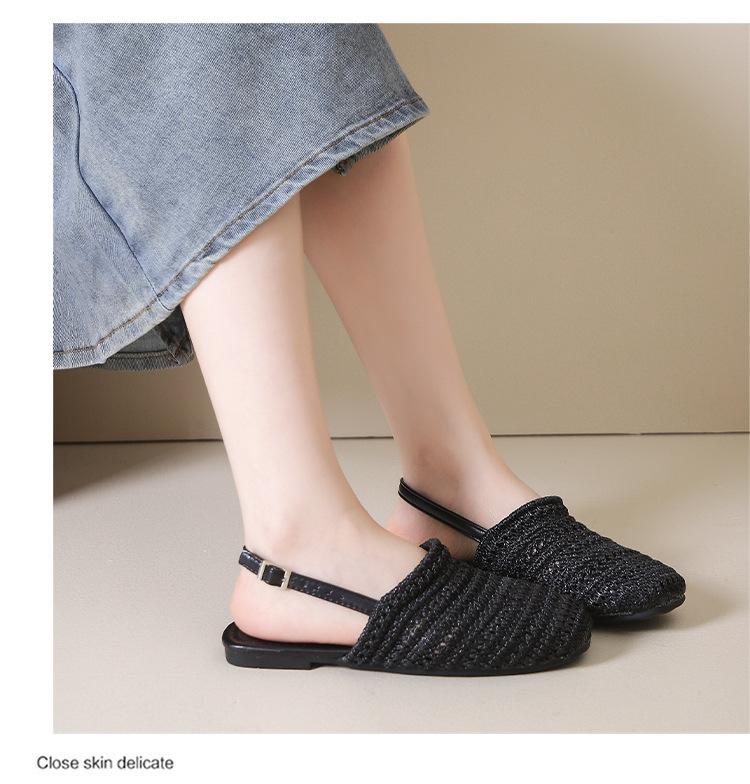 Zapatillas Mule de Lino Tejido Transpirable sin Espalda Estilo Bohemio Mujer 2025 Nuevas Sandalias Planas para Exterior