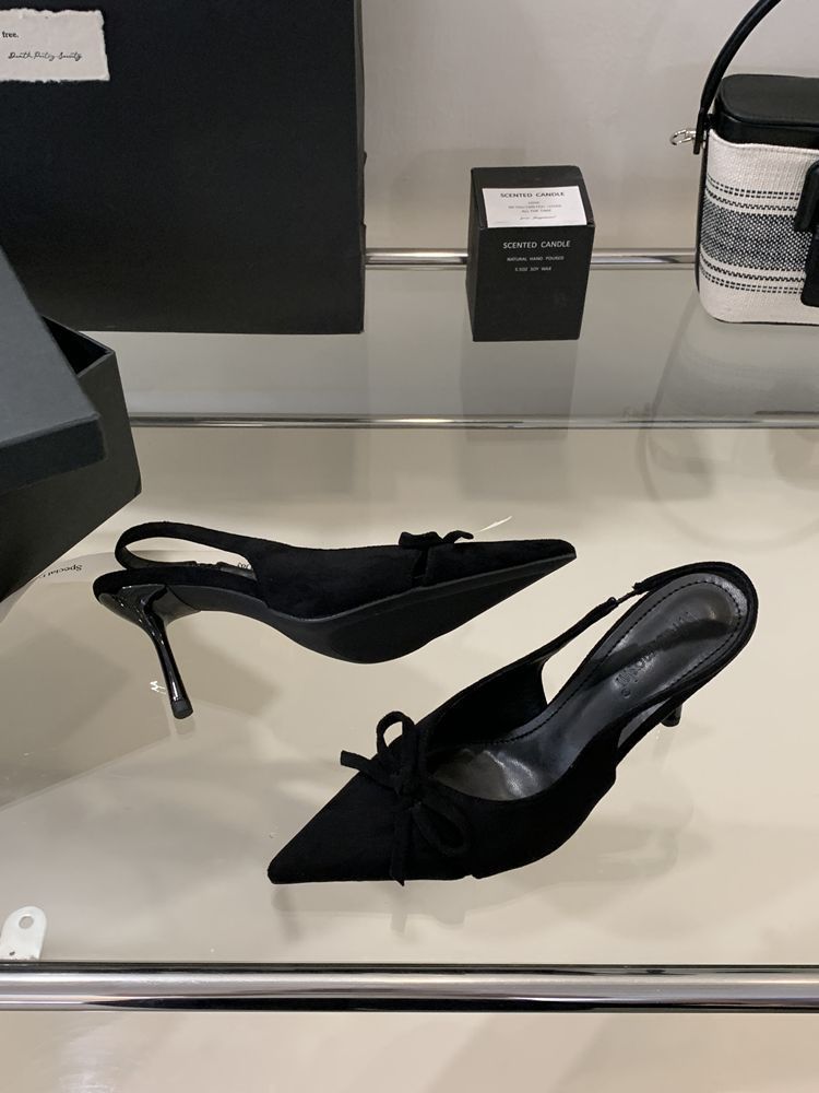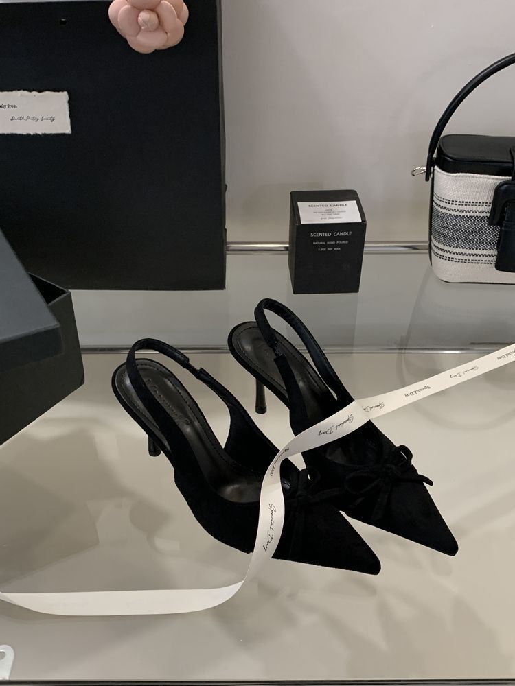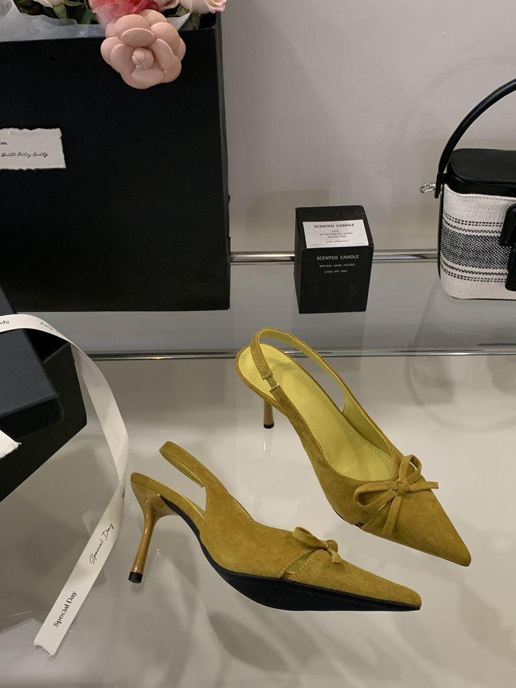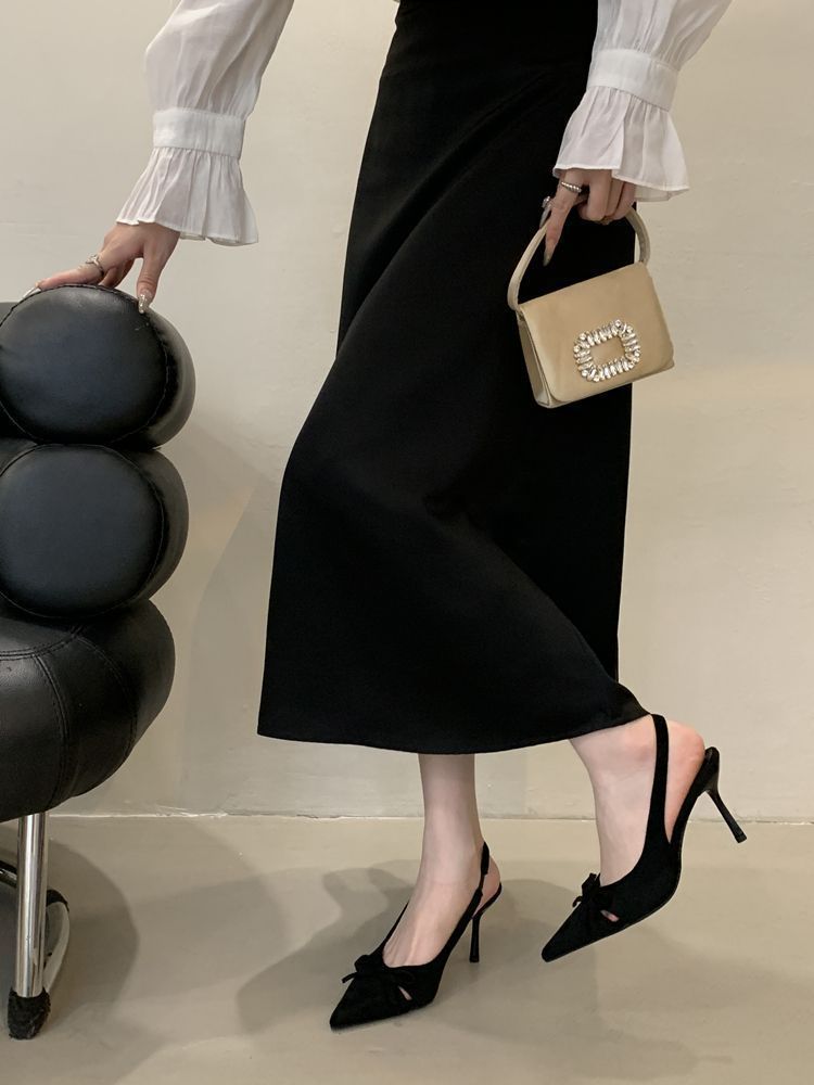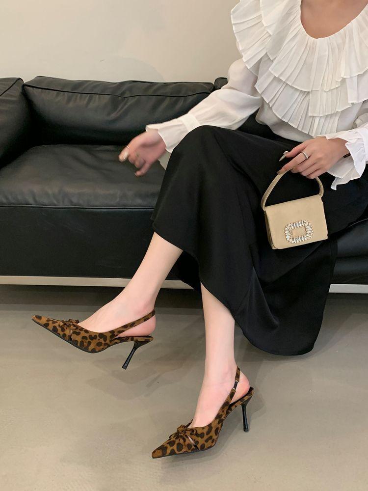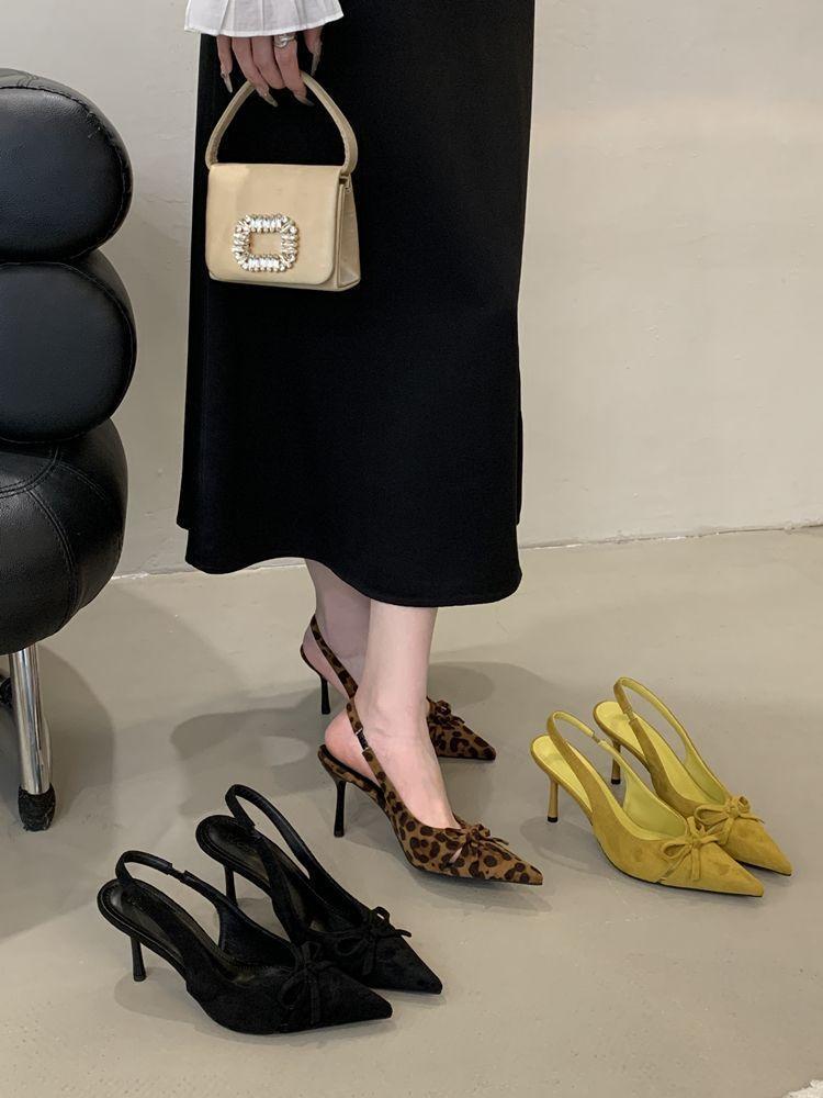 Primavera/Verano 2025 Nuevos Tacones Altos Nicho Estilo Hada Sandalias de Punta Cerrada para Mujer Tacón de Aguja de Punta Zapatos Individuales con Lazo para Mujer