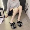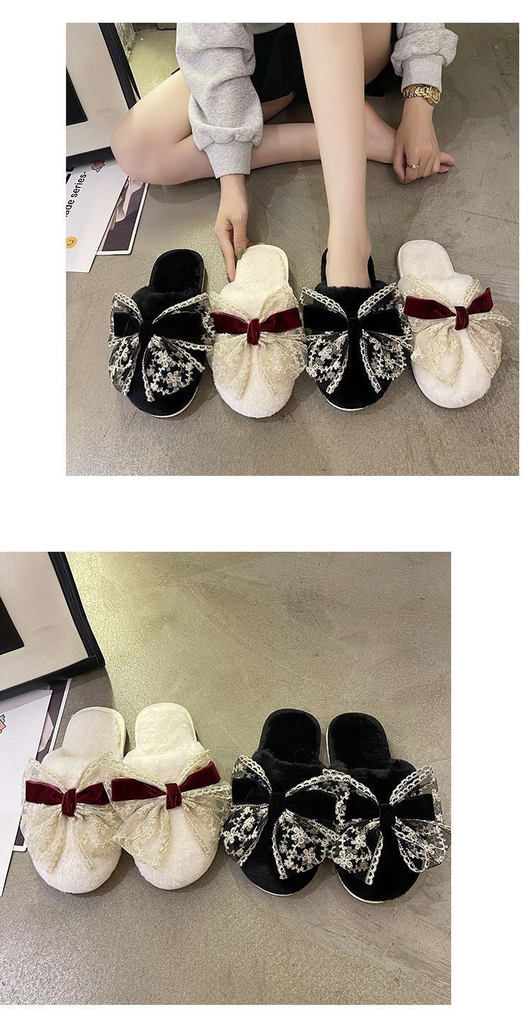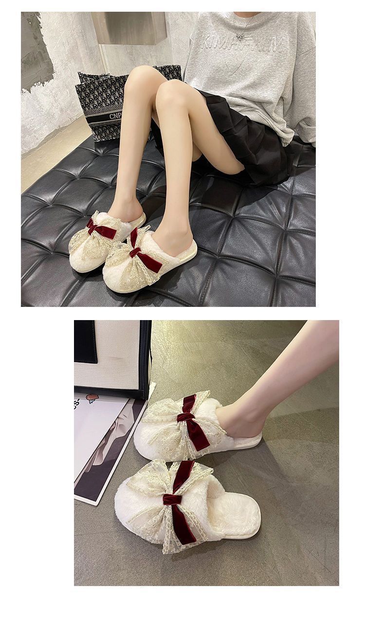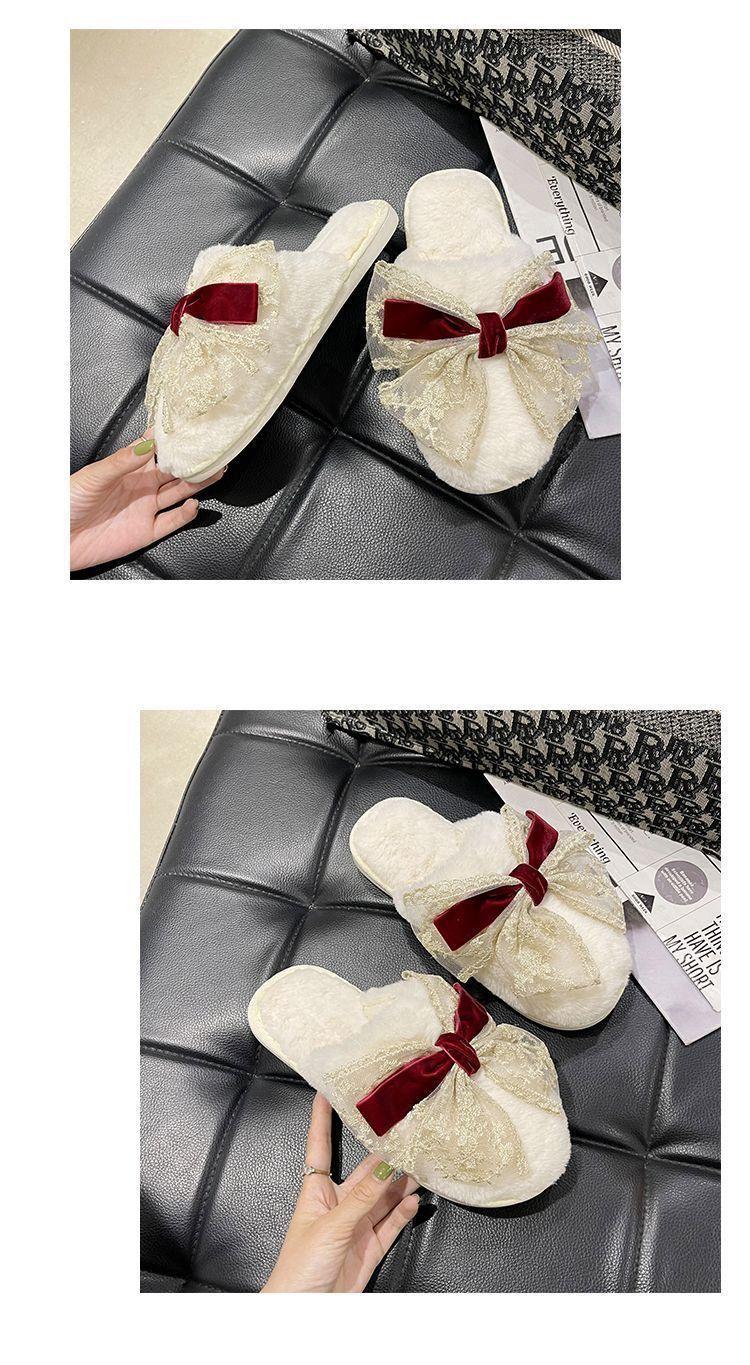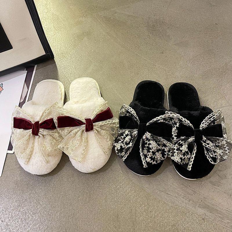 Pantuflas de Algodón Cálidas Envolventes para Casa Antideslizantes para Estudiantes Invierno 2025 Nuevo Estilo Princesa Lazo Pantuflas de Algodón para Mujer