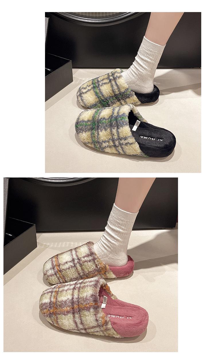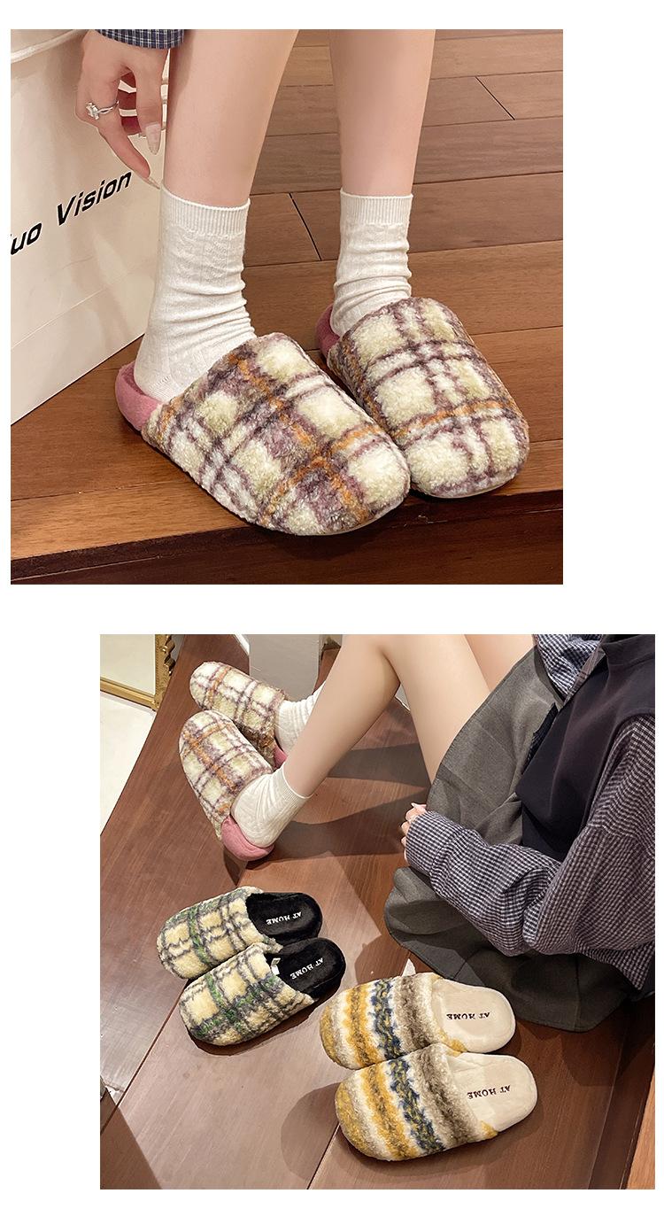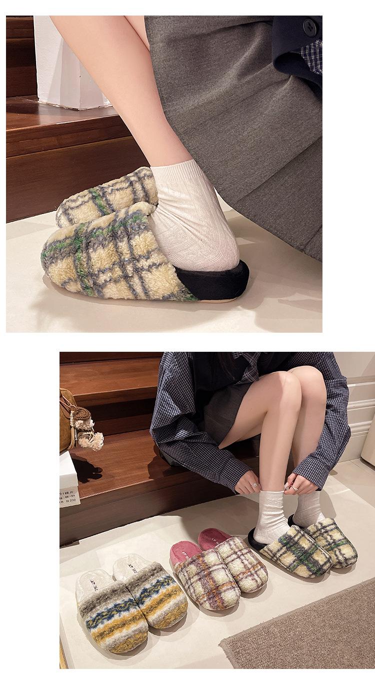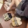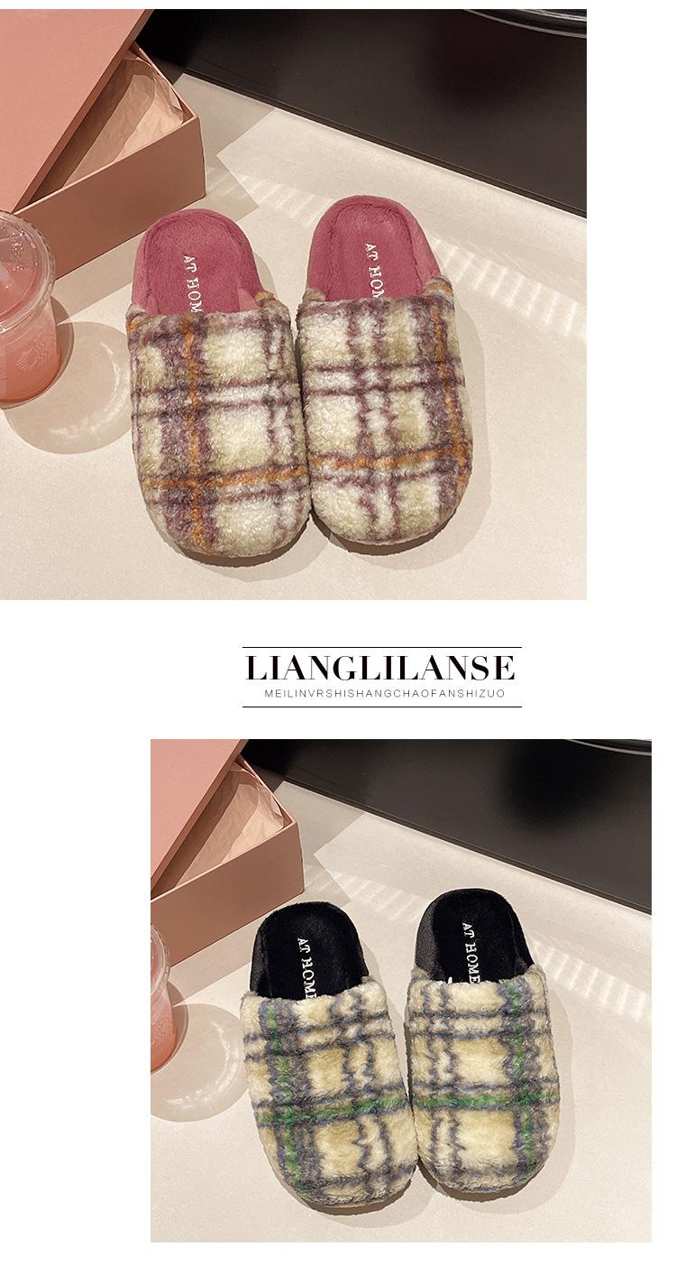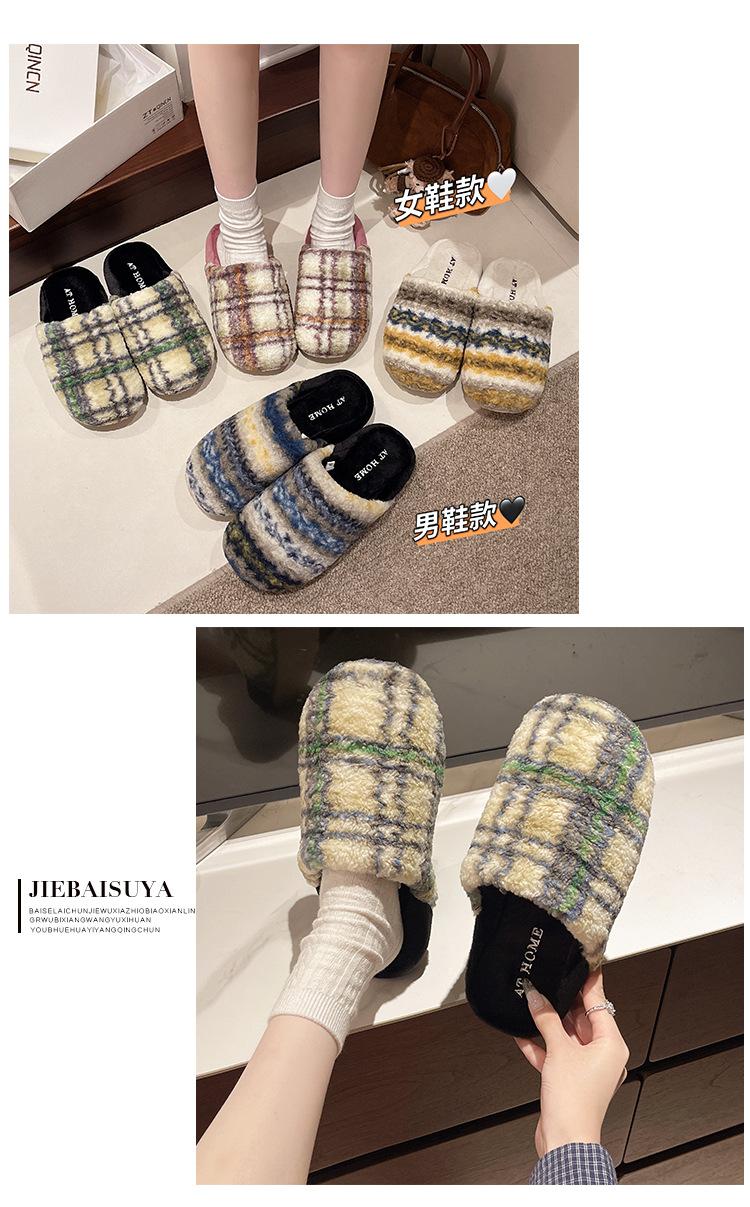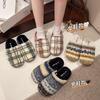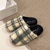 Pantuflas nuevas retro a cuadros peludas para interior del hogar a prueba de frío cálidas de algodón pantuflas antideslizantes de suela suave para pareja zapatos de algodón de punta cerrada