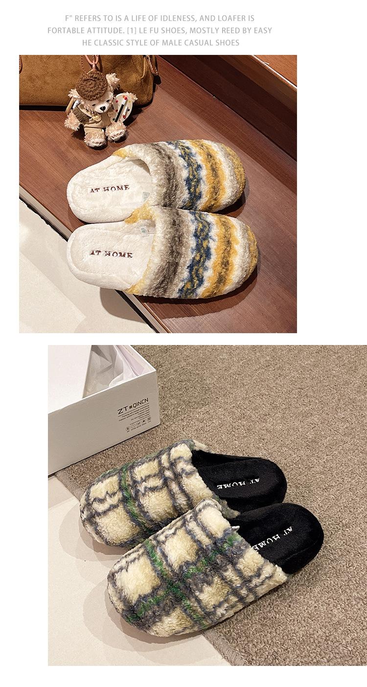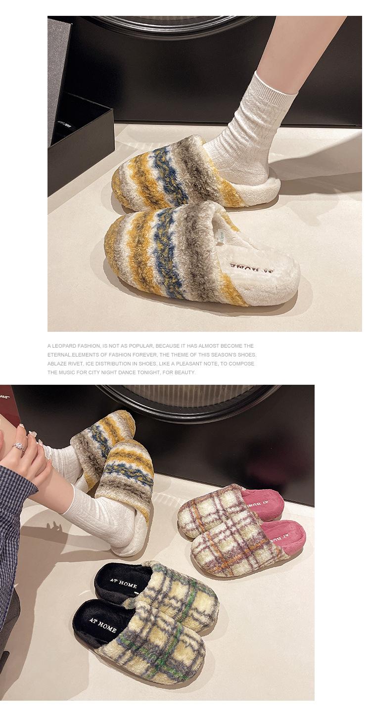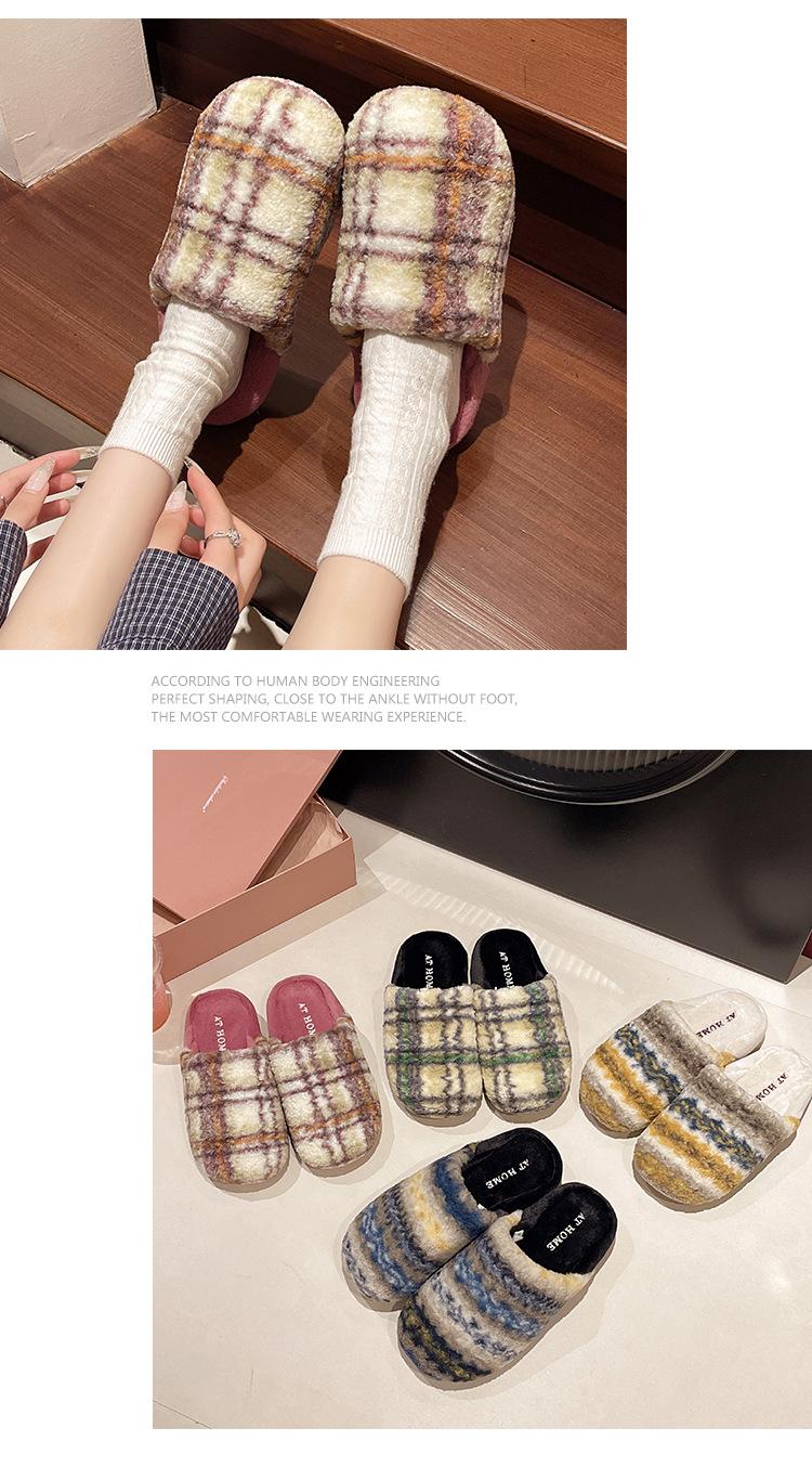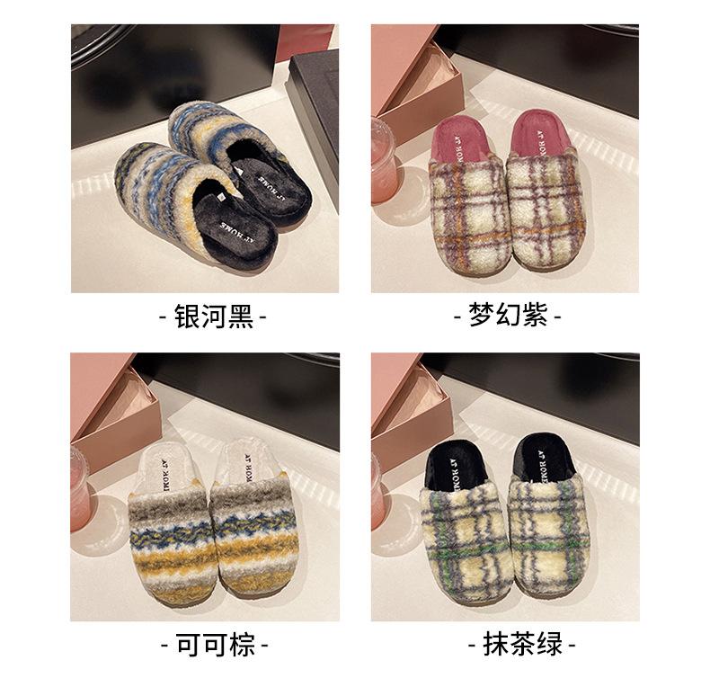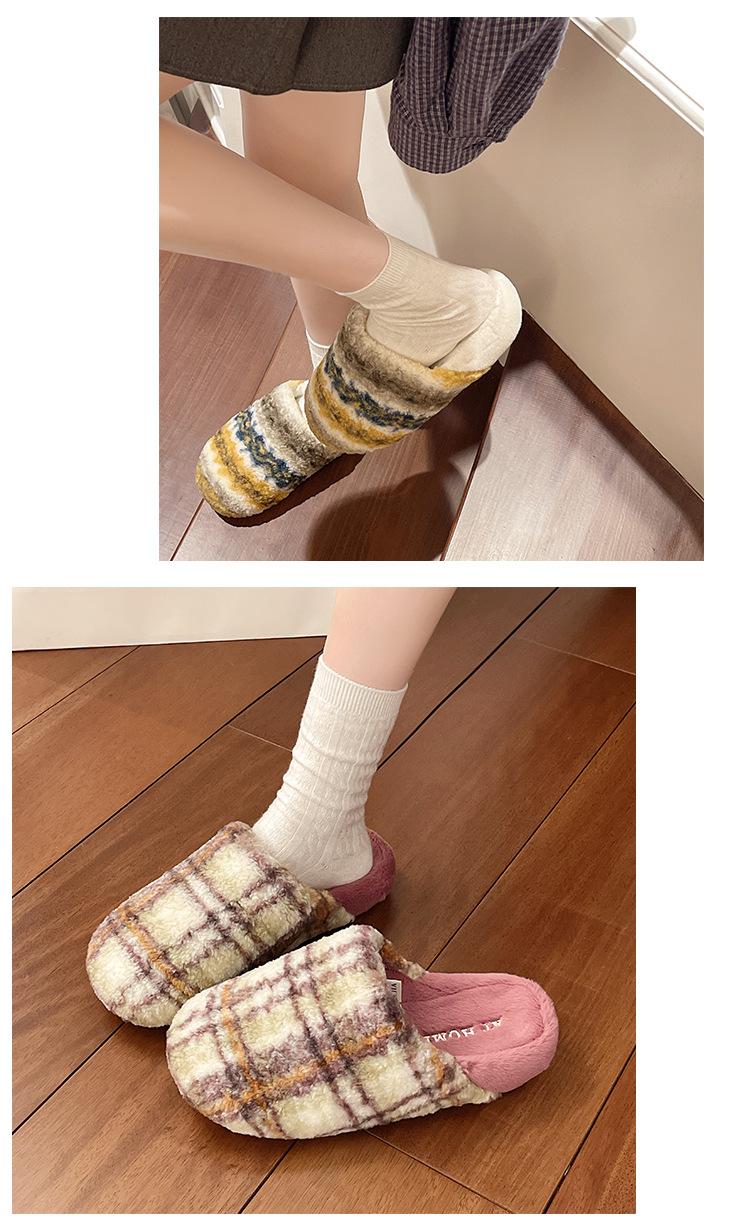 Pantuflas nuevas retro a cuadros peludas para interior del hogar a prueba de frío cálidas de algodón pantuflas antideslizantes de suela suave para pareja zapatos de algodón de punta cerrada