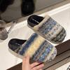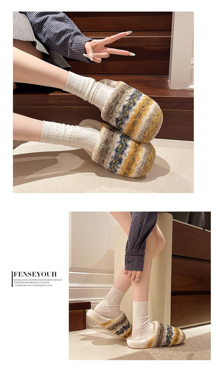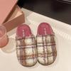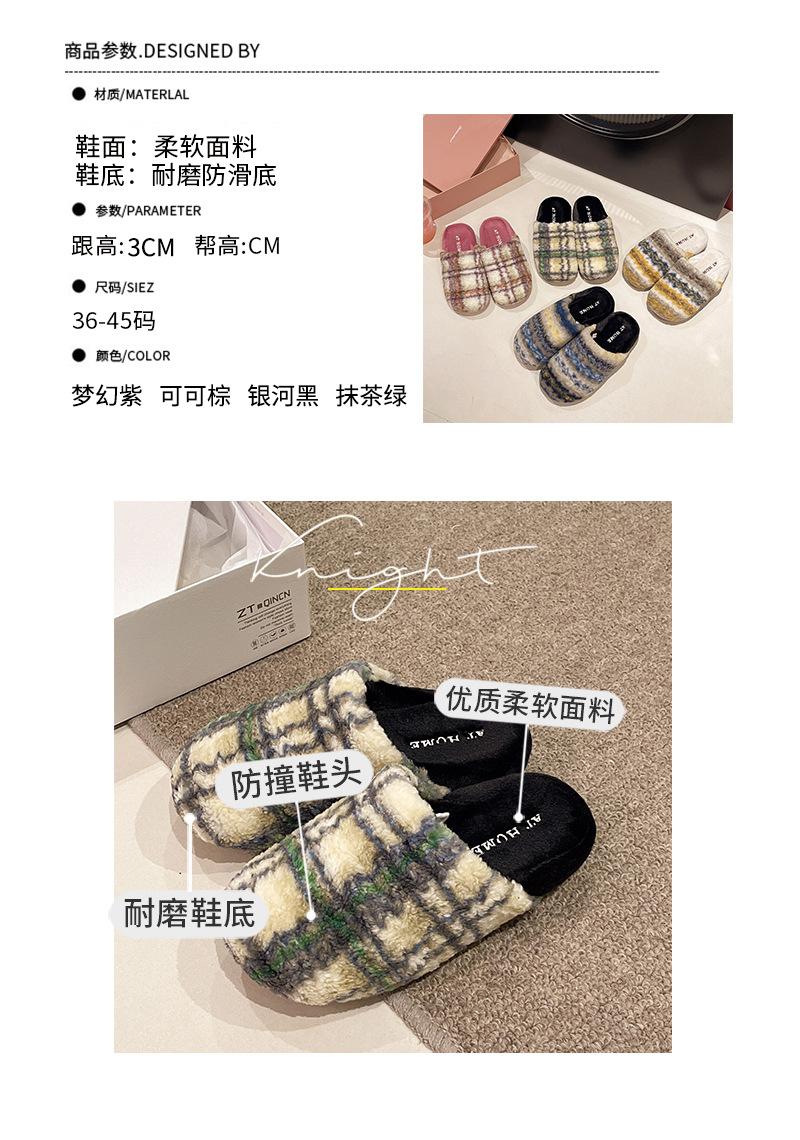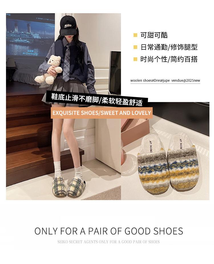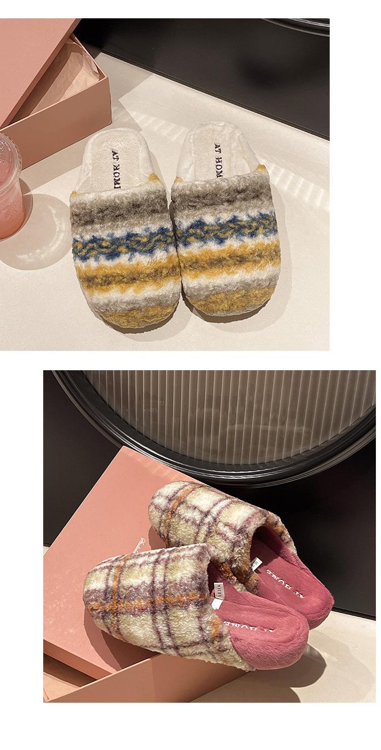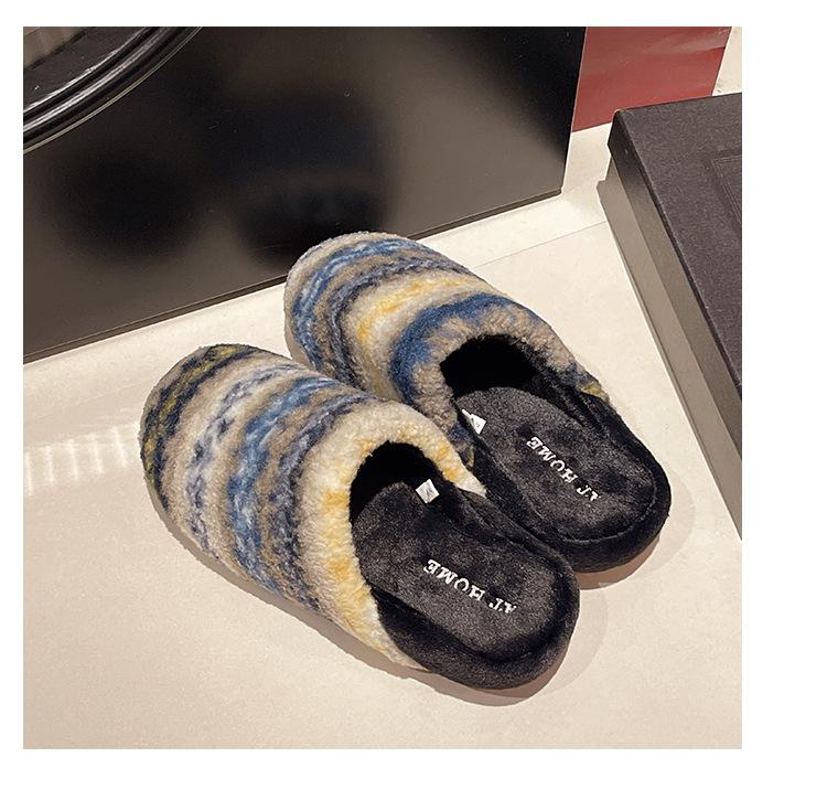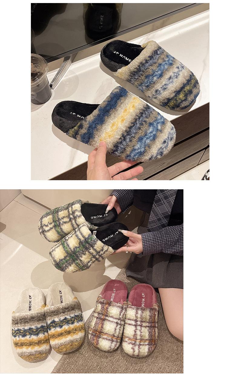 Pantuflas nuevas retro a cuadros peludas para interior del hogar a prueba de frío cálidas de algodón pantuflas antideslizantes de suela suave para pareja zapatos de algodón de punta cerrada