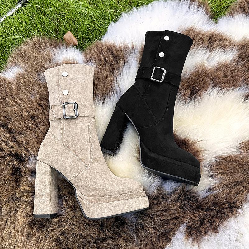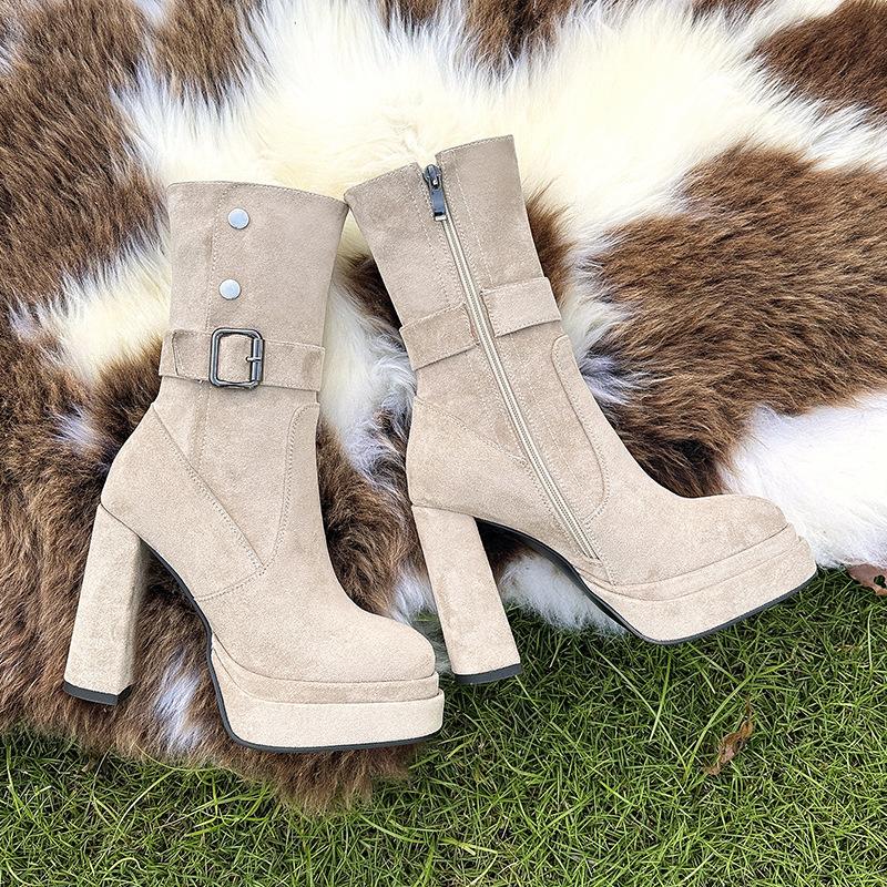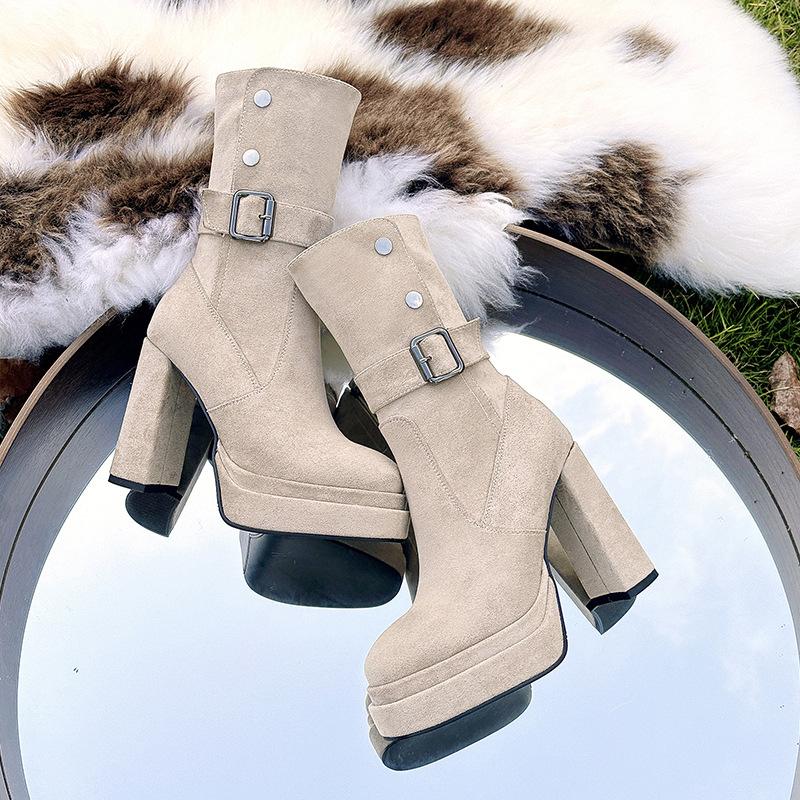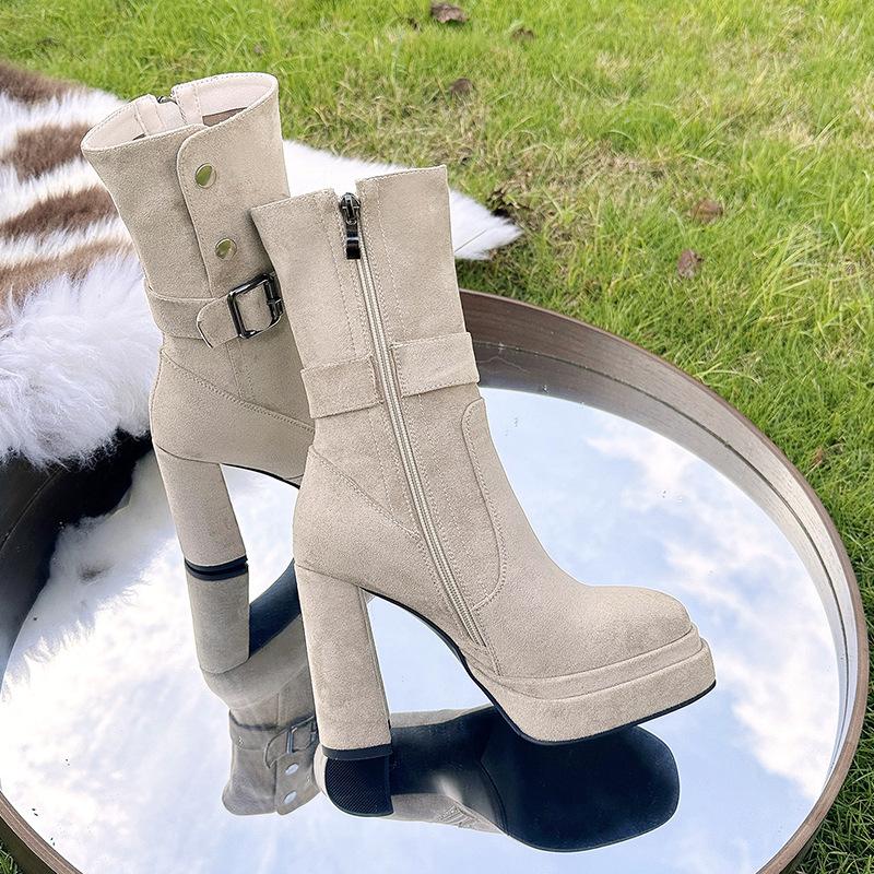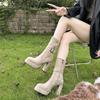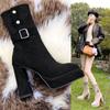 Botas Occidentales de Plataforma de Tacón Grueso Retro Mate Adelgazantes de Suela Gruesa y Tacón Alto para Mujer Otoño/Invierno 2025 Nuevas Botas Martin