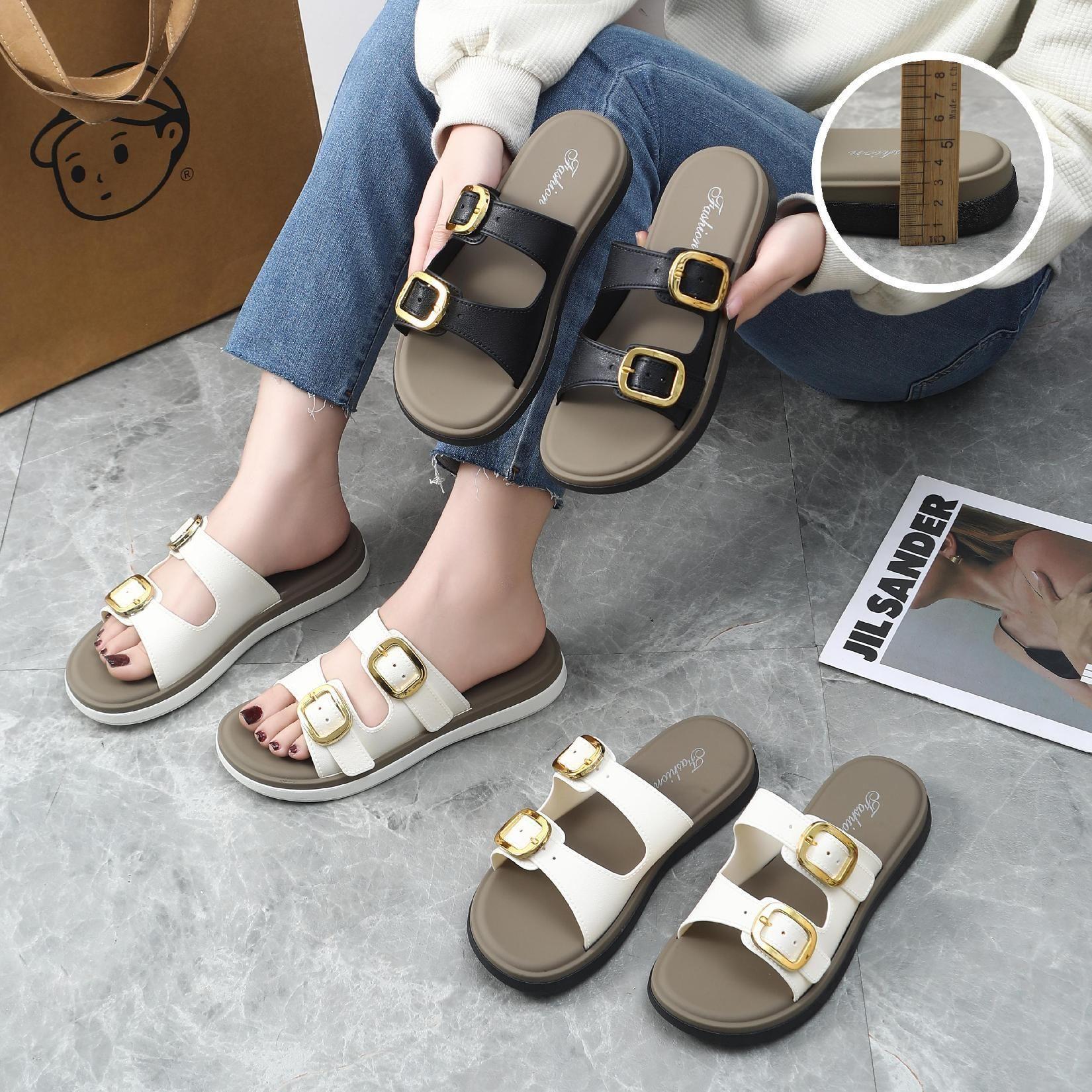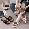 Zapatillas de playa de verano nuevas europeas y americanas para exteriores, para mujer, suela gruesa, que aumentan la altura, doble hebilla, comercio exterior, talla grande, zapatillas frescas para mujer