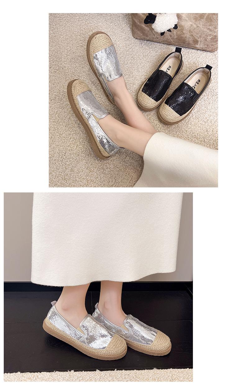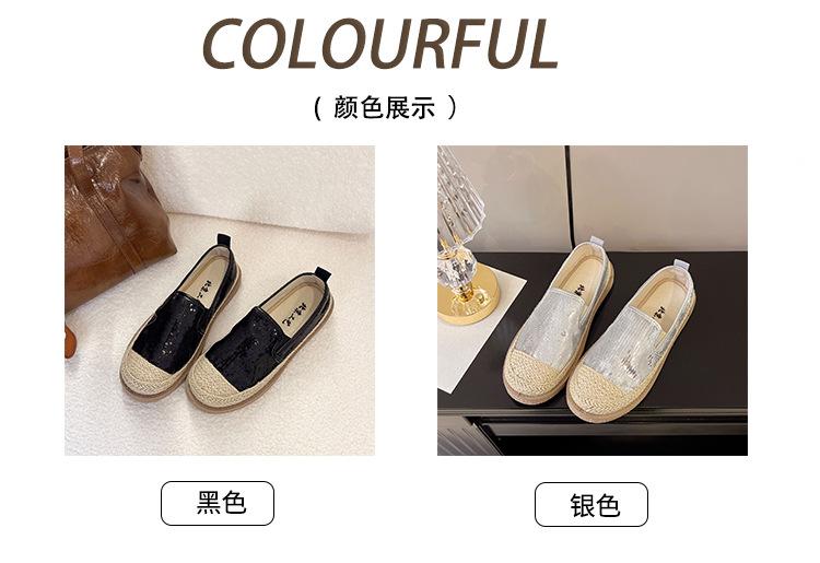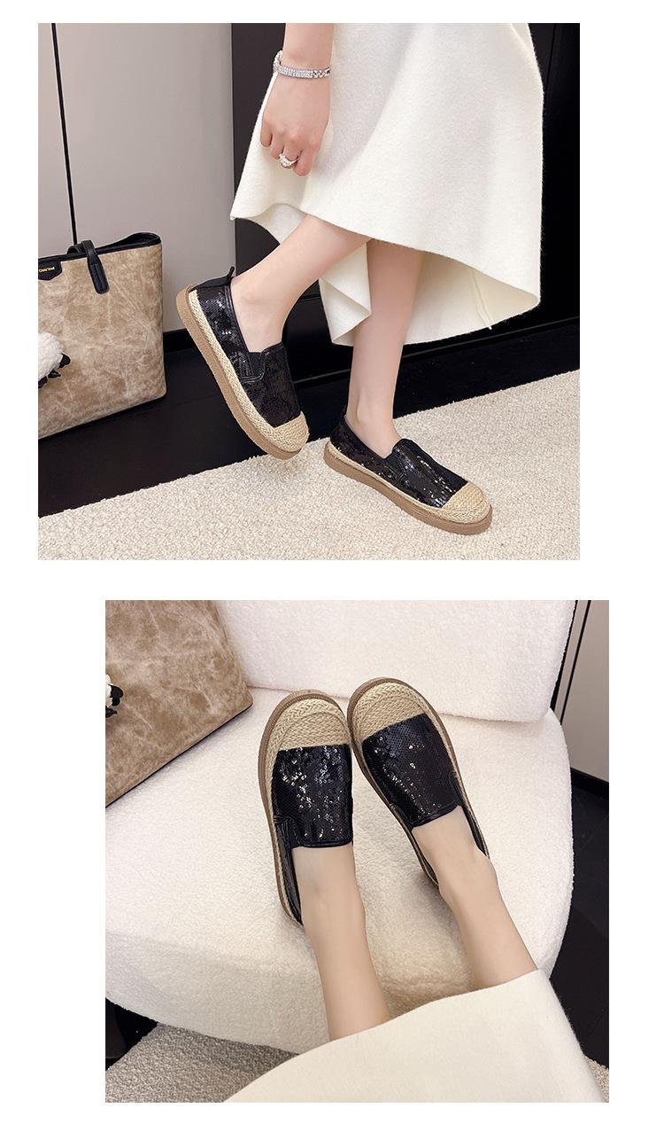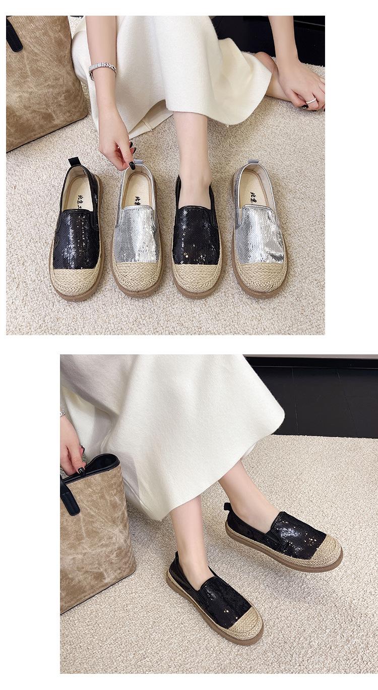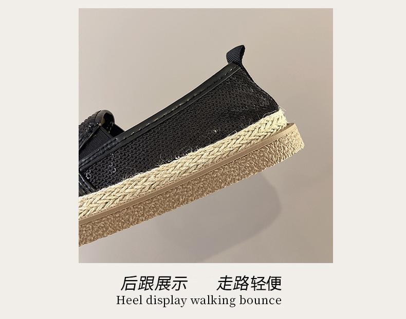 Personalizado nuevo un paso zapatos casuales de frijol para mujer versátil cómodo moda lentejuela tejido suela suave que aumenta la altura