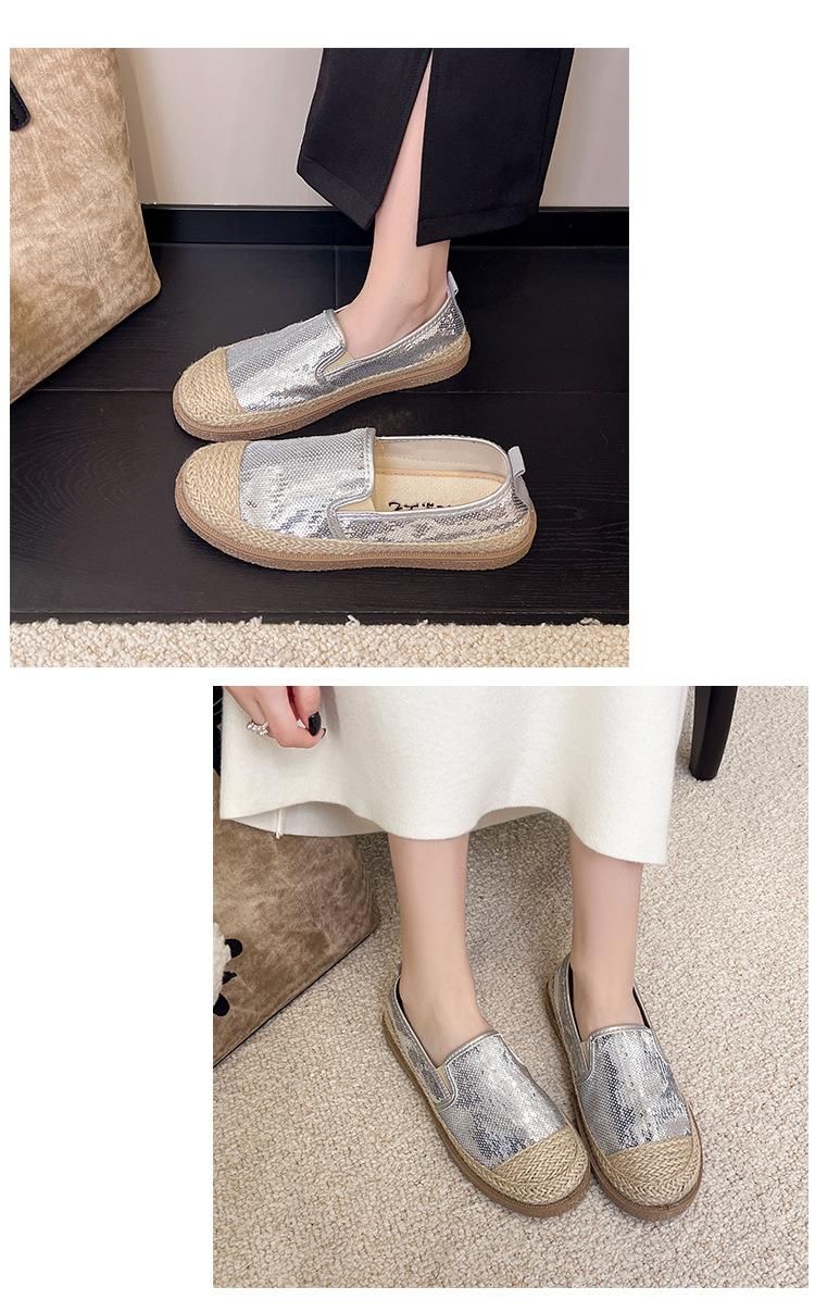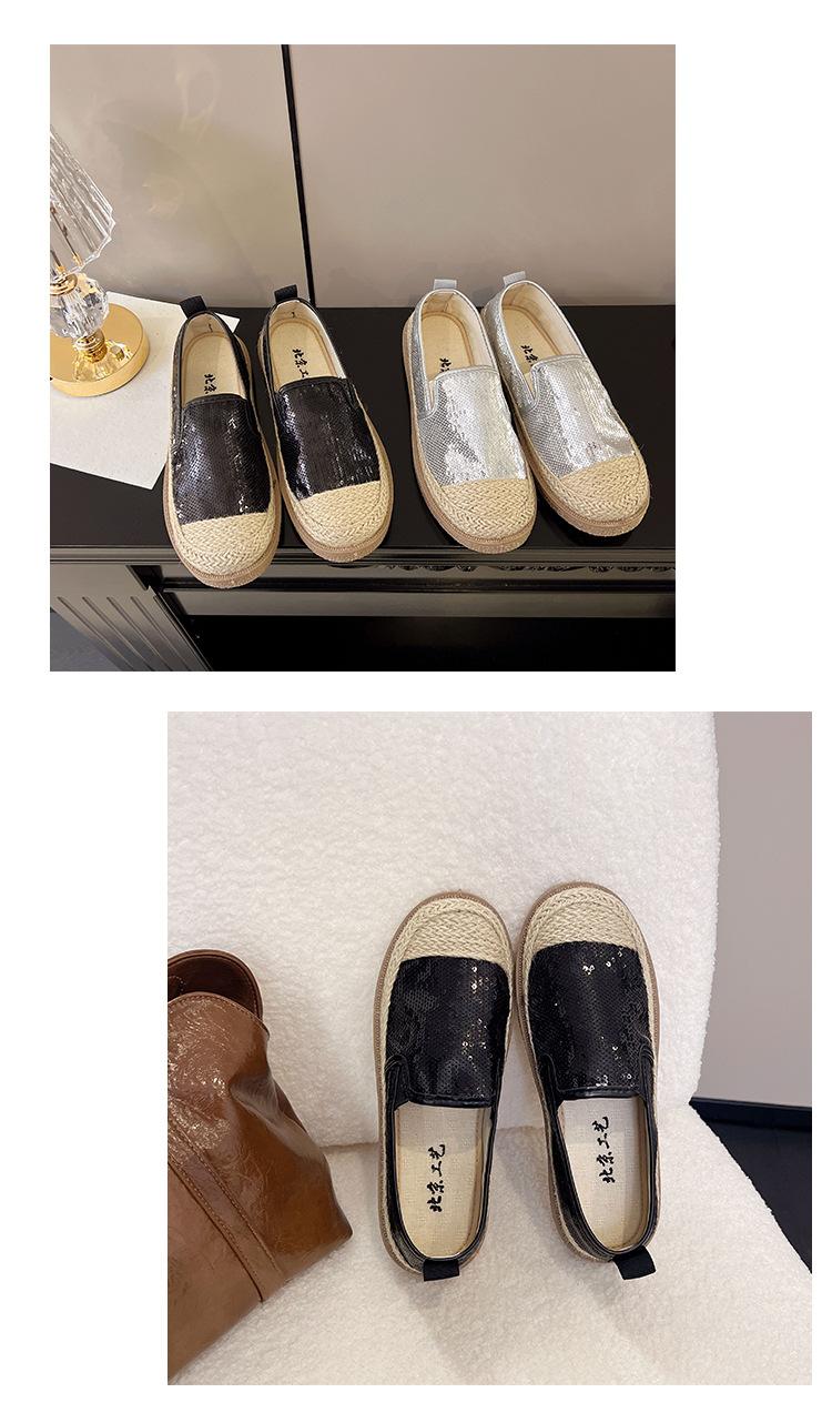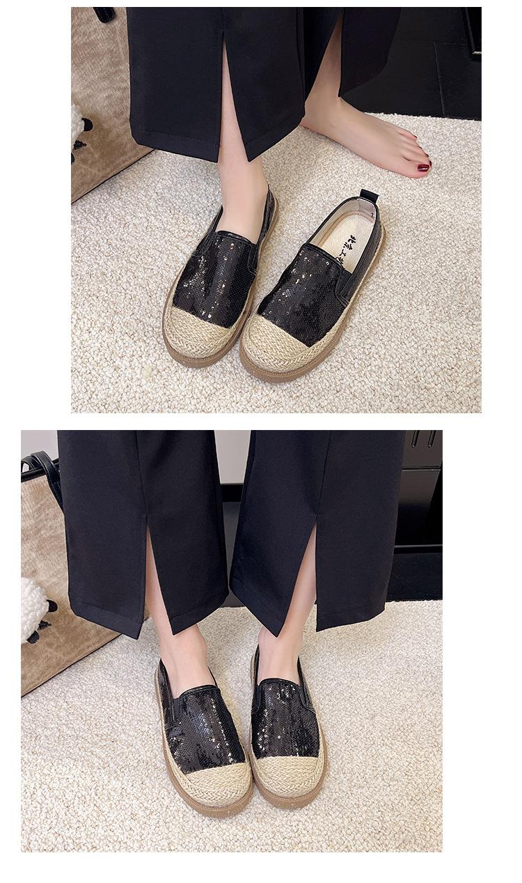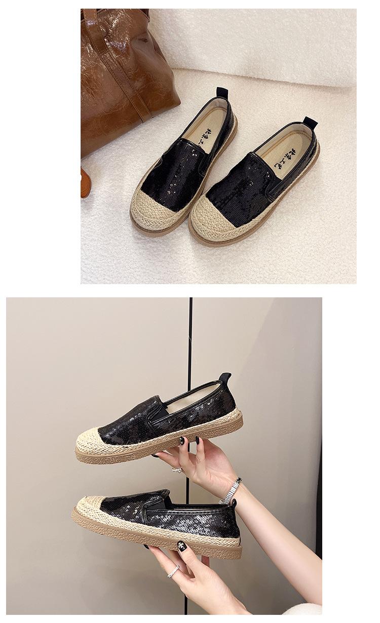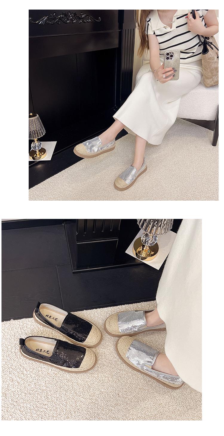 Personalizado nuevo un paso zapatos casuales de frijol para mujer versátil cómodo moda lentejuela tejido suela suave que aumenta la altura