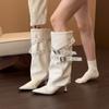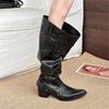 Botas de Tubo Alto para Chica Caliente para Mujer 2025 Nuevo Estilo Francés de Gama Alta Punta Afilada Tacón Grueso Botas de Caballero