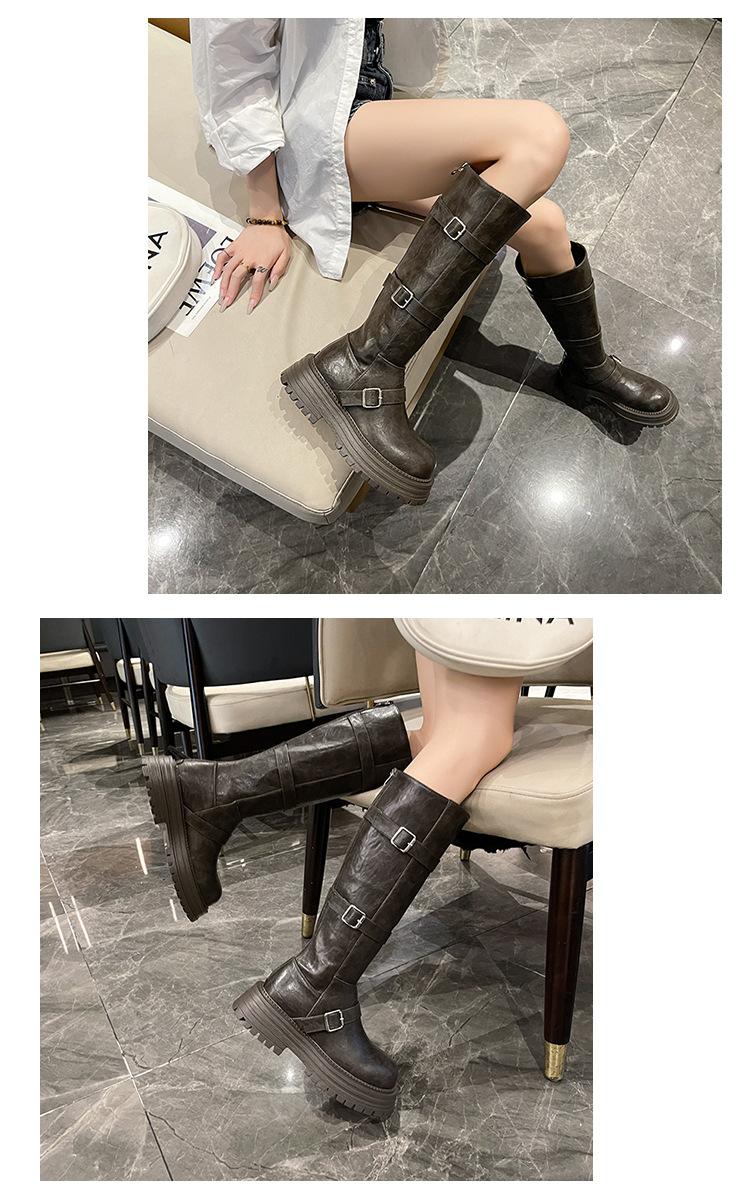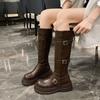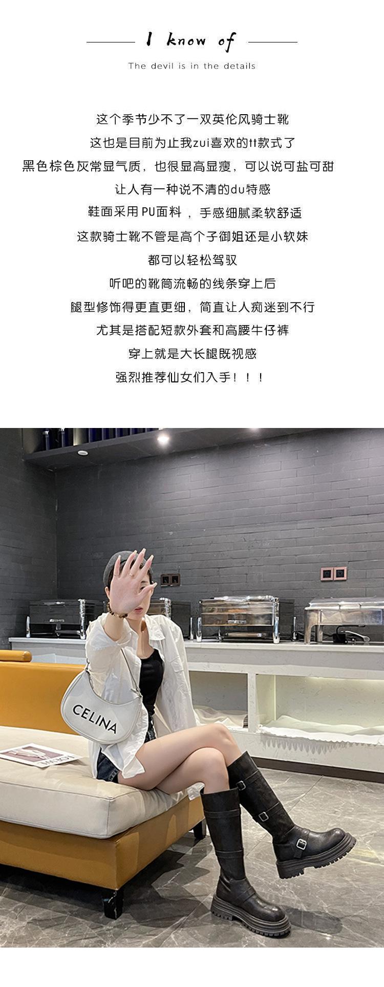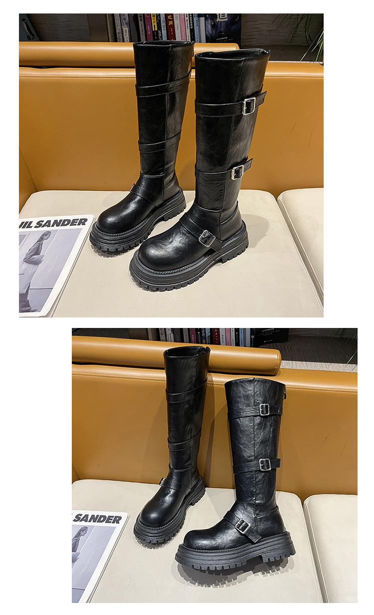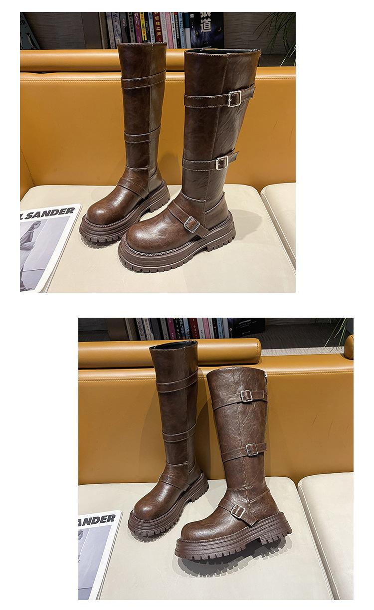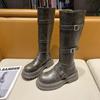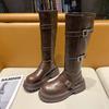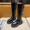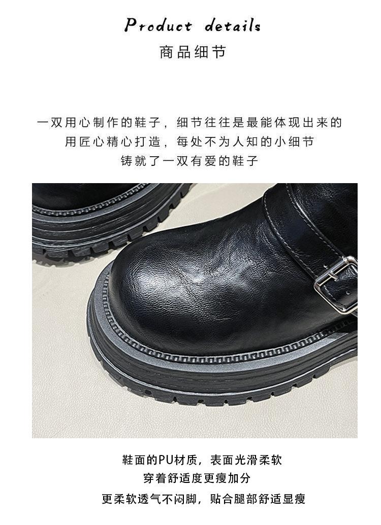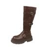 Botas Adelgazantes por Encima de la Rodilla Mujer 2025 Otoño e Invierno Nuevo Popular Hebilla Cuadrada Tacón Grueso Estilo Británico Botas de Media Caña Botas de Caballero Vintage