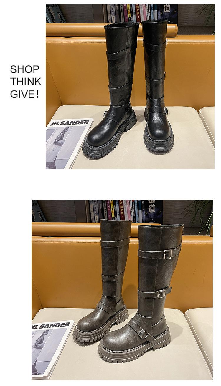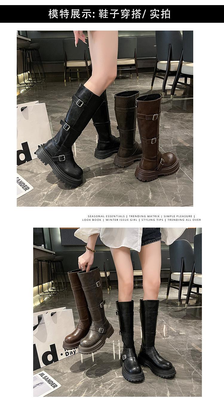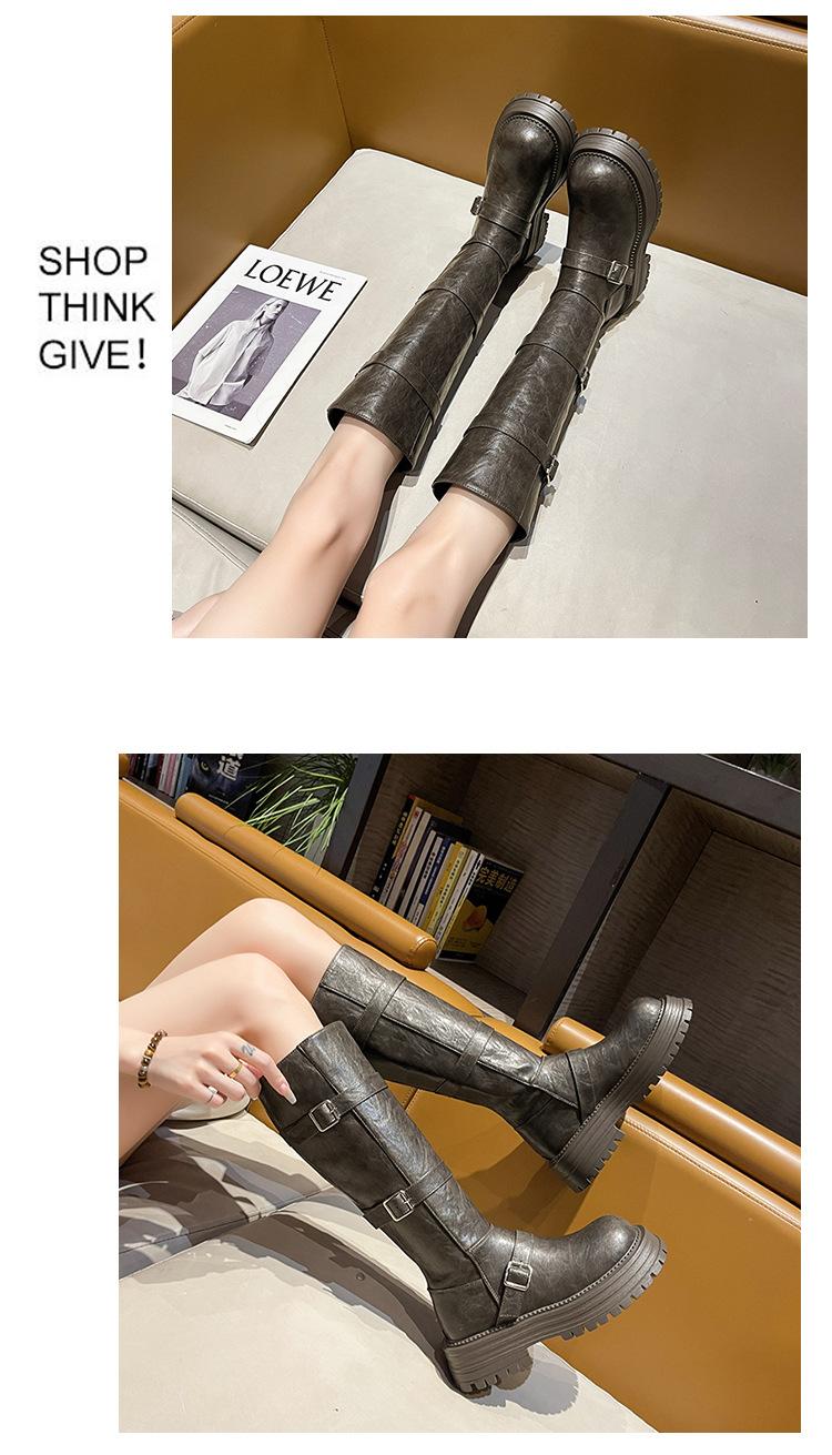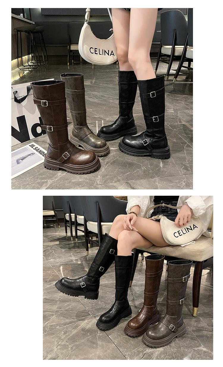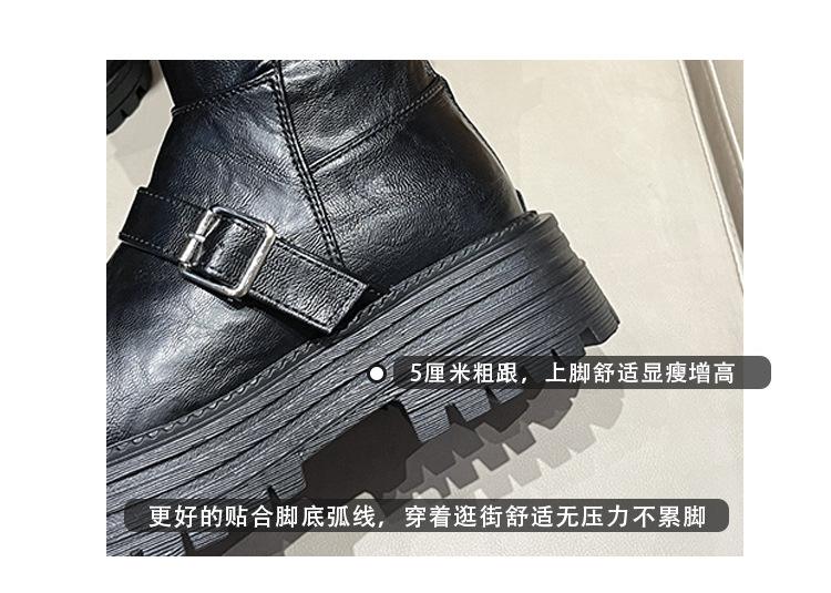 Botas Adelgazantes por Encima de la Rodilla Mujer 2025 Otoño e Invierno Nuevo Popular Hebilla Cuadrada Tacón Grueso Estilo Británico Botas de Media Caña Botas de Caballero Vintage