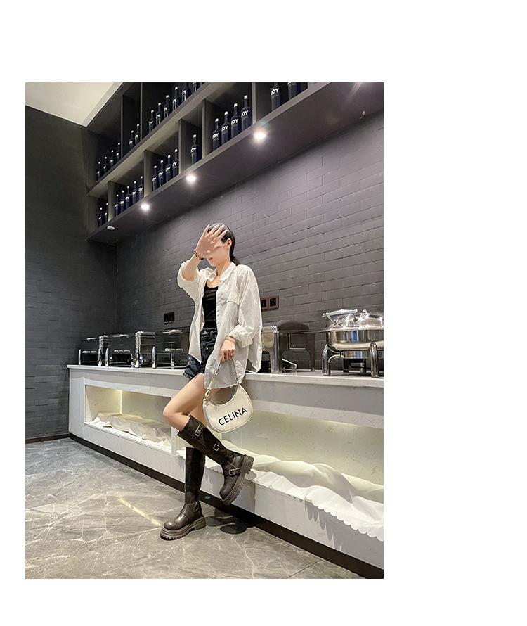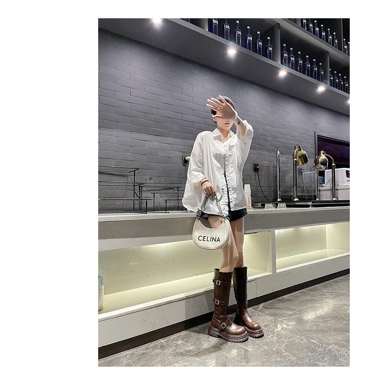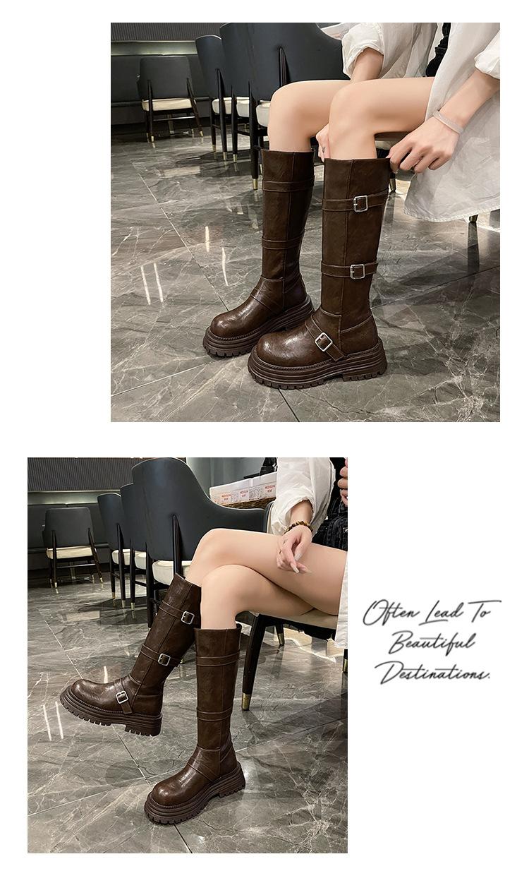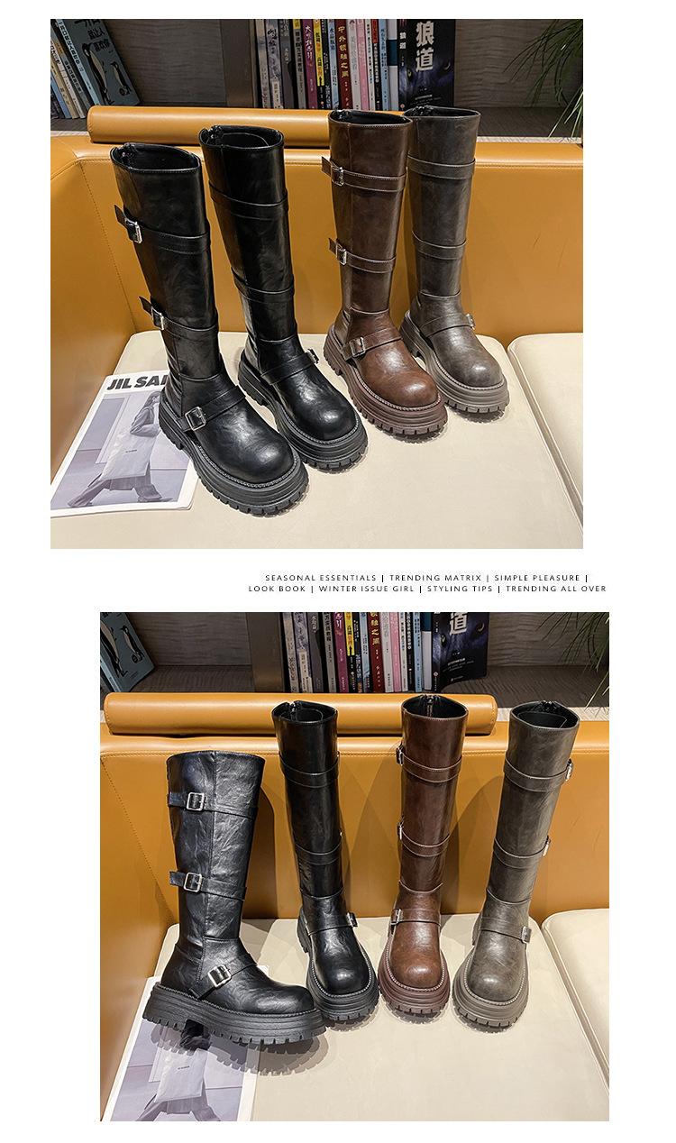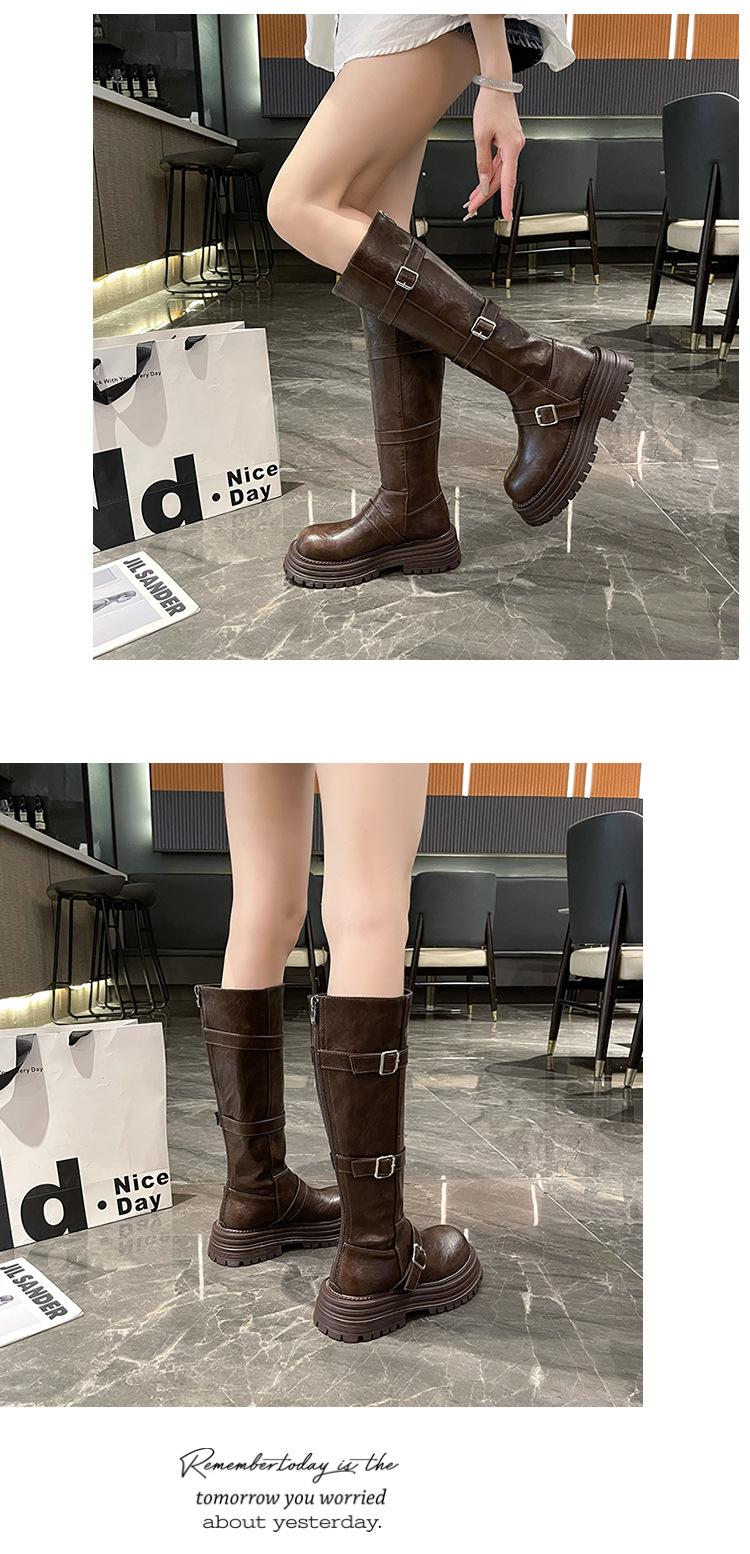 Botas Adelgazantes por Encima de la Rodilla Mujer 2025 Otoño e Invierno Nuevo Popular Hebilla Cuadrada Tacón Grueso Estilo Británico Botas de Media Caña Botas de Caballero Vintage