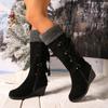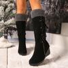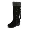 Comercio exterior transfronterizo otoño e invierno 2025 nuevas botas altas de cuña de gamuza con adorno de piel de talla grande de Amazon botas con flecos