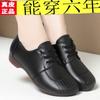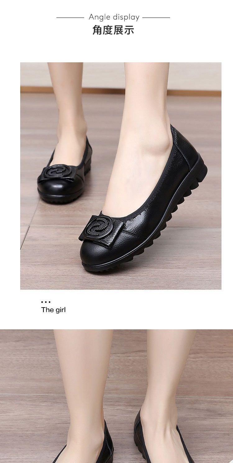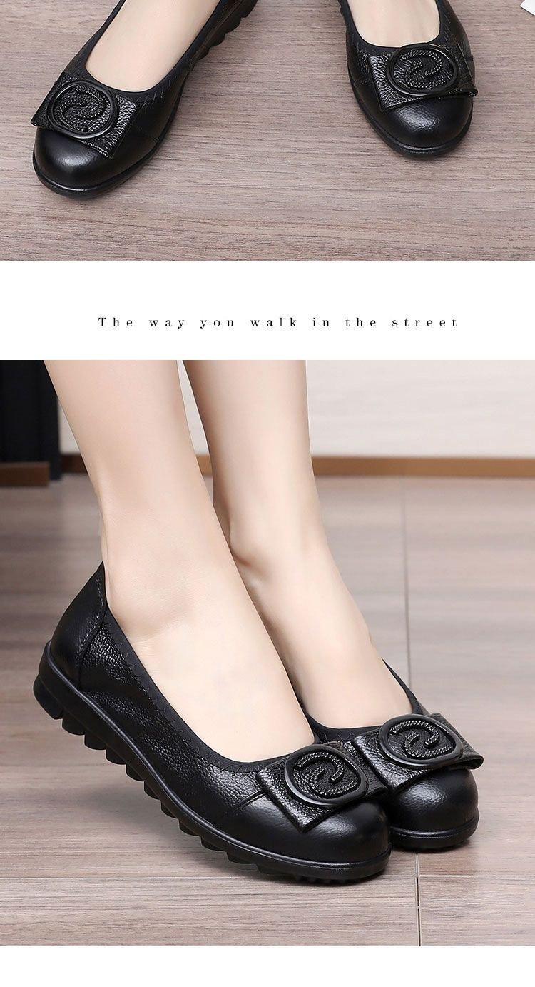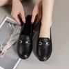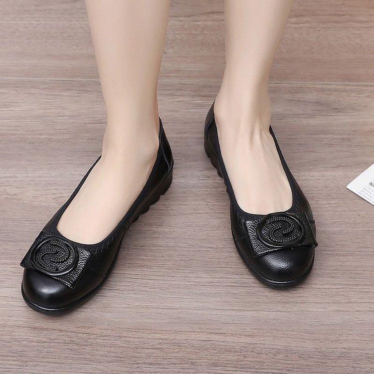 Zapatos planos de cuero para madre de punta redonda 2025 otoño nuevos de mediana edad y ancianas cómodos versátiles planos de una sola pieza para mujer
