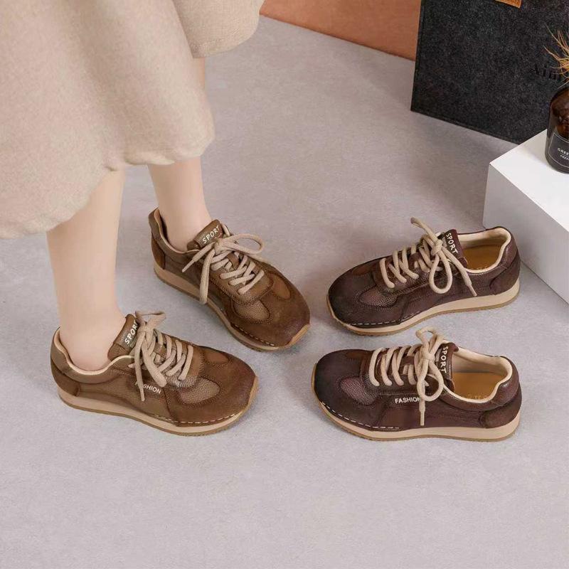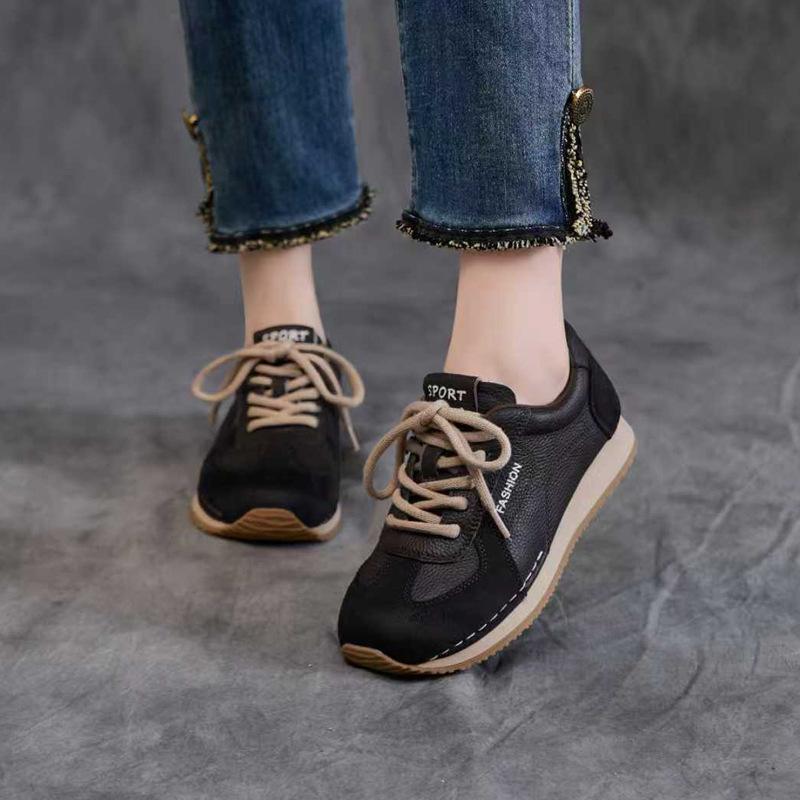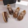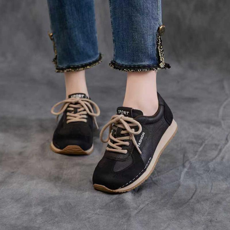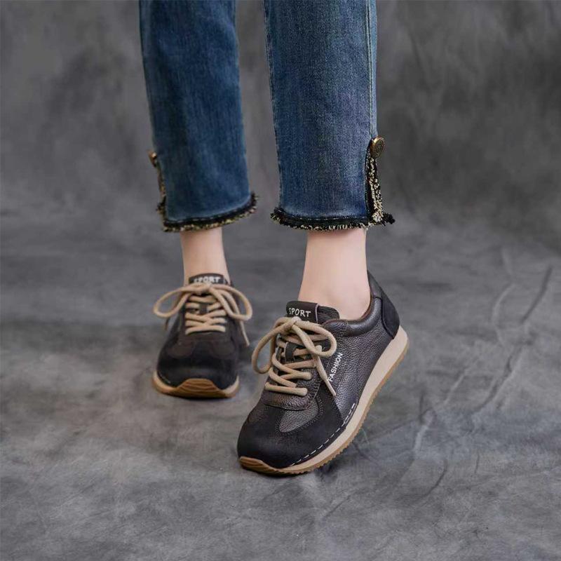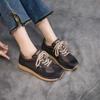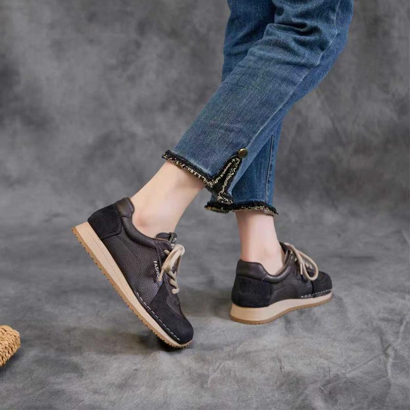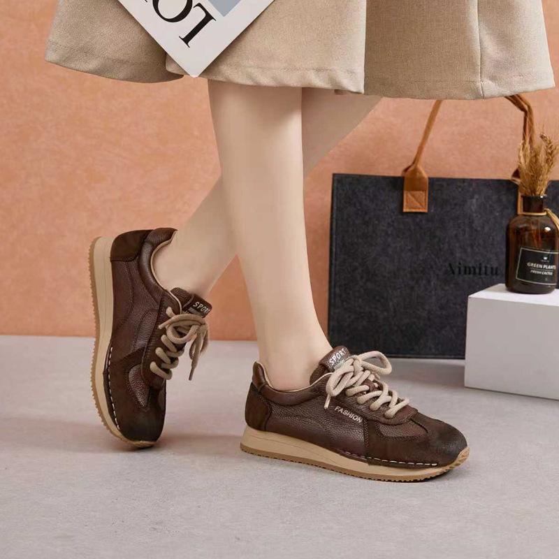 2025 Primavera Nuevo Cuero Genuino Plataforma Suela Gruesa Zapatos de Punta Redonda para Mujer Mamá Zapatos Individuales de Capa Superior de Piel de Vaca Zapatos Casuales Deportivos Retro