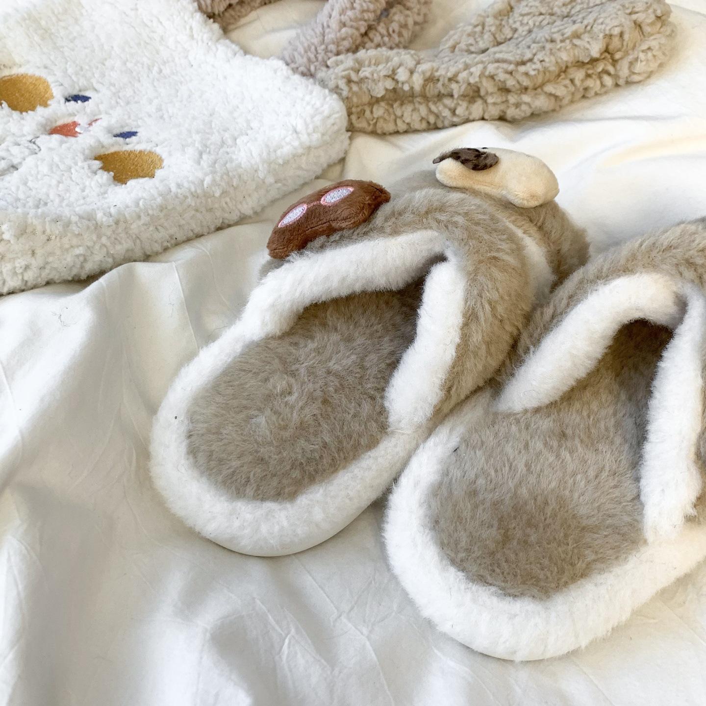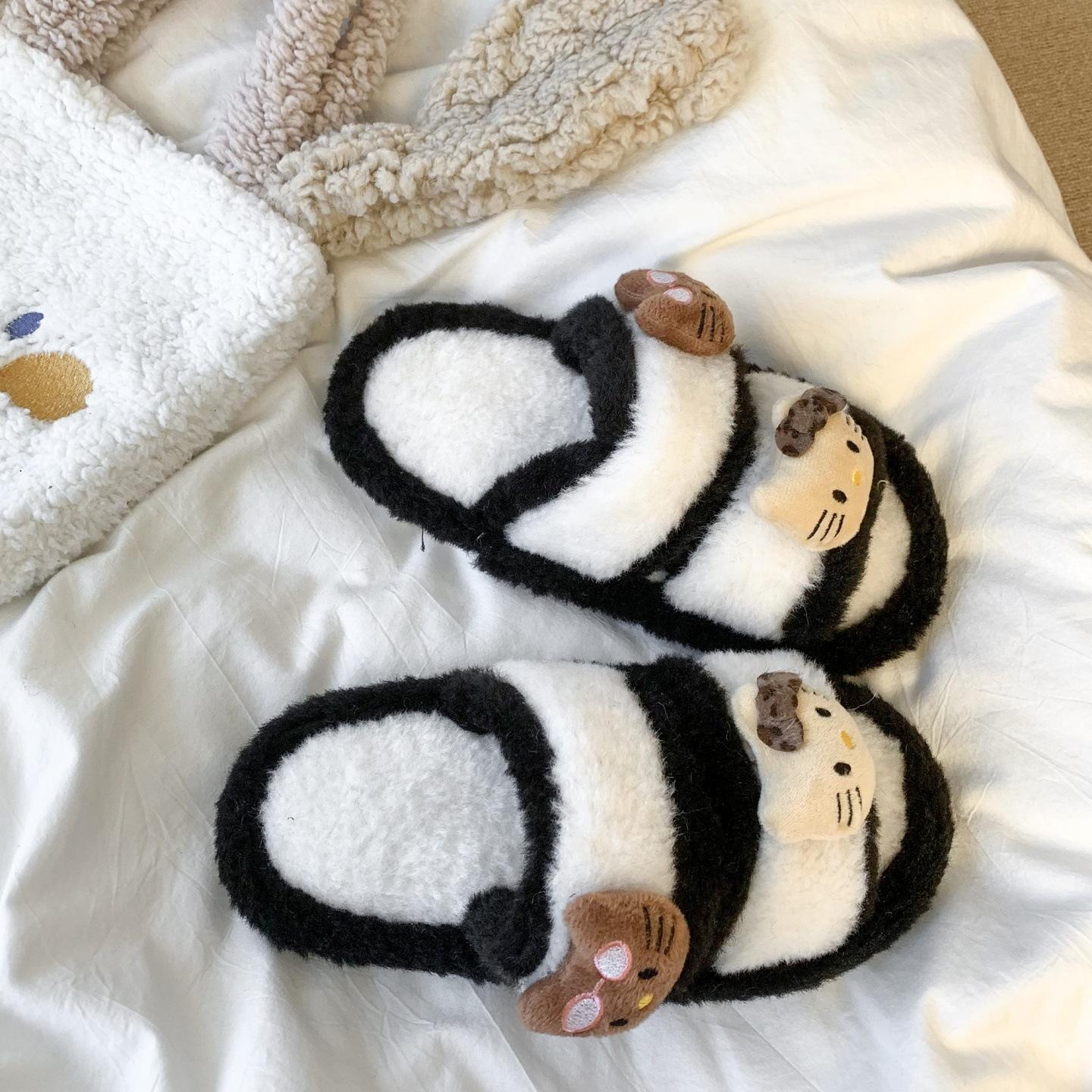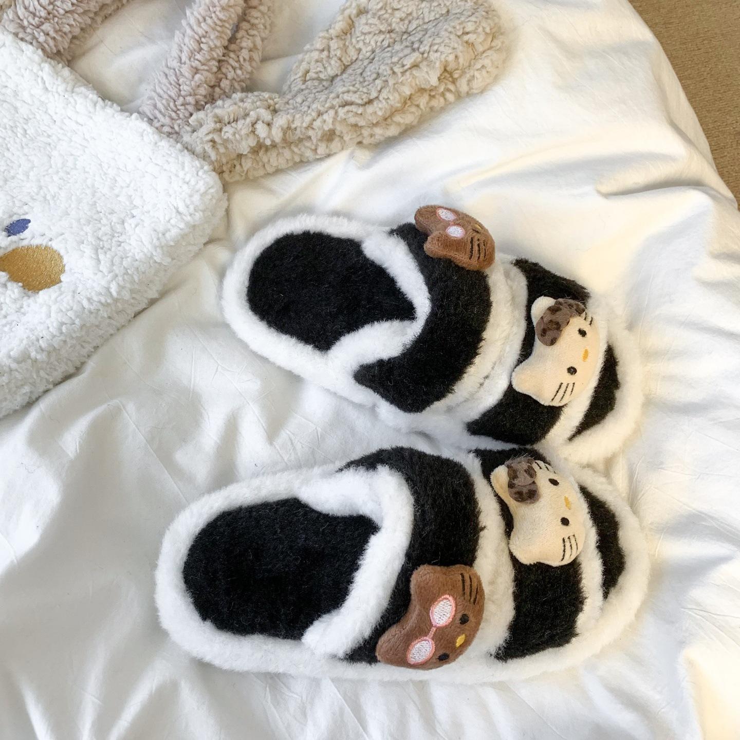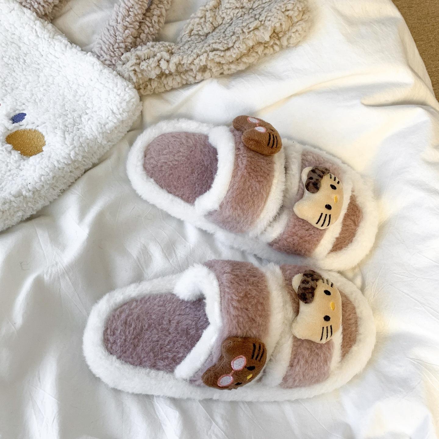 Zapatillas peludas casuales versátiles con sensación de pisar mierda para mujer 2025 otoño e invierno nuevas lindas zapatillas de algodón de felpa con gatito de dibujos animados