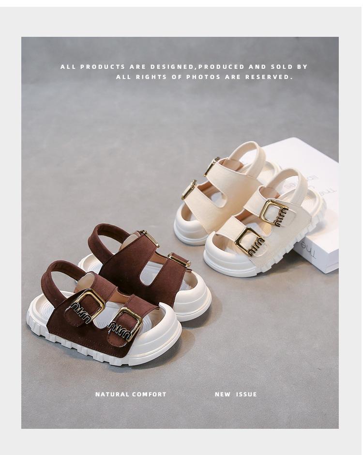 Sandalias Casuales para Niño Verano 2025 Zapatos de Playa para Niña Sandalias de Punta Abierta con Una Tira Color Sólido Antideslizantes Transpirables