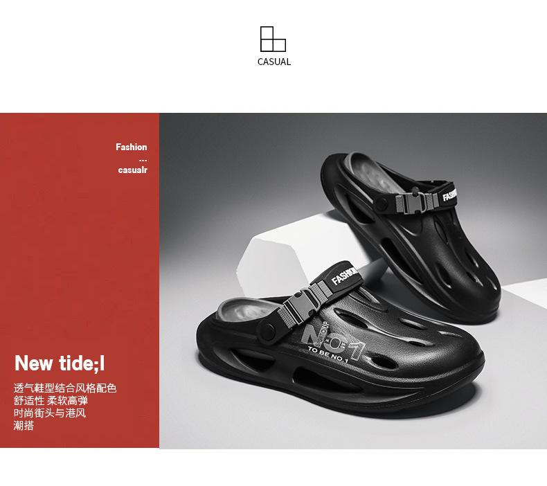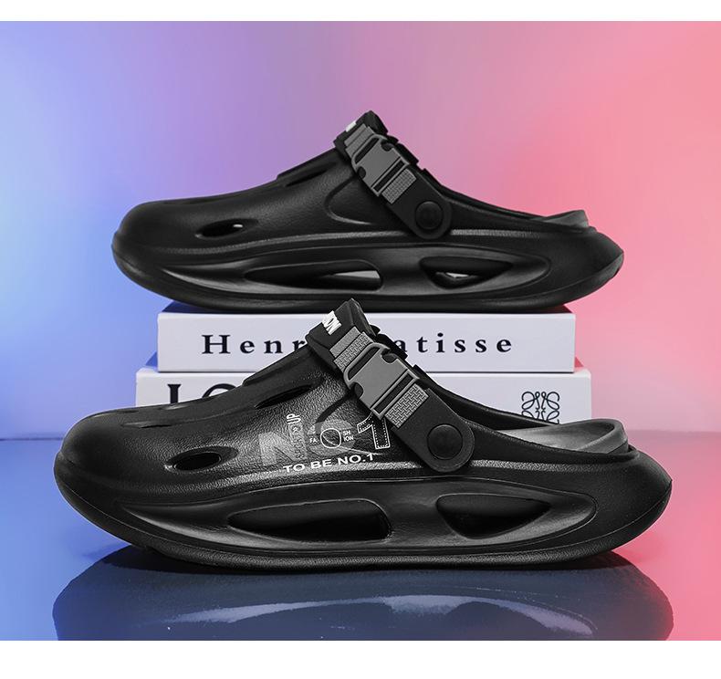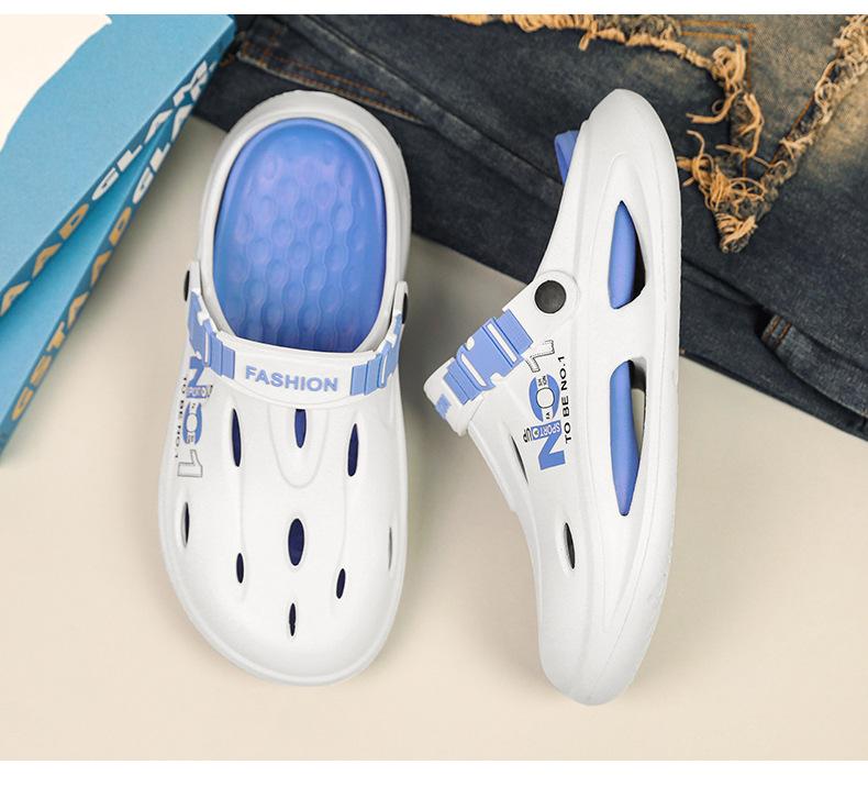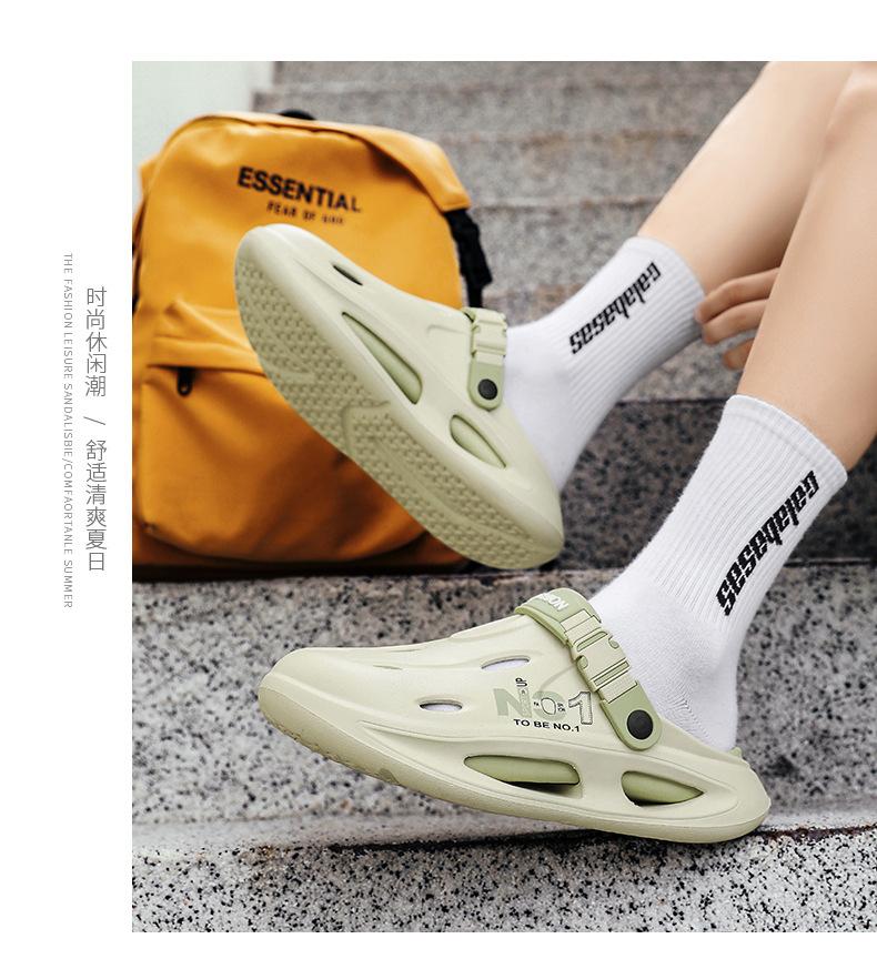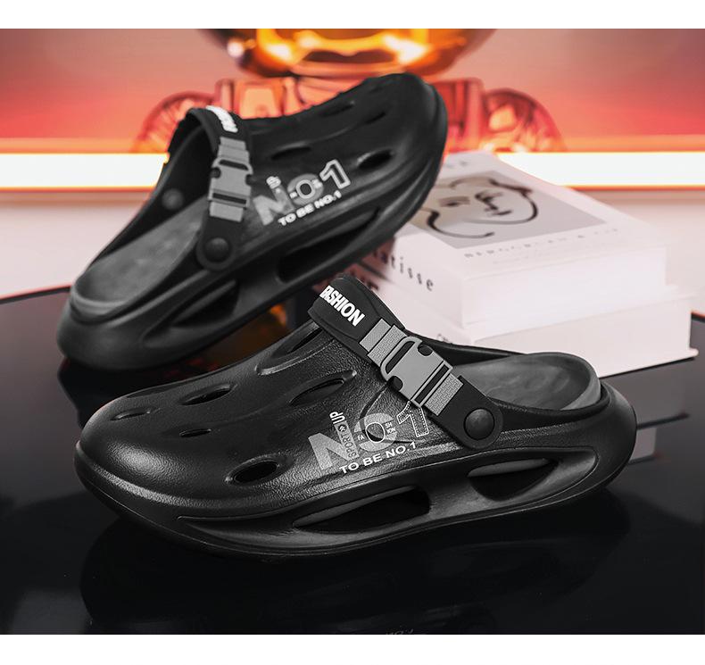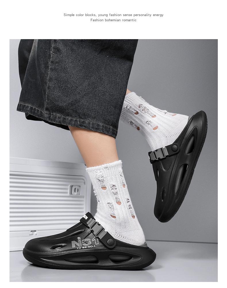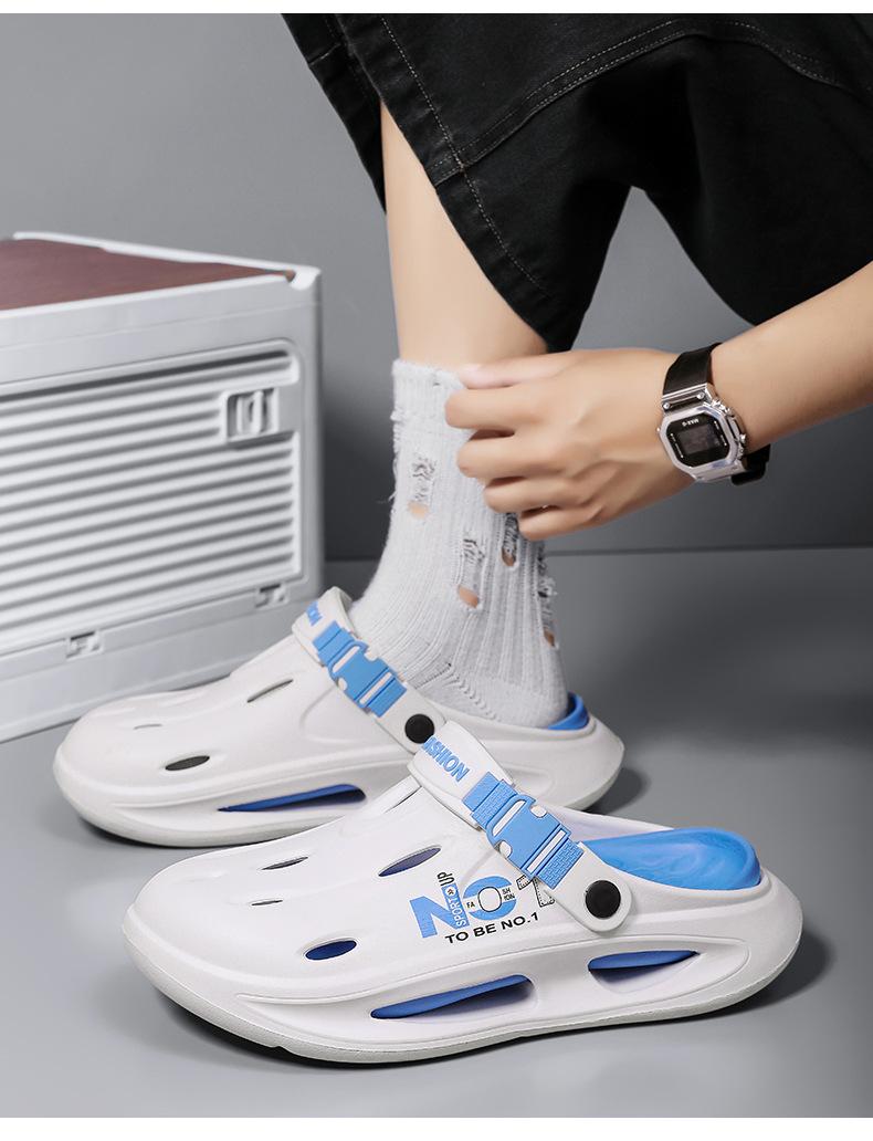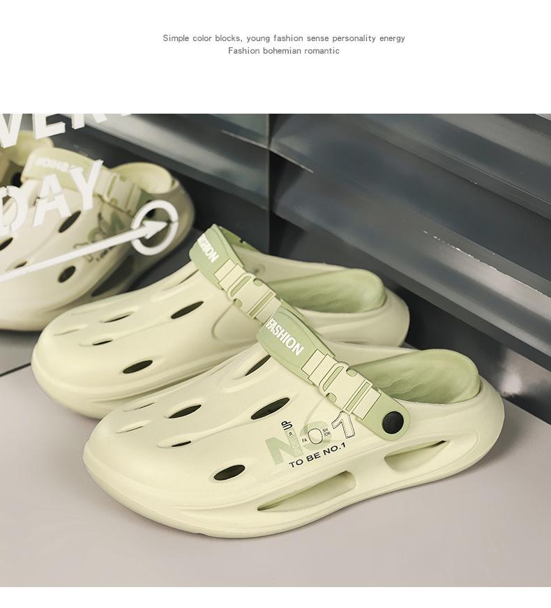 Zapatos de Agujeros para Hombre Verano Exterior Dos Usos Suela Gruesa Antideslizante Pantuflas de Punta Cerrada Deportes al Aire Libre Casual Sandalias de Playa Hombre