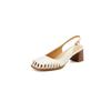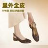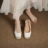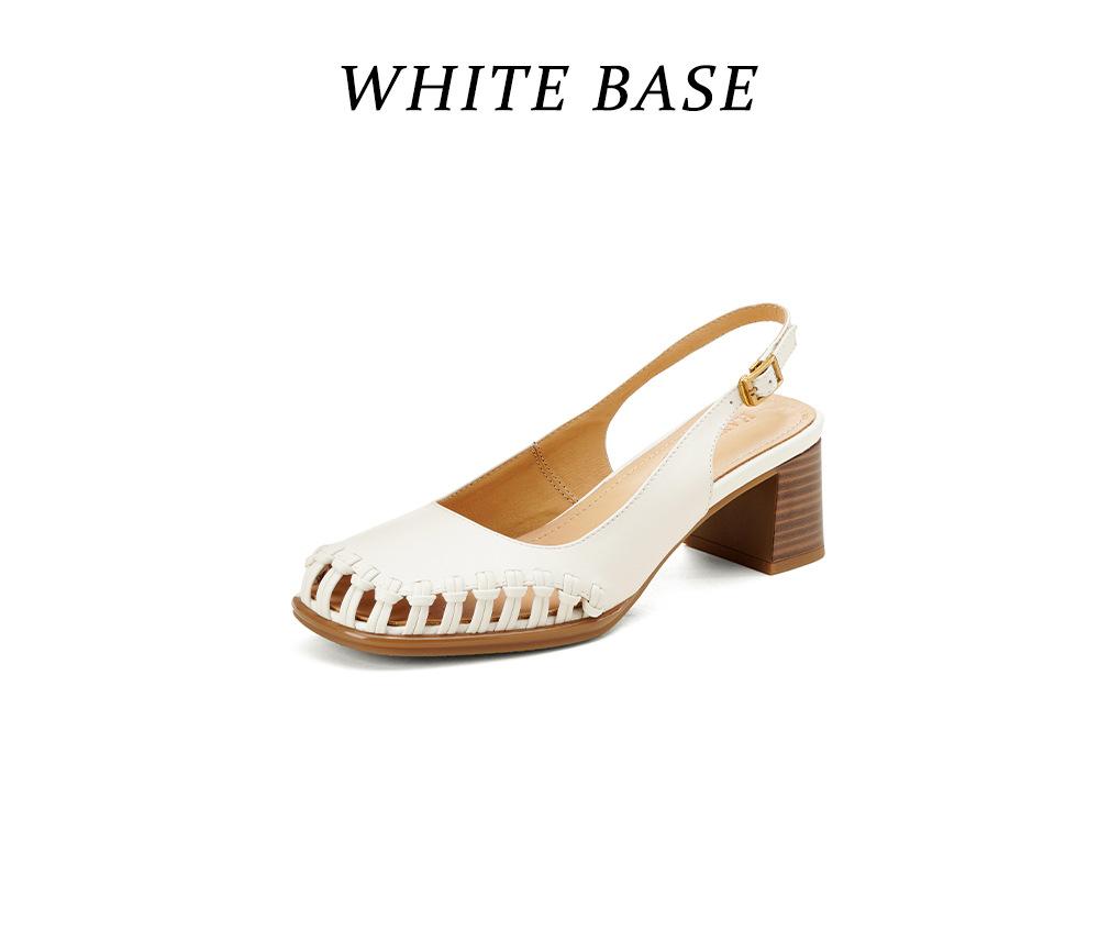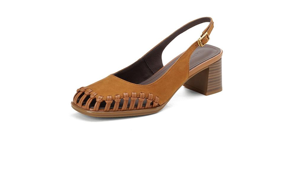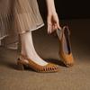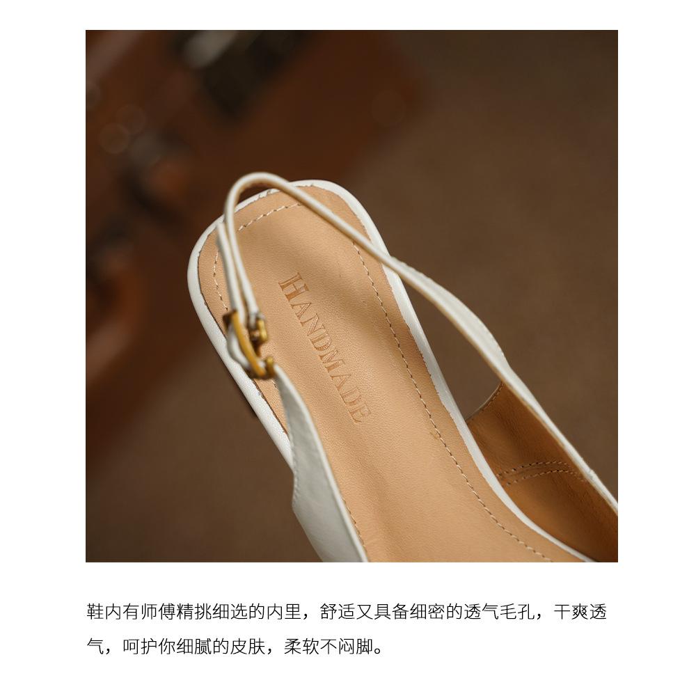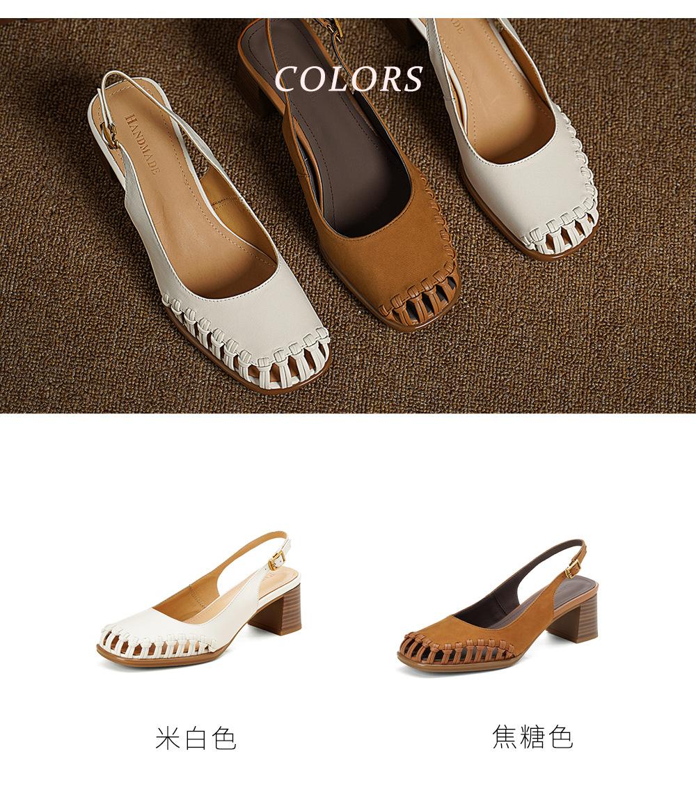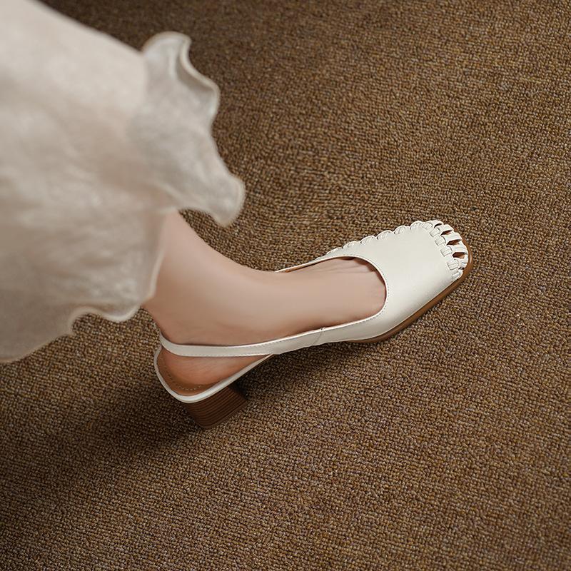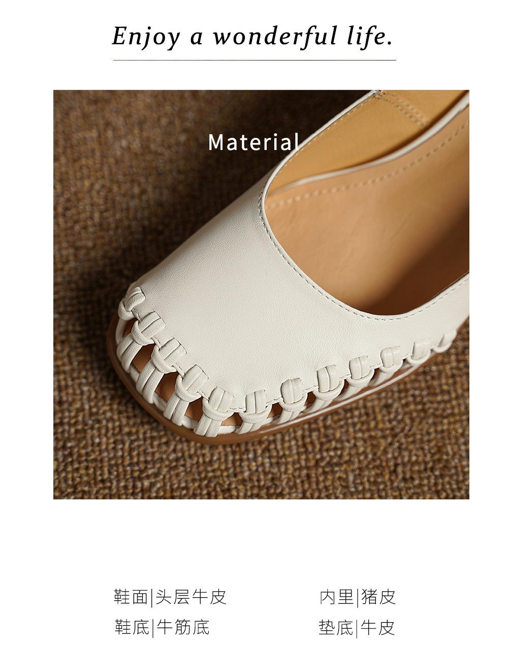 Sandalias Retro Trenzadas de Punta Francesa de Tacón Medio de 5 cm de Grosor de Piel de Vacuno de Primera Capa para Mujer 2025 Nuevas Sandalias Traseras Recortadas