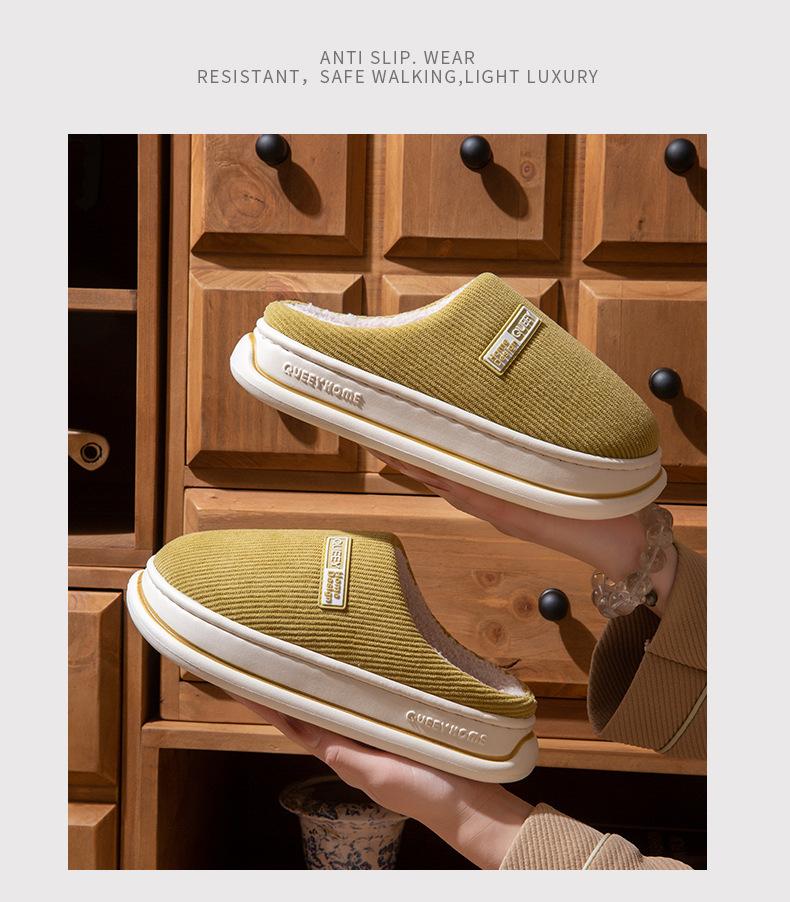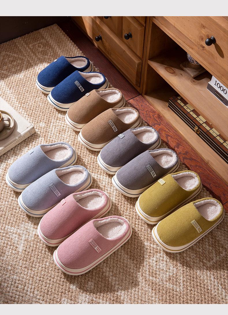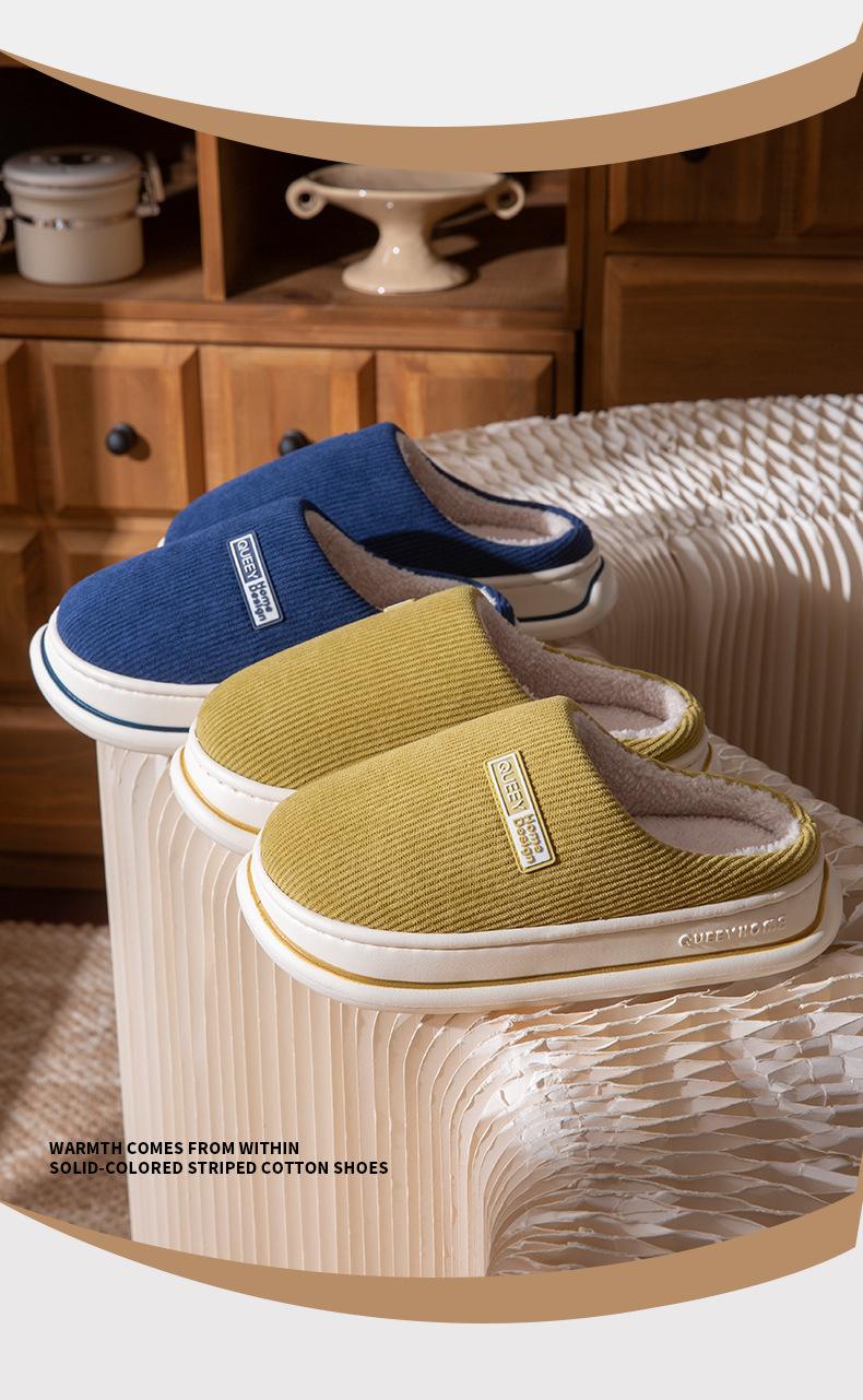 Pantuflas de Algodón 2025 Otoño e Invierno Nuevo Estilo Más Terciopelo Calidez Añadida Gruesas para Casa Interior Antideslizantes Felpa Pareja Pantuflas de Algodón para Hombre