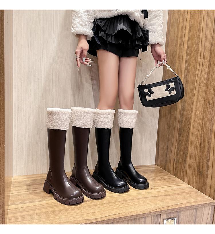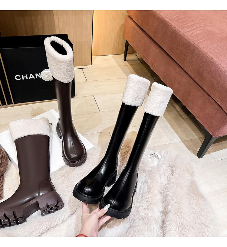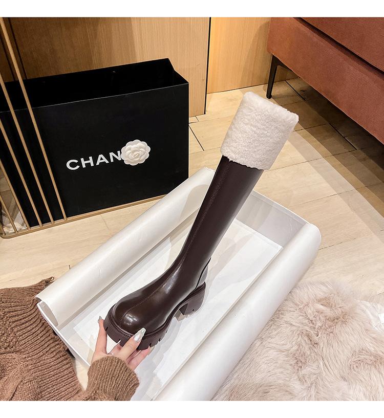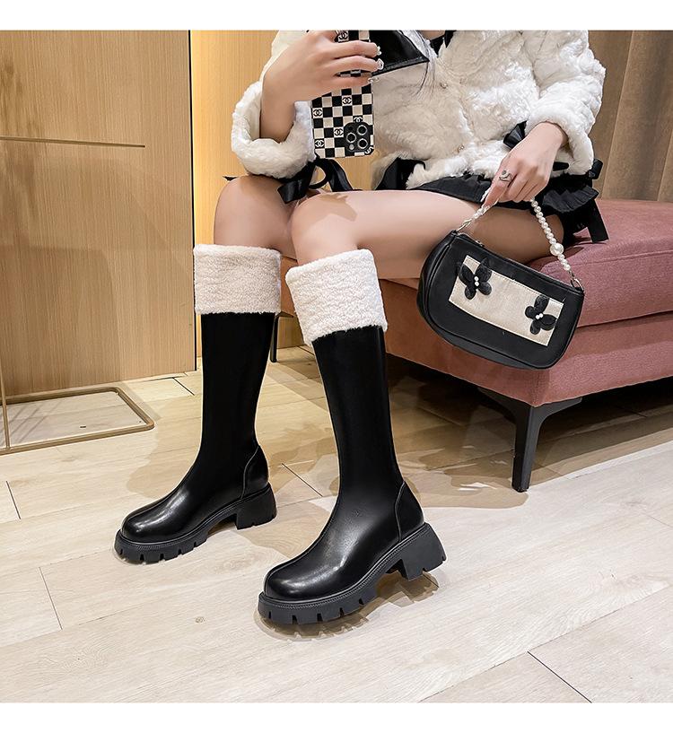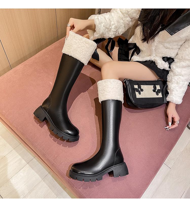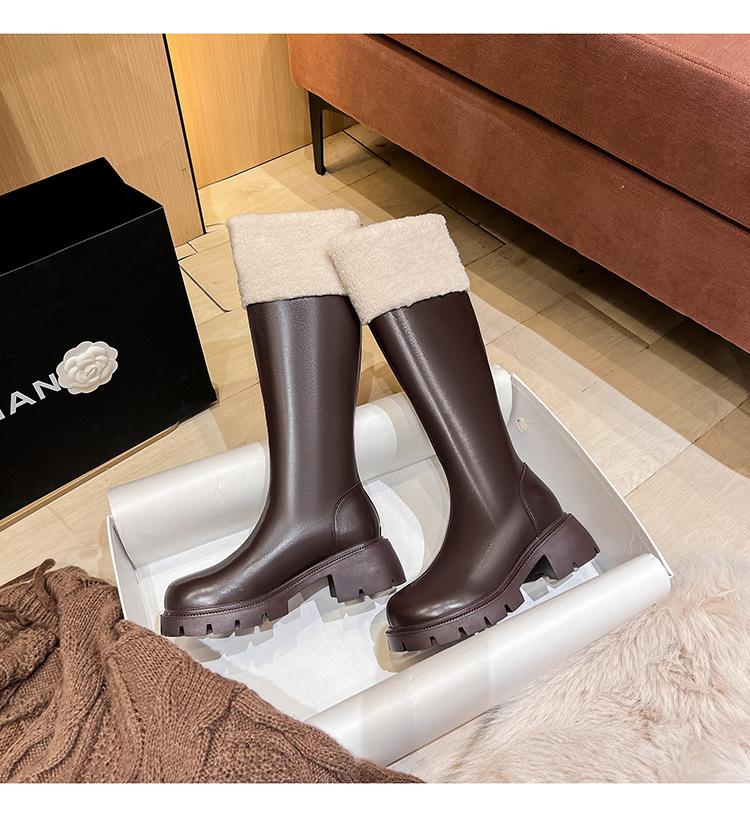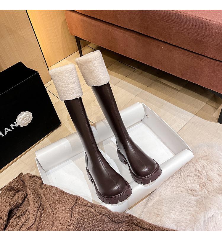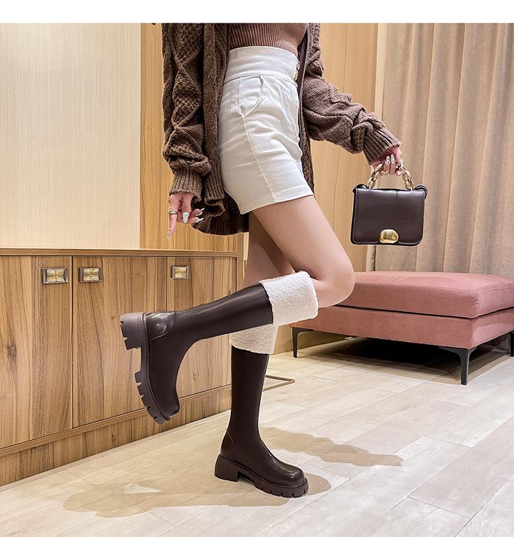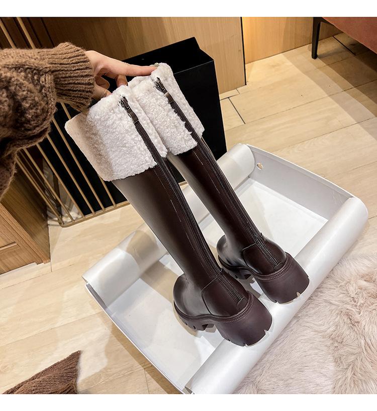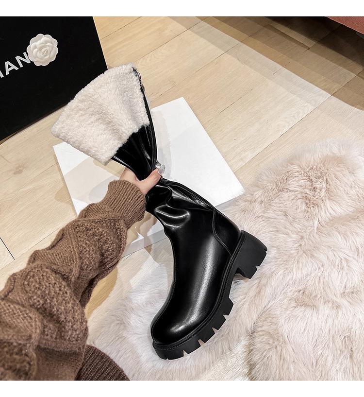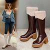 Chica Gordita talla grande talla grande 42 botas para mujer 2023 nuevo forro polar lana de cordero suela gruesa tacón alto grueso botas de Caballero