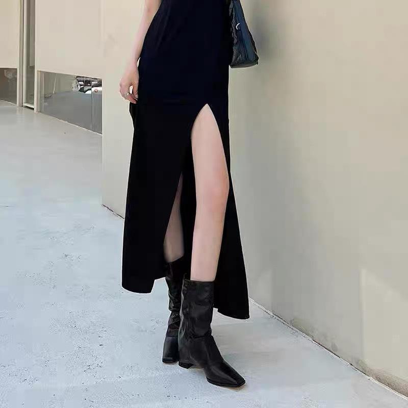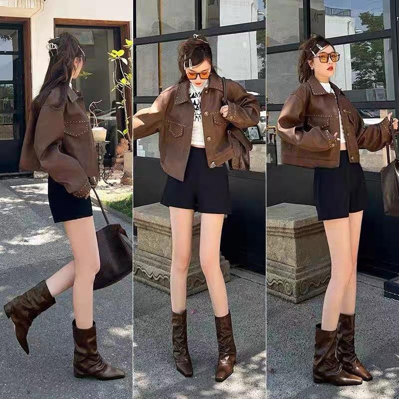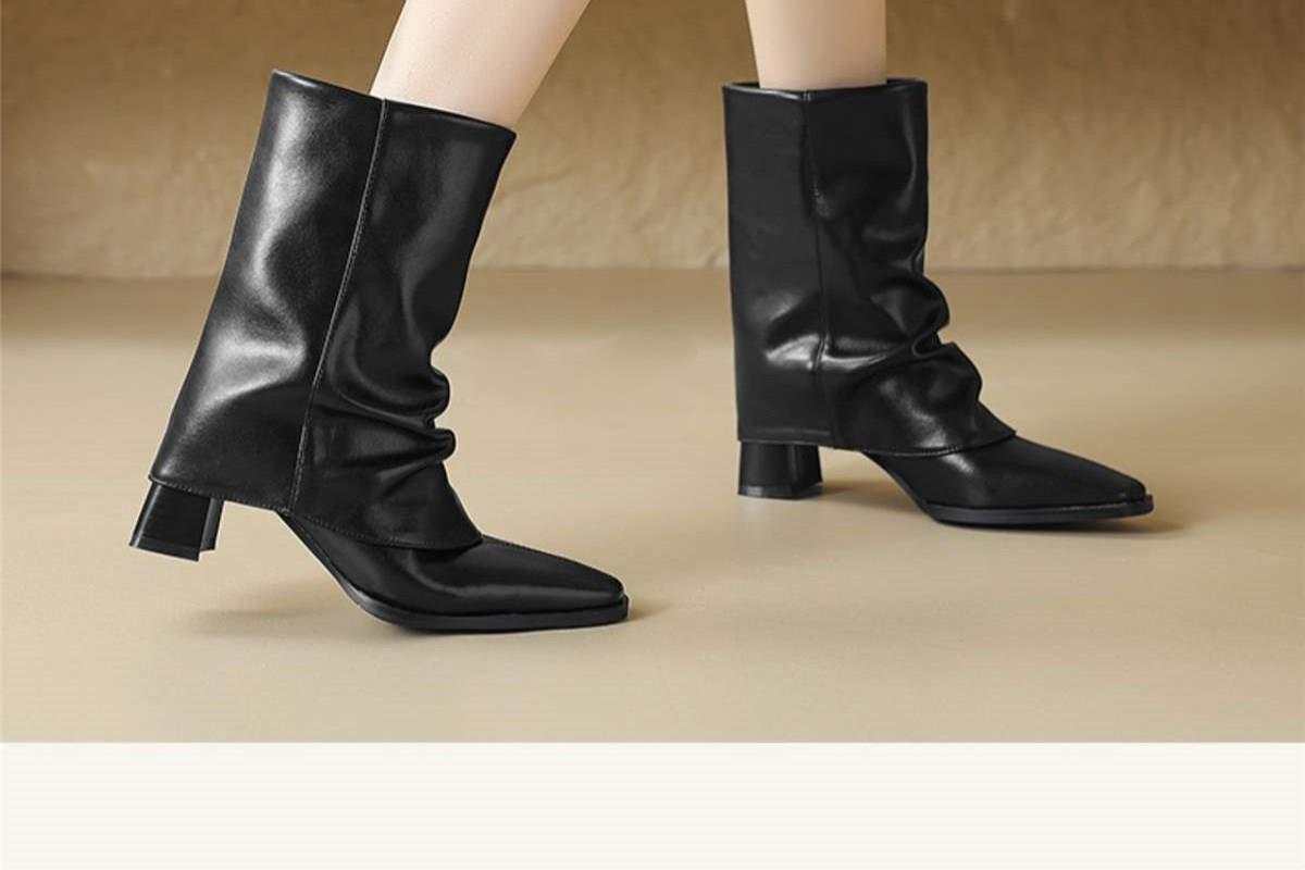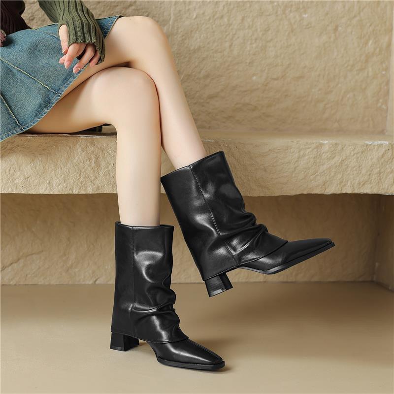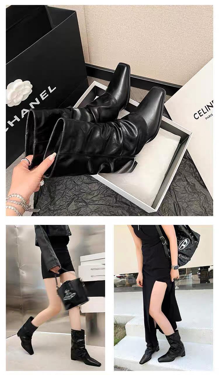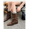 2025 nuevas botas de media caña de punta fina y tacón grueso para mujer otoño e invierno retro más terciopelo bota alta de caballero botas de moda
