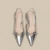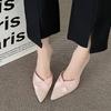 Tacones Altos de Aguja Negros de Moda con Pedrería de Punta para Mujer Zapatos Individuales de Hermana Madura de Punta Cerrada Sandalias Descubiertas Primavera y Otoño 2025 Nuevo