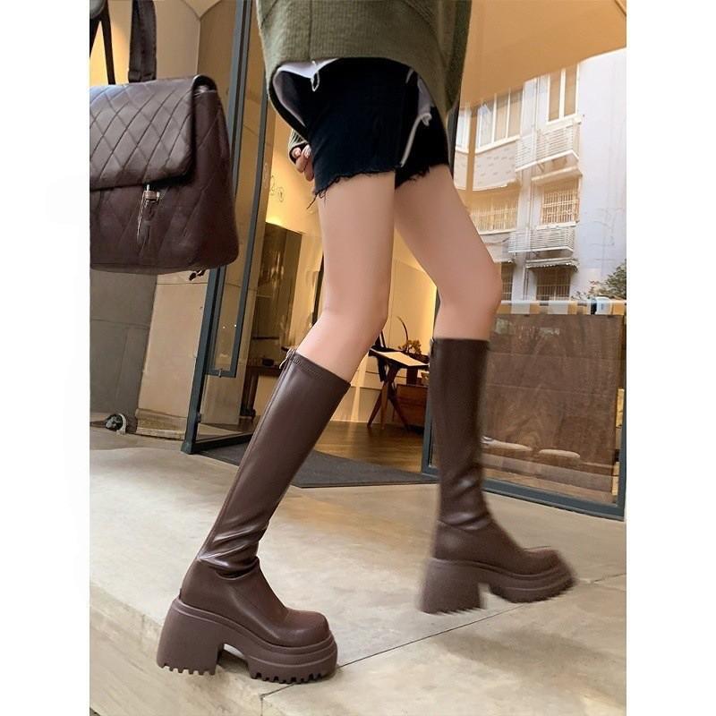 Botas Elasticas Skinny 2025 Nuevas de Suela Gruesa Aumentadoras de Altura Petite Sobre la Rodilla Botas de Caballero para Mujer