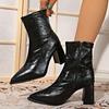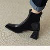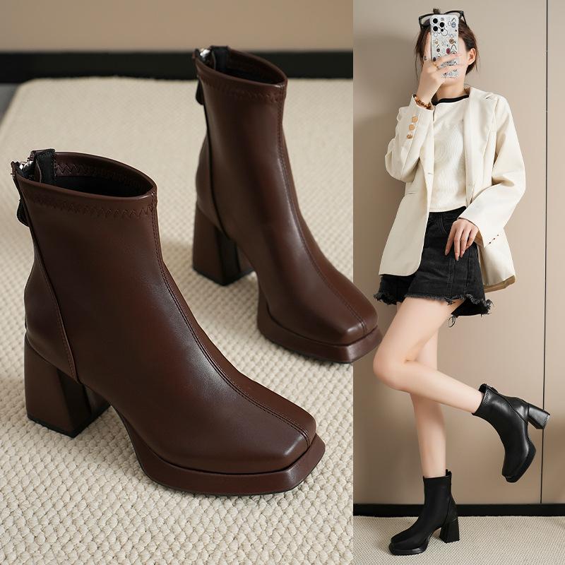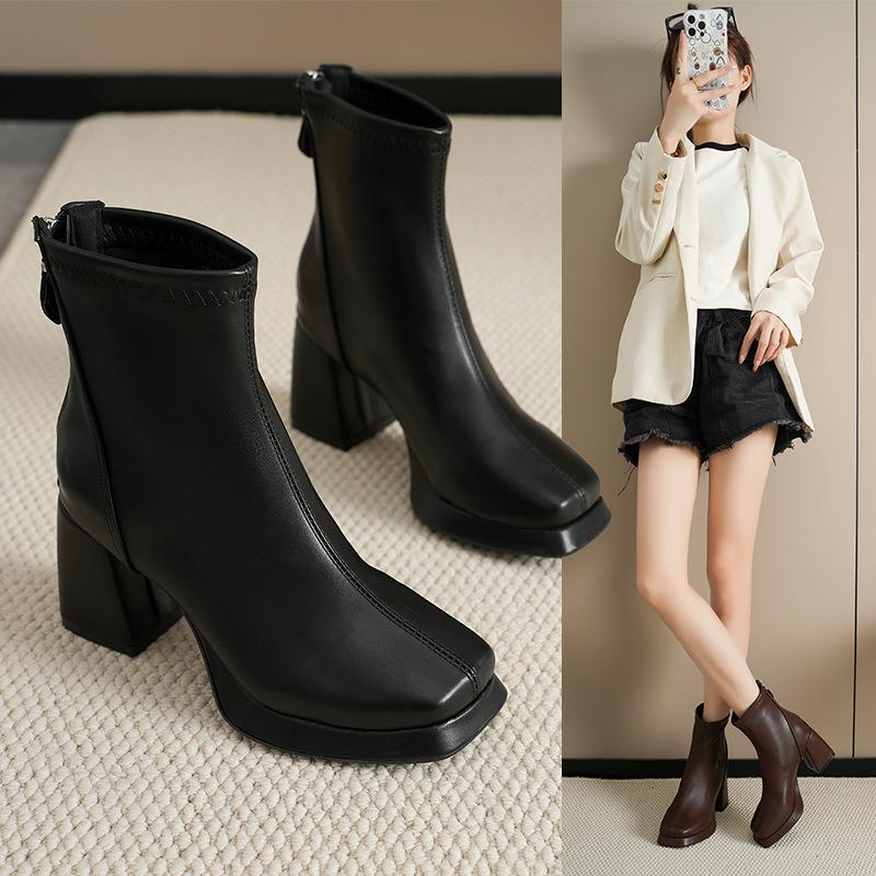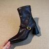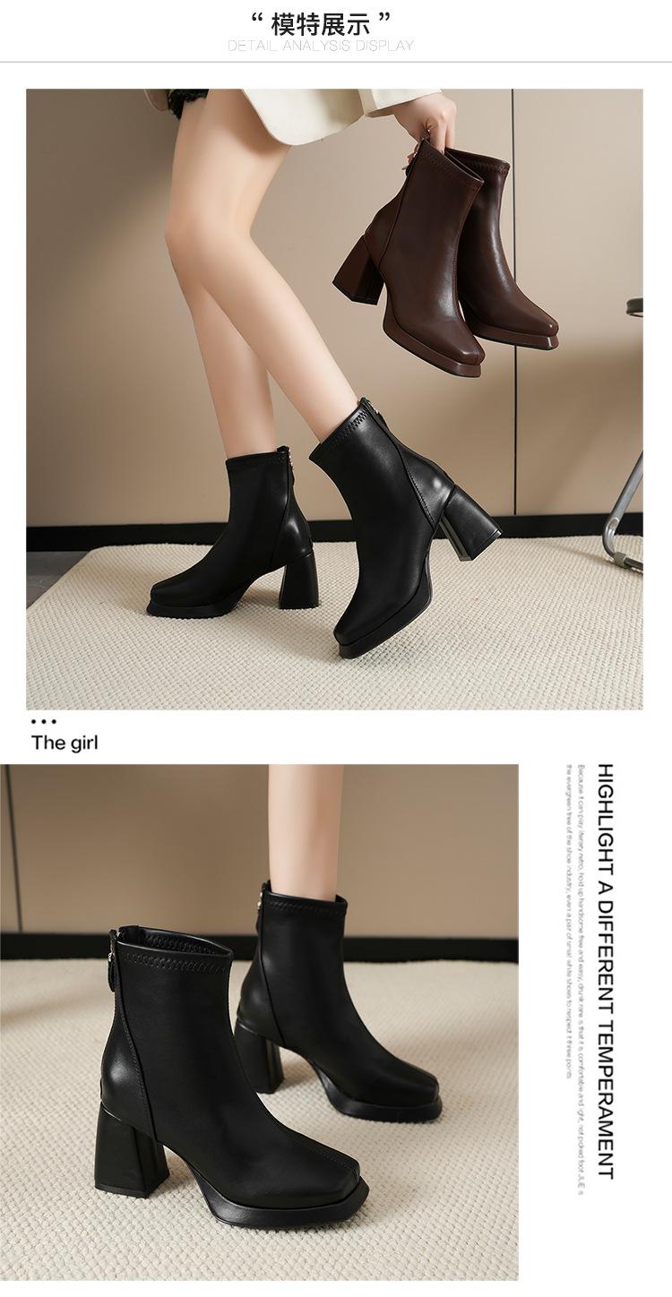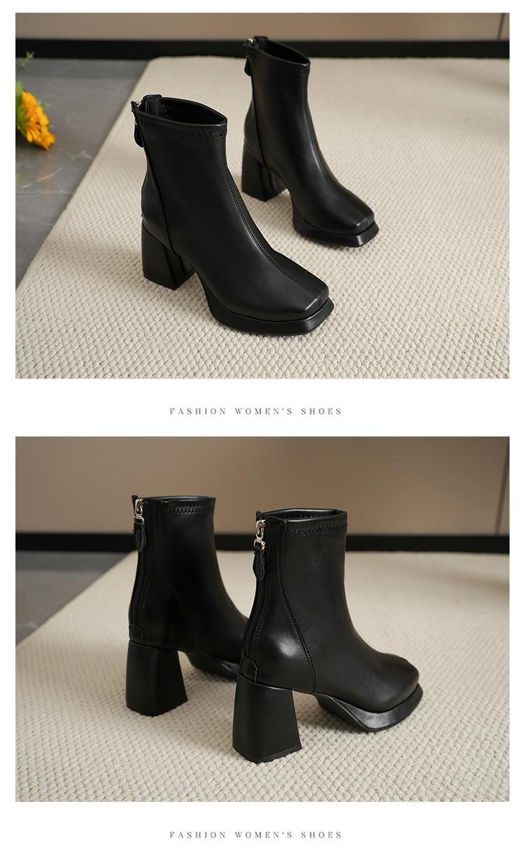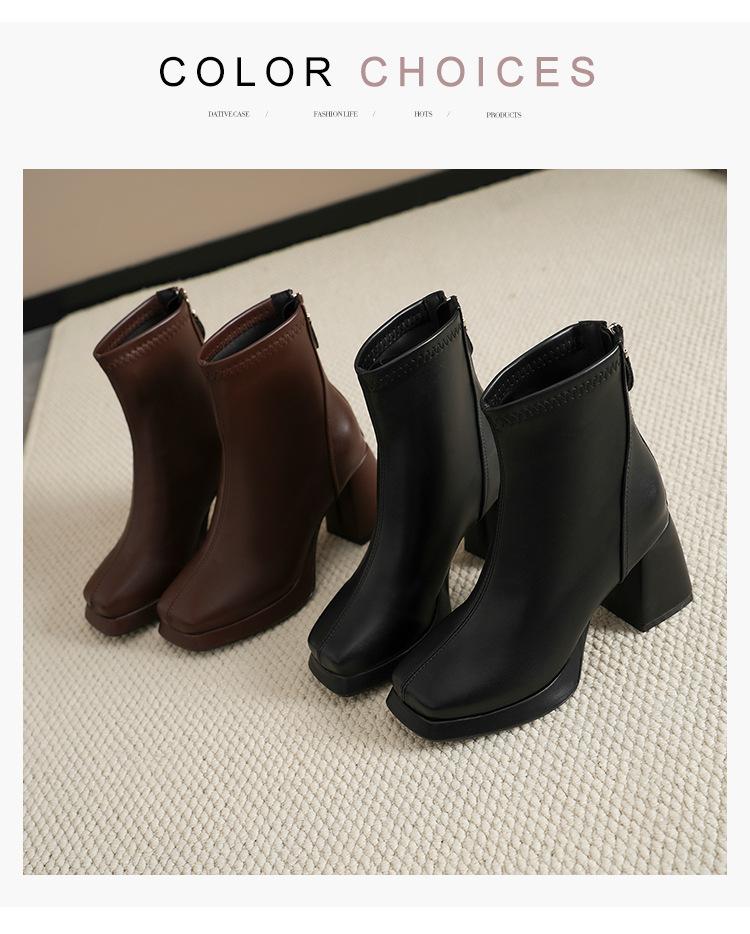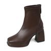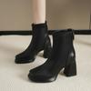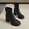 Otoño/Invierno 2025 Nuevos Botines Elegantes de Tacón Alto Retro Francés para Mujer Moda Tacón Grueso Cierre Trasero Punta Cuadrada Botas de Moda para Mujer