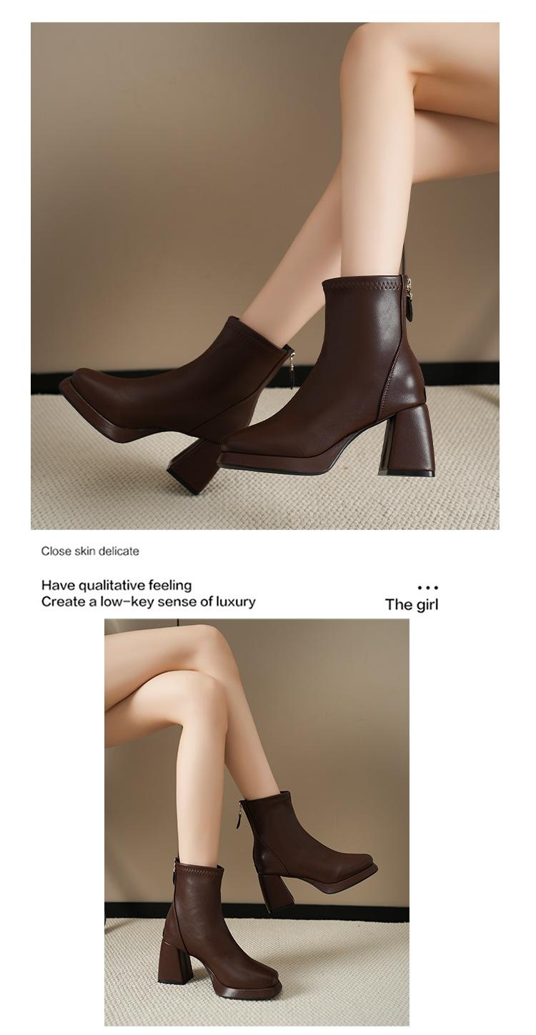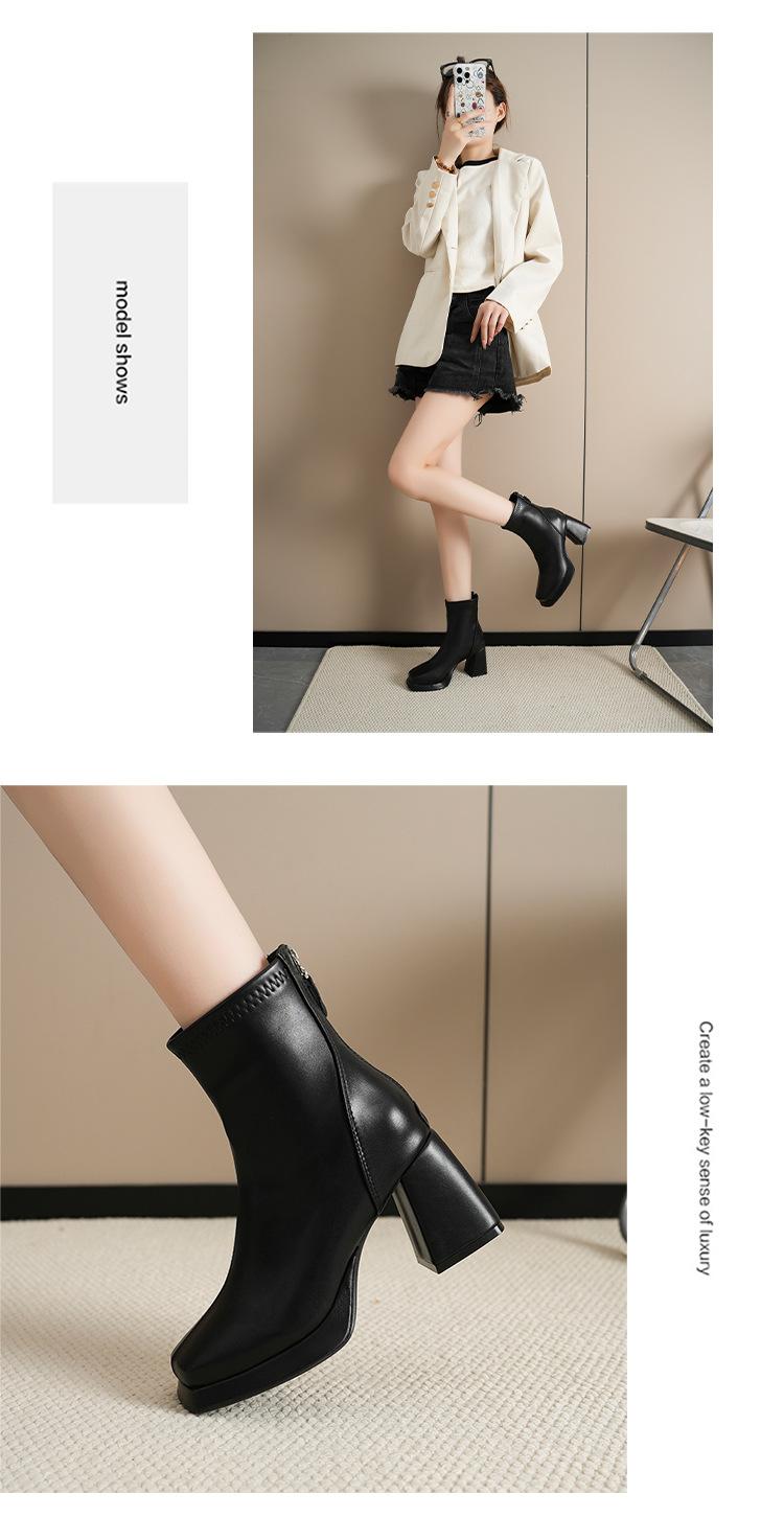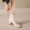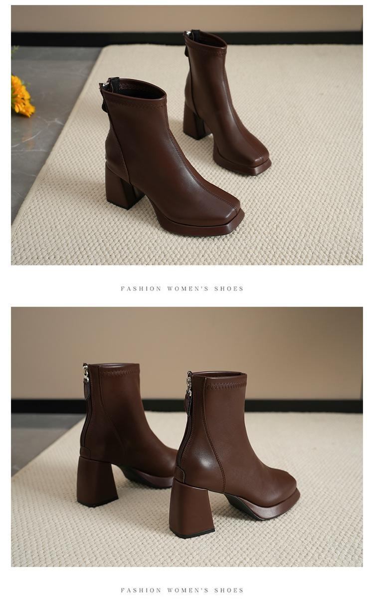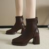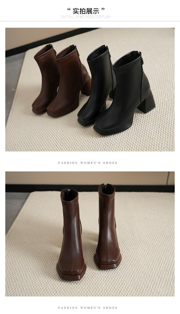 Otoño/Invierno 2025 Nuevos Botines Elegantes de Tacón Alto Retro Francés para Mujer Moda Tacón Grueso Cierre Trasero Punta Cuadrada Botas de Moda para Mujer