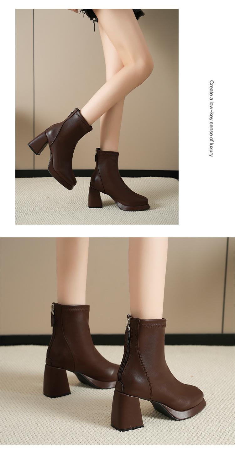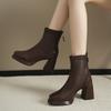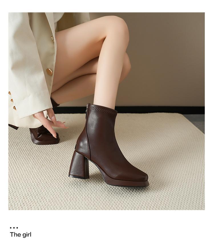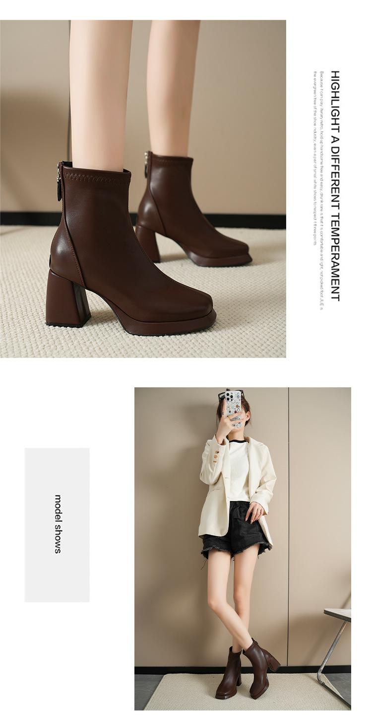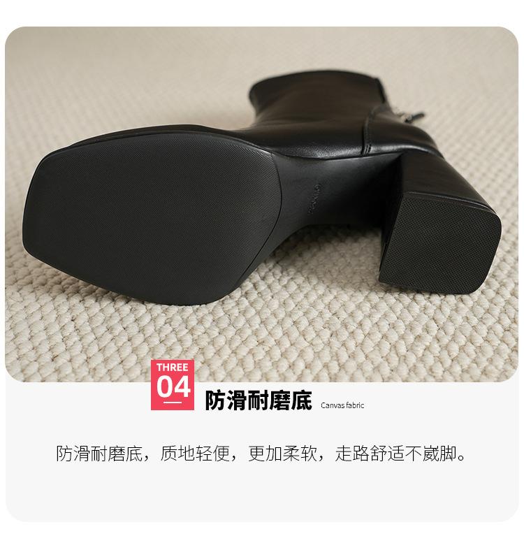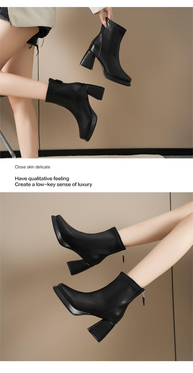 Otoño/Invierno 2025 Nuevos Botines Elegantes de Tacón Alto Retro Francés para Mujer Moda Tacón Grueso Cierre Trasero Punta Cuadrada Botas de Moda para Mujer