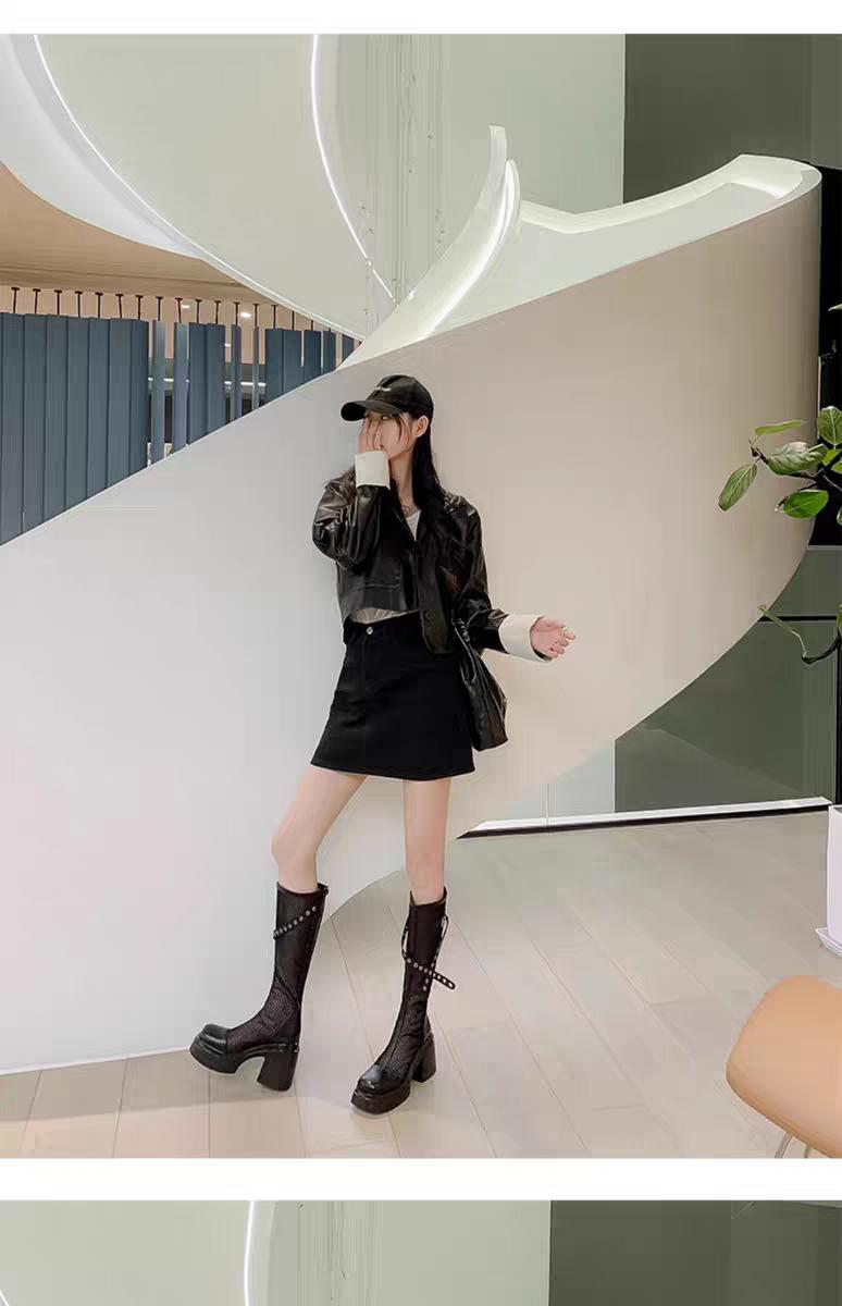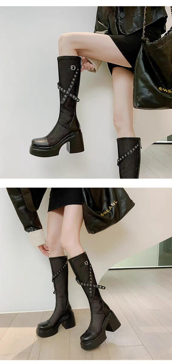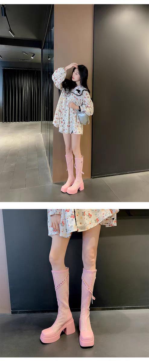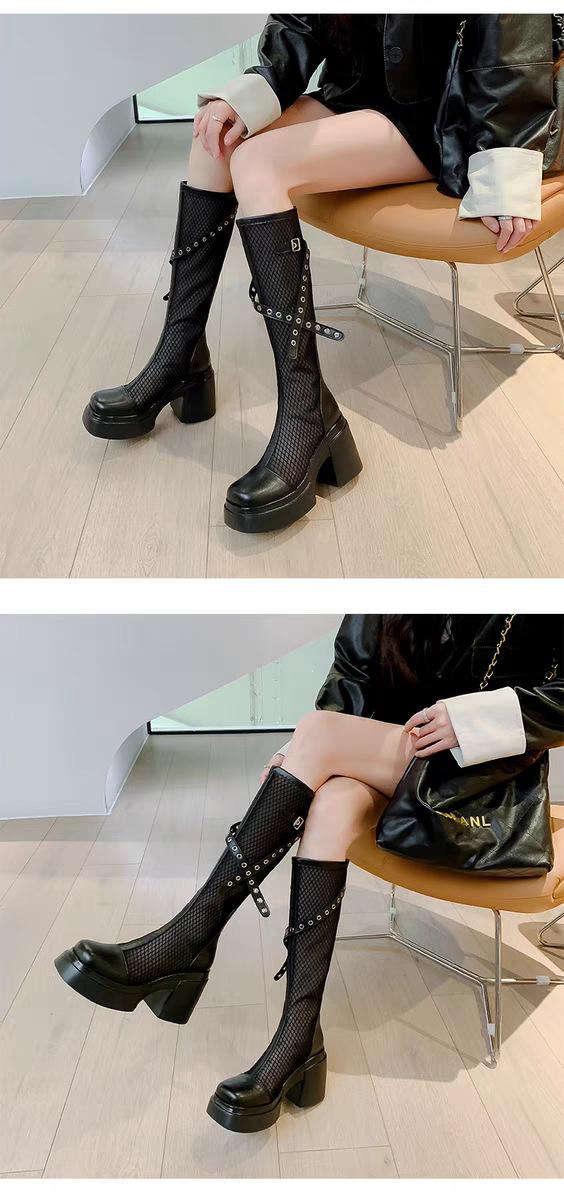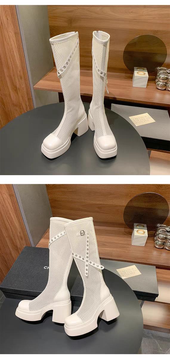 Botas Blancas de Verano Botas de Malla Alta Fina para Mujer Suela Gruesa 2025 Nuevas Botas de Verano Sandalias Recortadas Transpirables