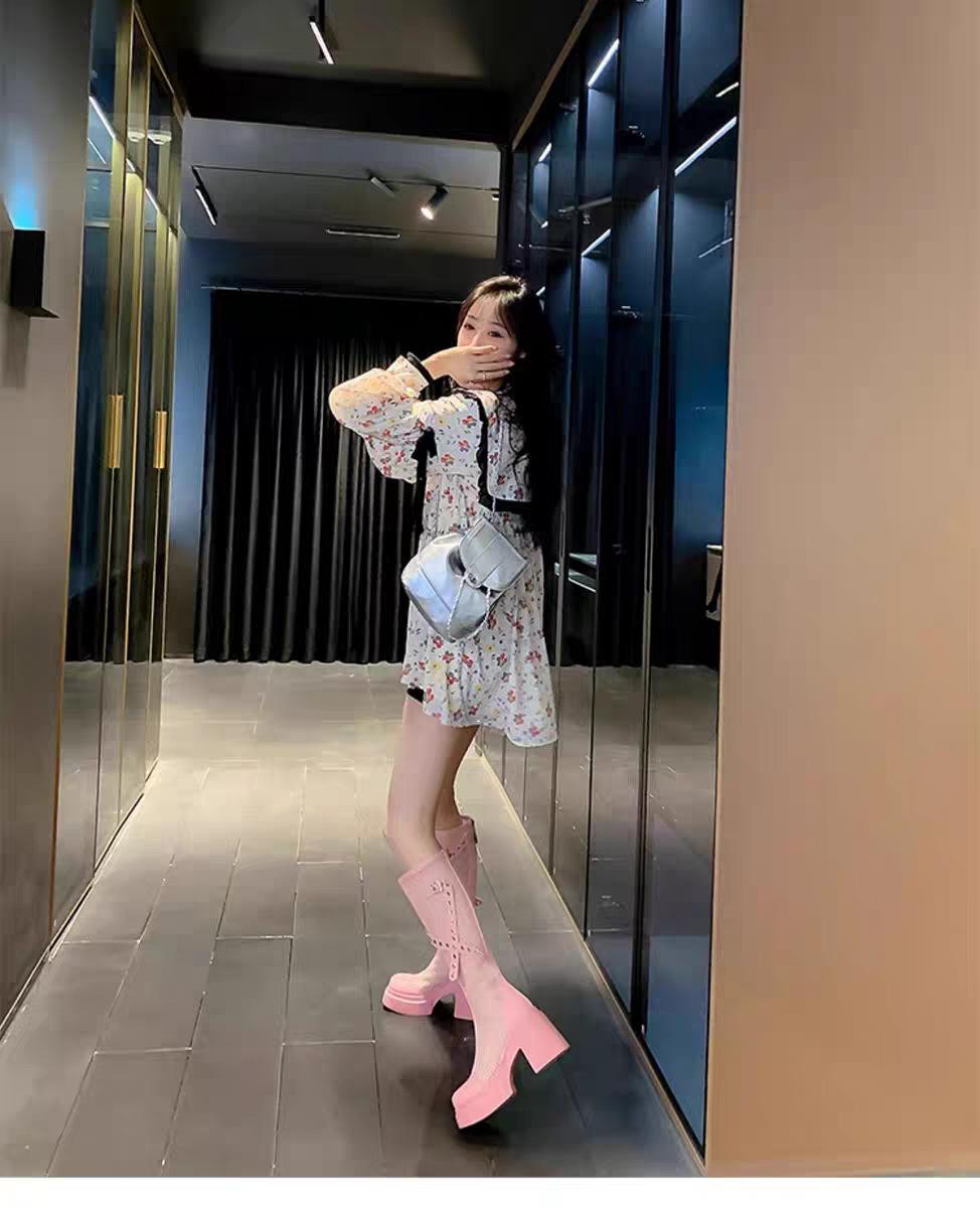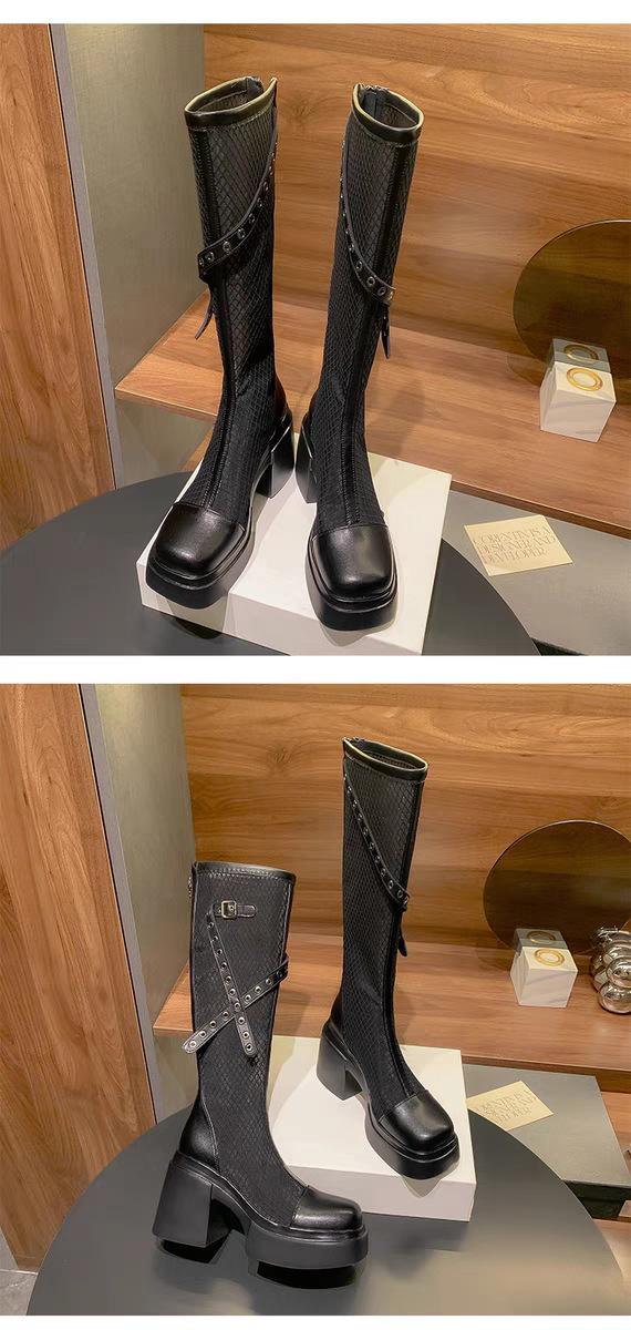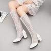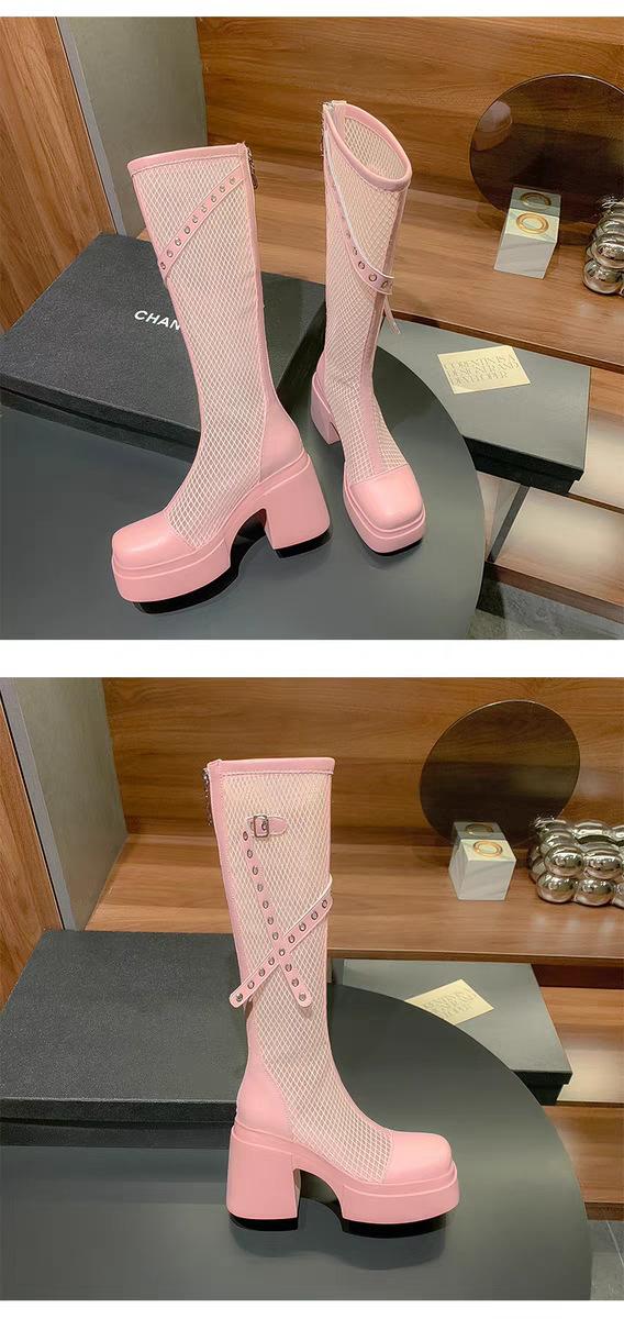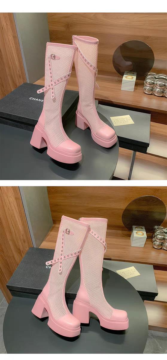 Botas Blancas de Verano Botas de Malla Alta Fina para Mujer Suela Gruesa 2025 Nuevas Botas de Verano Sandalias Recortadas Transpirables