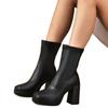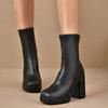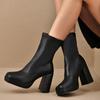 Botines de Tacón Alto Ajustados al Tobillo Botas de Mujer 2025 Otoño/Invierno Nuevo Estilo Slip-on Punta Cuadrada Tacón Grueso Simple Para Ir al Trabajo Botines Cortos para Mujer