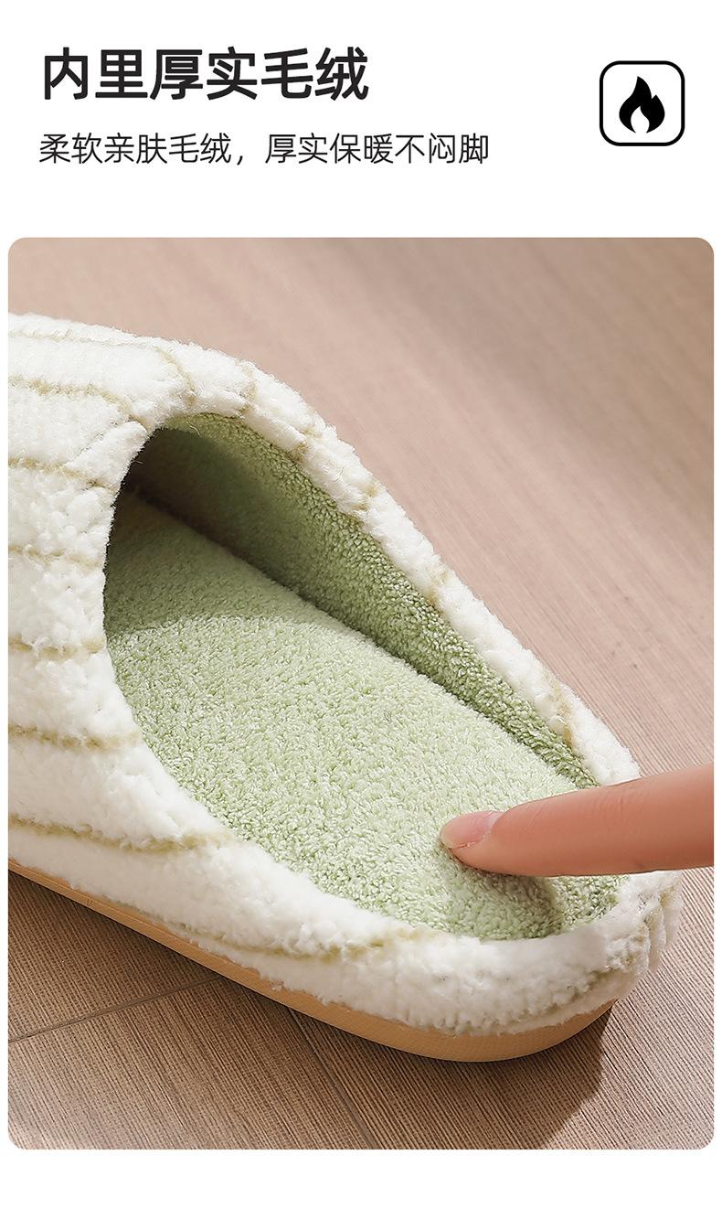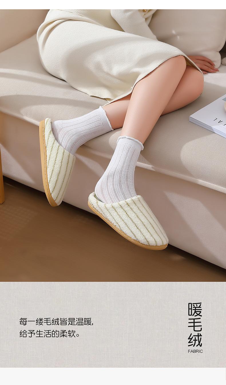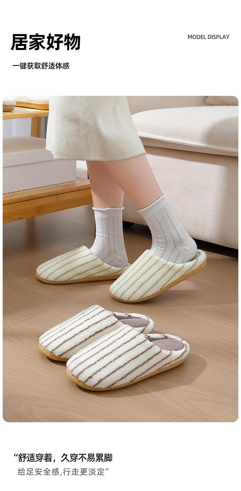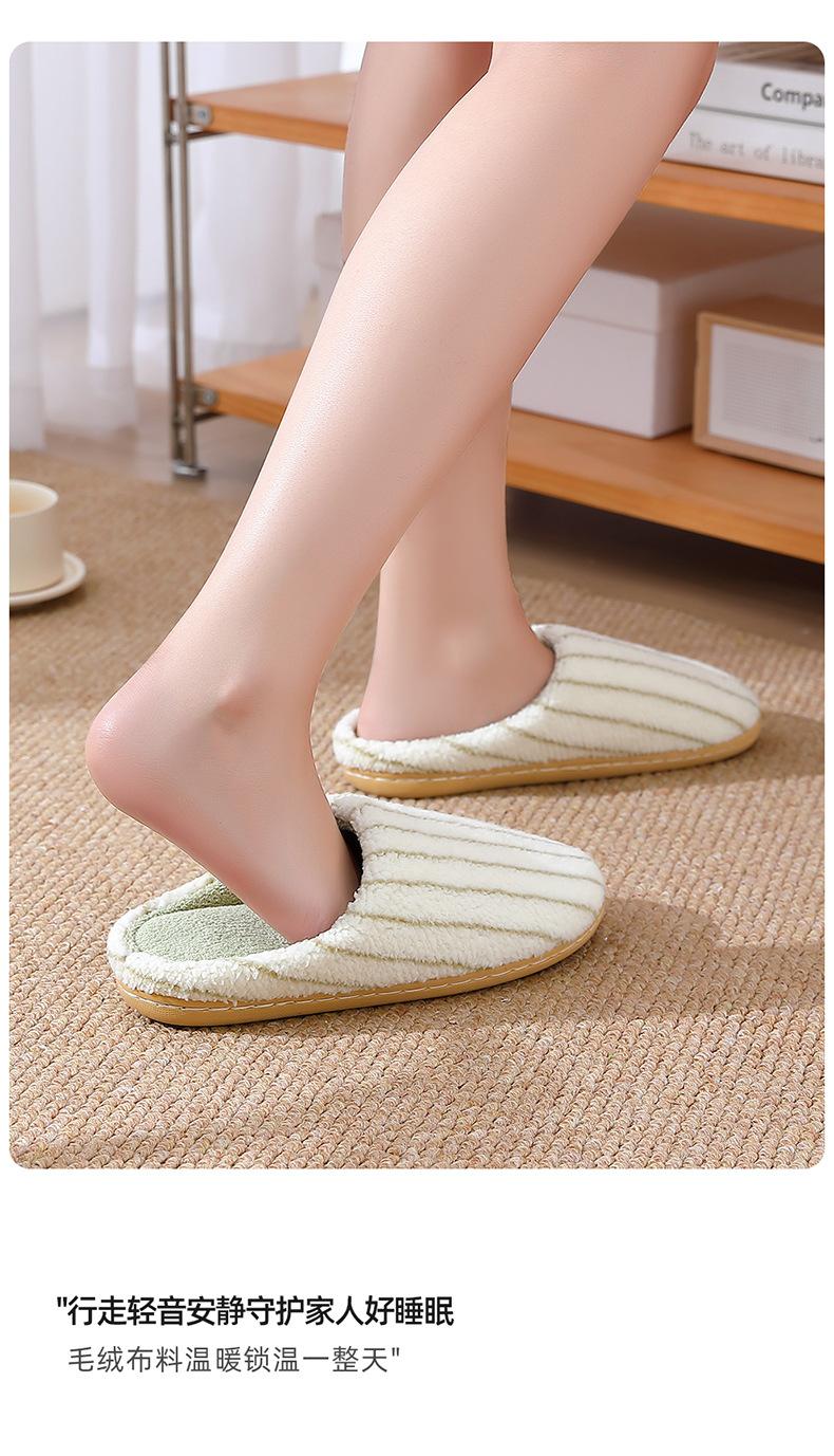 Pantuflas cálidas de felpa a rayas estilo japonés para pareja, para mujer, otoño e invierno, nuevas para interior, de suela blanda, antideslizantes, para el hogar, de algodón