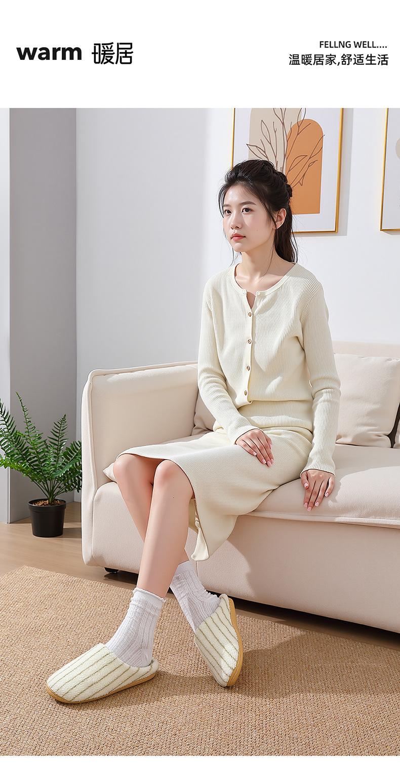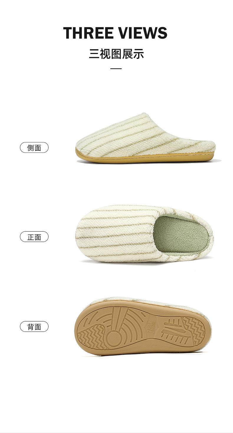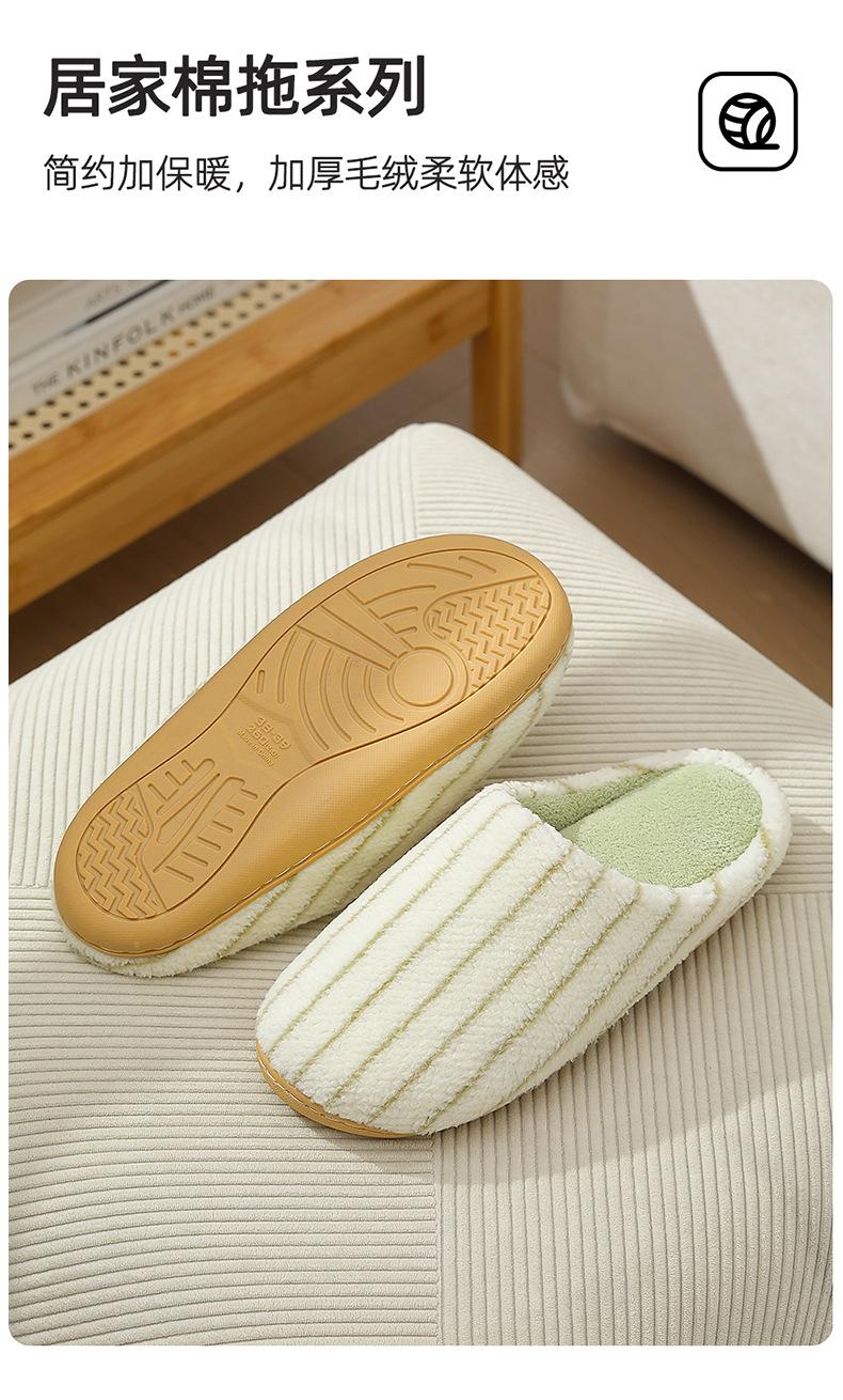 Pantuflas cálidas de felpa a rayas estilo japonés para pareja, para mujer, otoño e invierno, nuevas para interior, de suela blanda, antideslizantes, para el hogar, de algodón